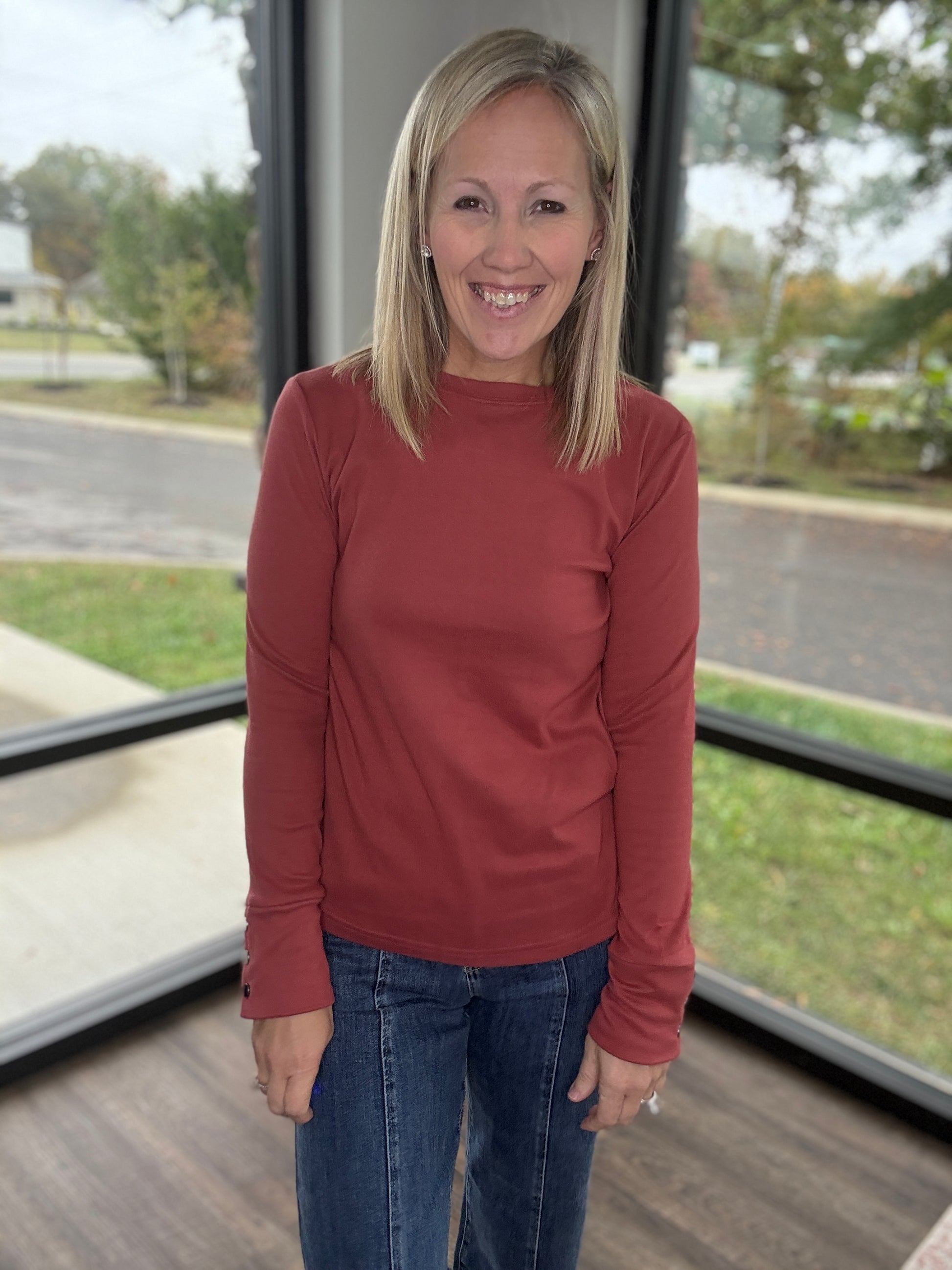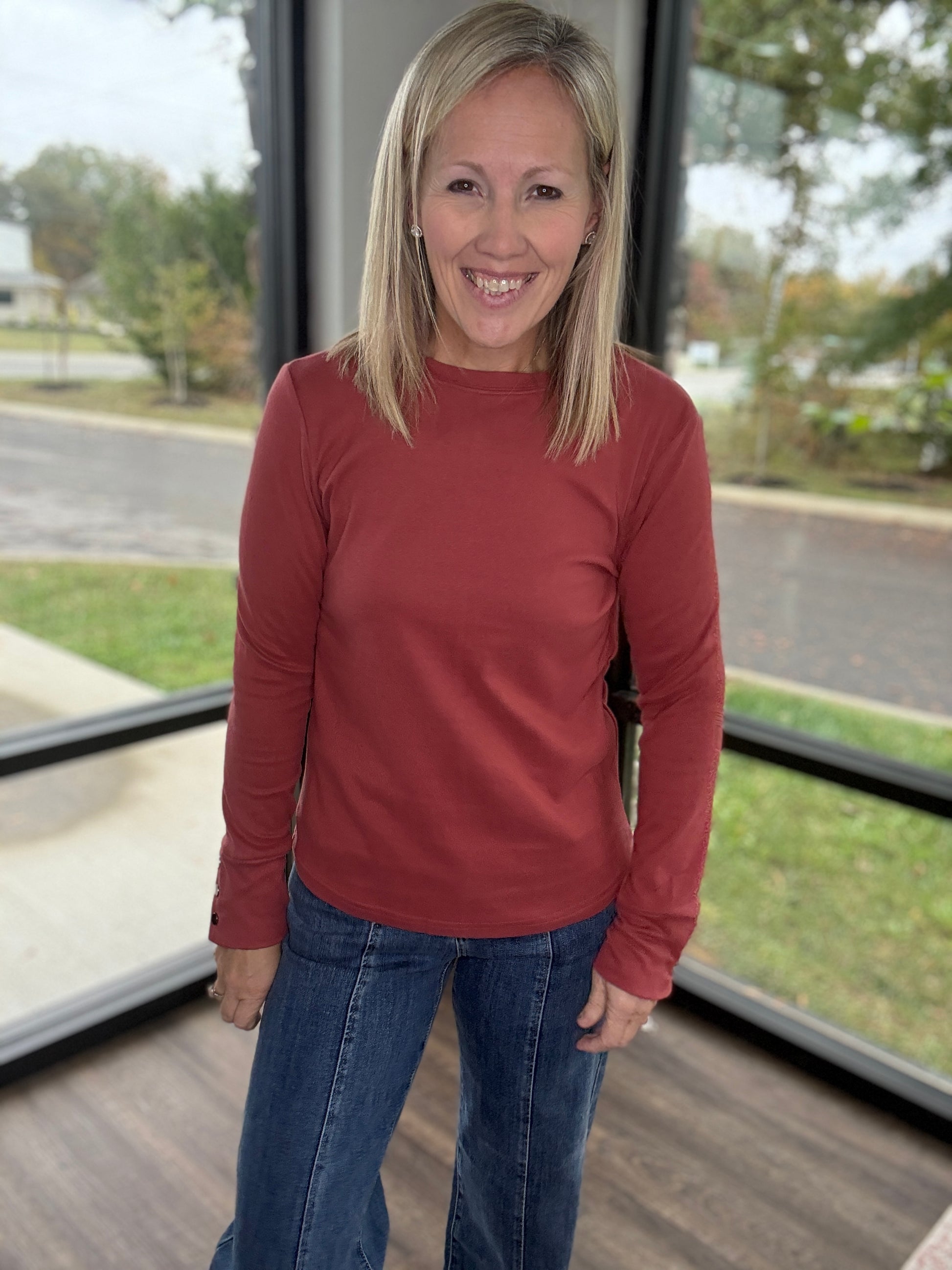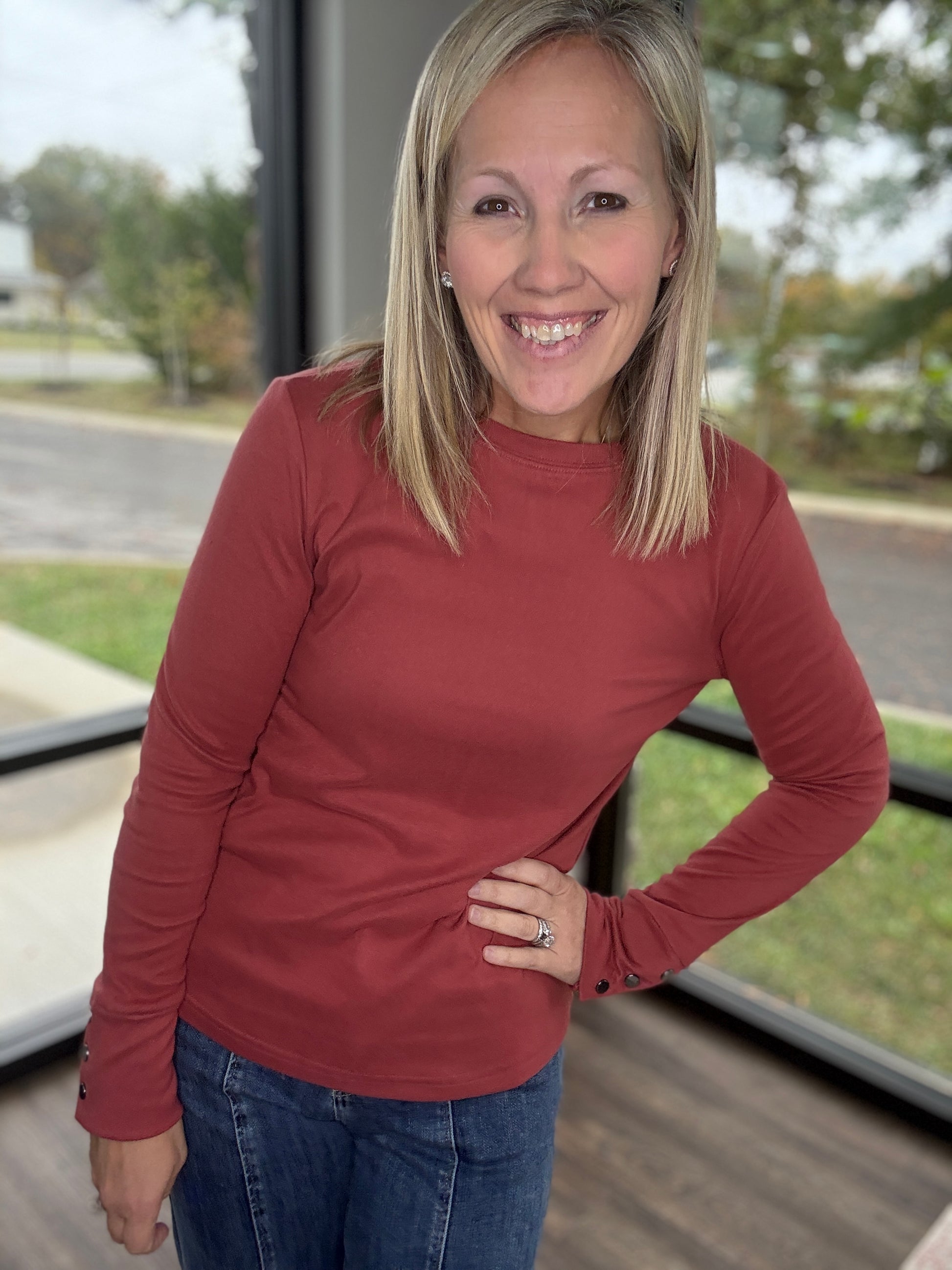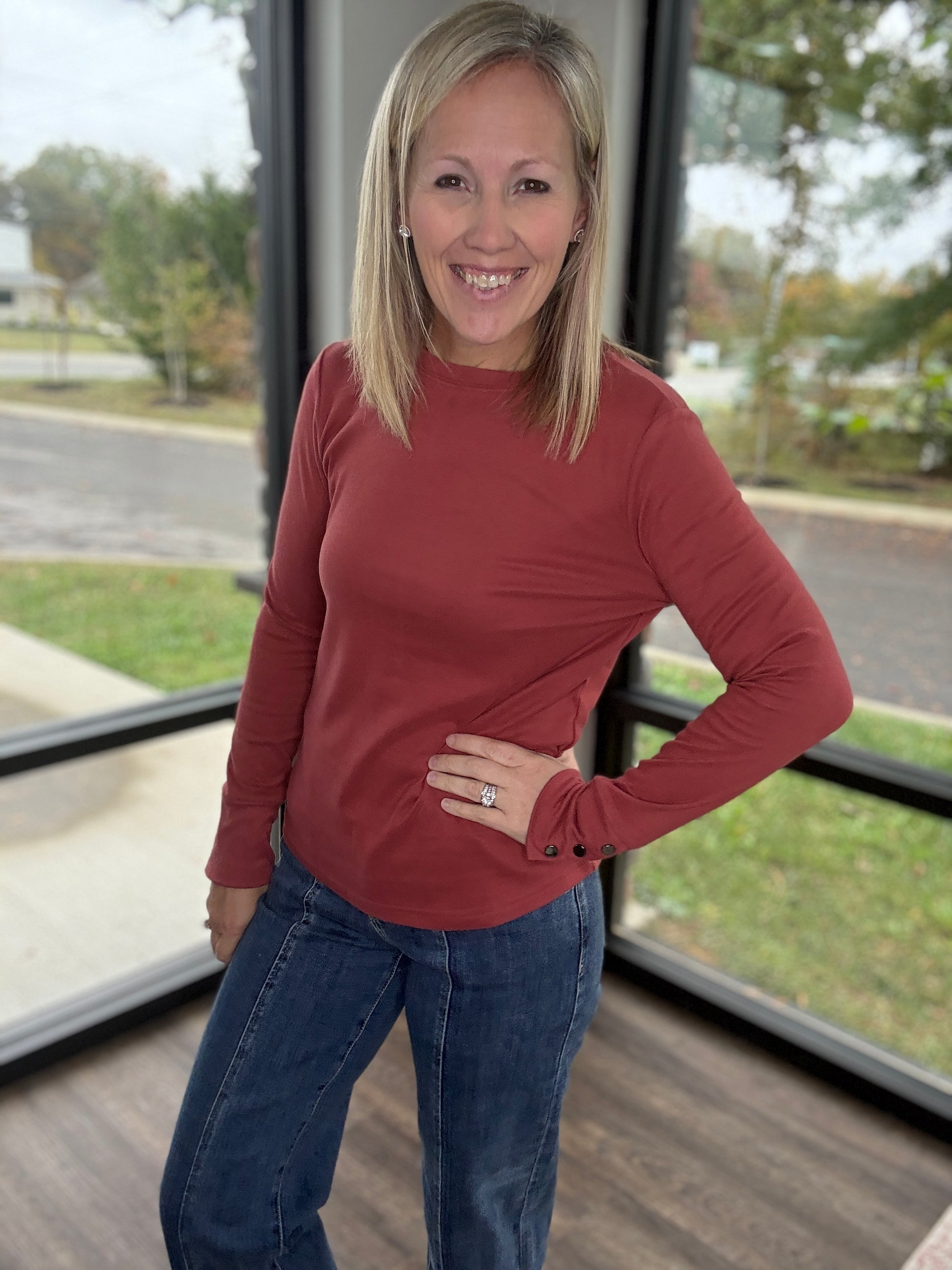Stay effortlessly chic in the Alexis Top — the perfect blend of comfort and style. Made from a super soft knit, this long sleeve top features snap cuff detailing for a polished, elevated touch. Its relaxed-yet-flattering fit makes it an easy go-to for layering, dressing up, or keeping it simple and cozy.
