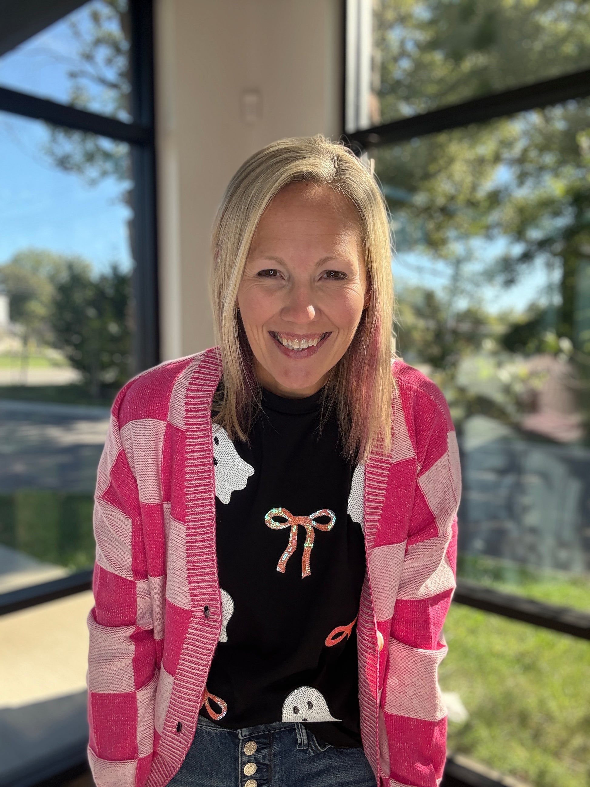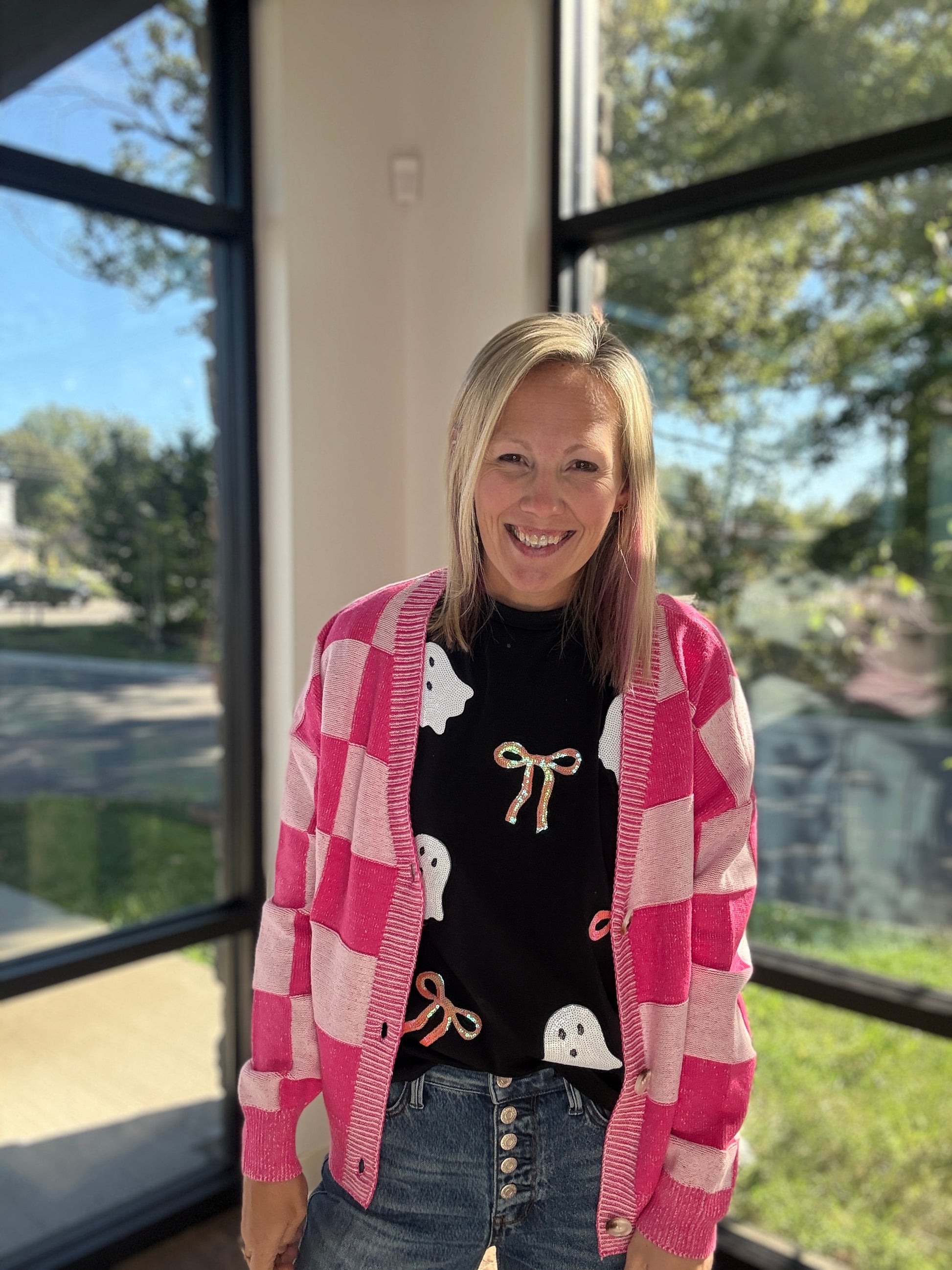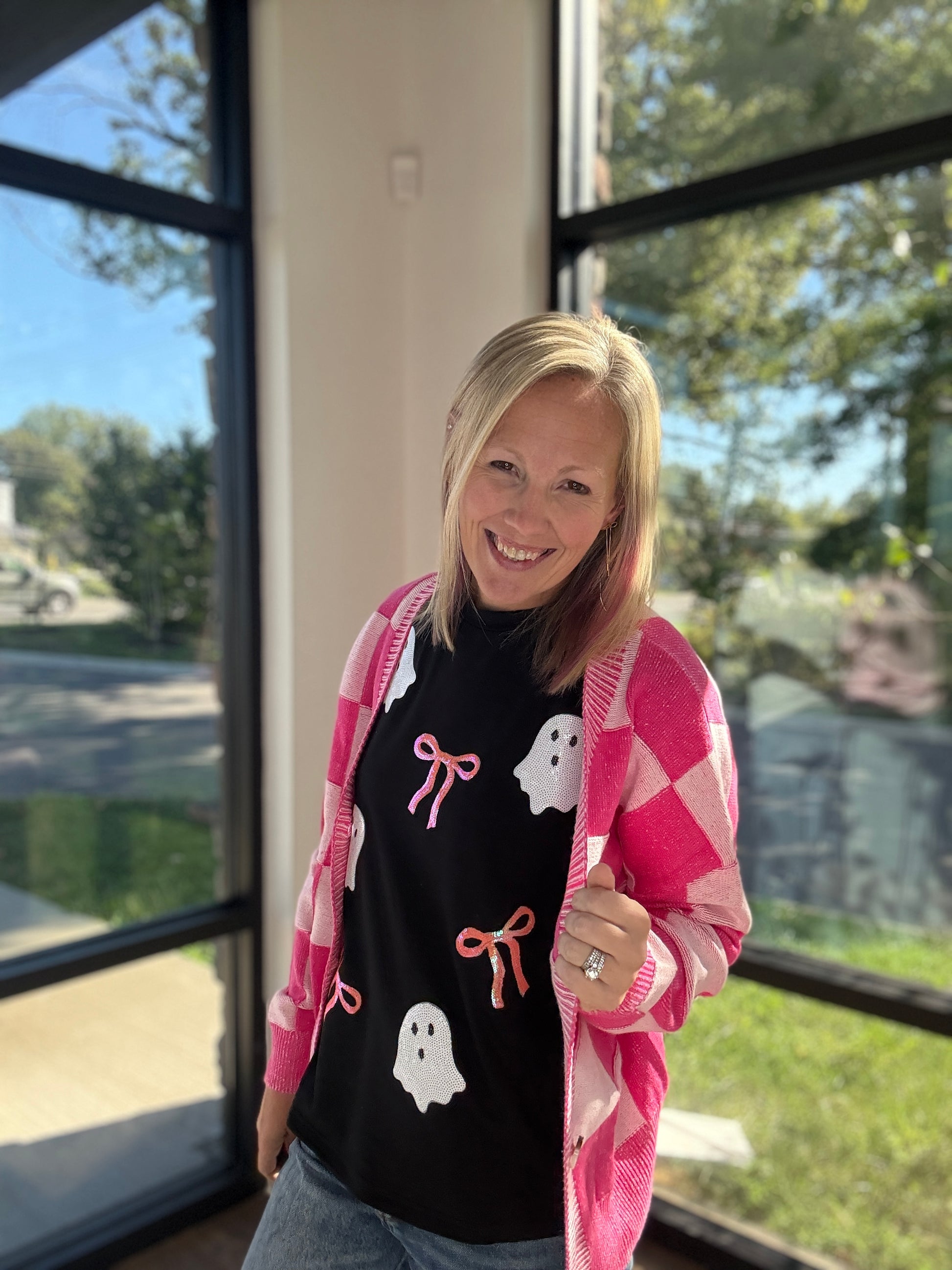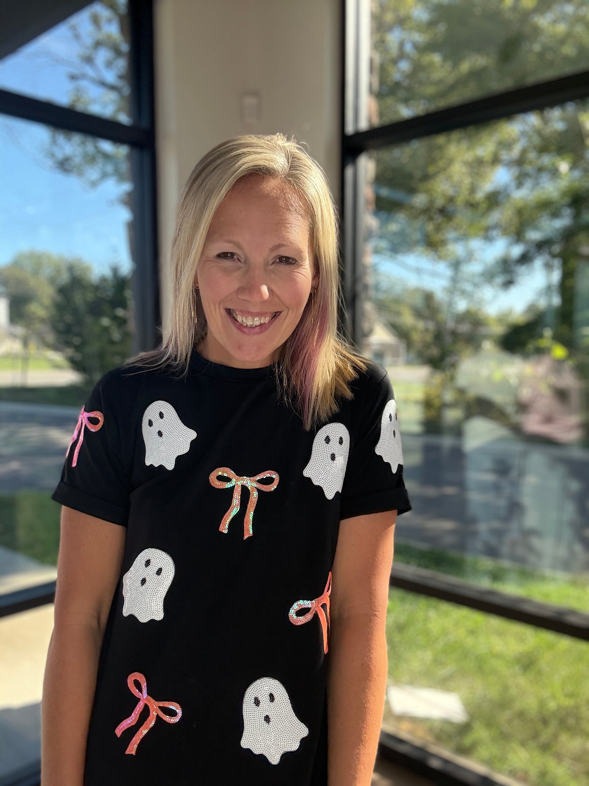 Sequin ghost graphic with bow detail