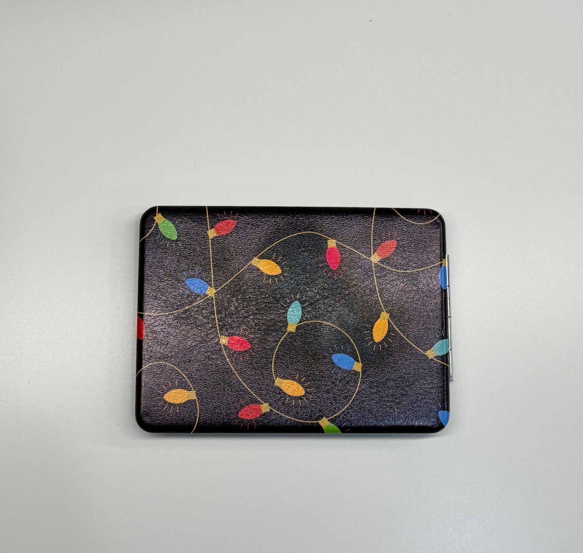 Add a sprinkle of holiday cheer to your handbag with the Christmas Lights Compact Mirror. This festive companion lights up your look while letting you check and perfect your holiday glow on the go. Small, bright, and merry—it's the perfect pocket-sized burst of Christmas magic wherever you are!