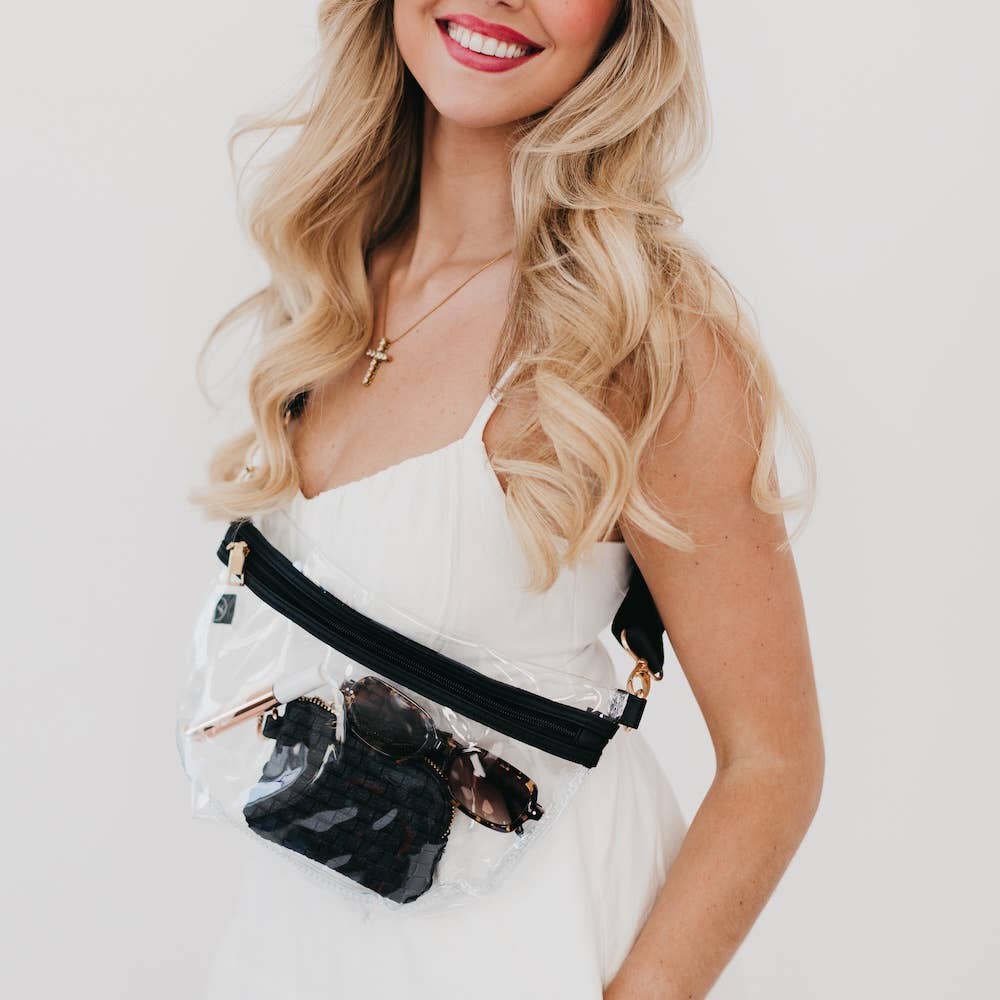 Get ready to slay your game at the stadium with our Kehlani Clear Bum Bag! Choose from 3 trendy colors and easily carry all your essentials in style. With an adjustable and removable strap, this bag can be worn across your chest or around your waist. Plus, the vegan leather zipper lining adds an extra touch of glam! Measurements: 12"L x 1"W x 8"H / Strap: 29" / 52"