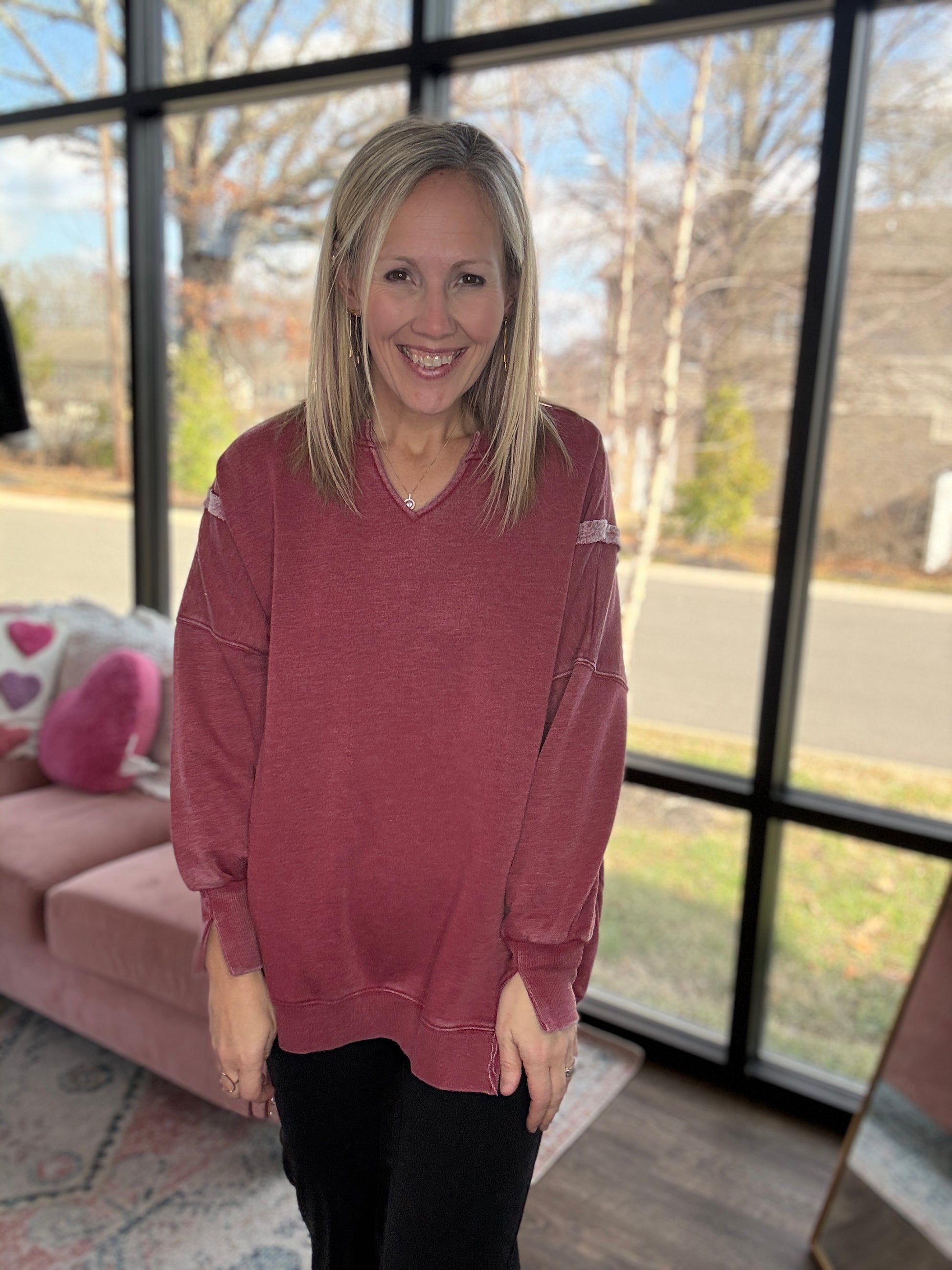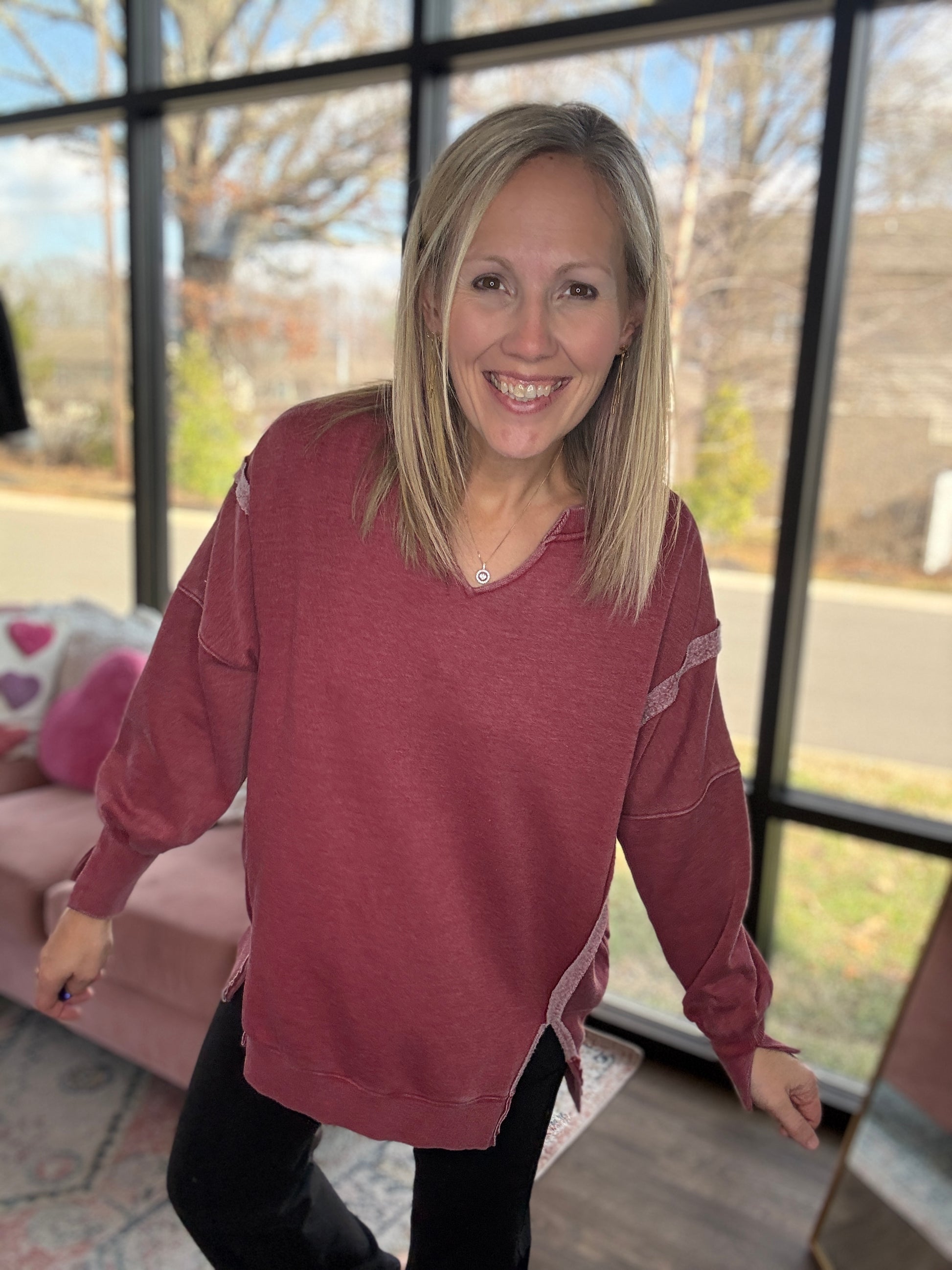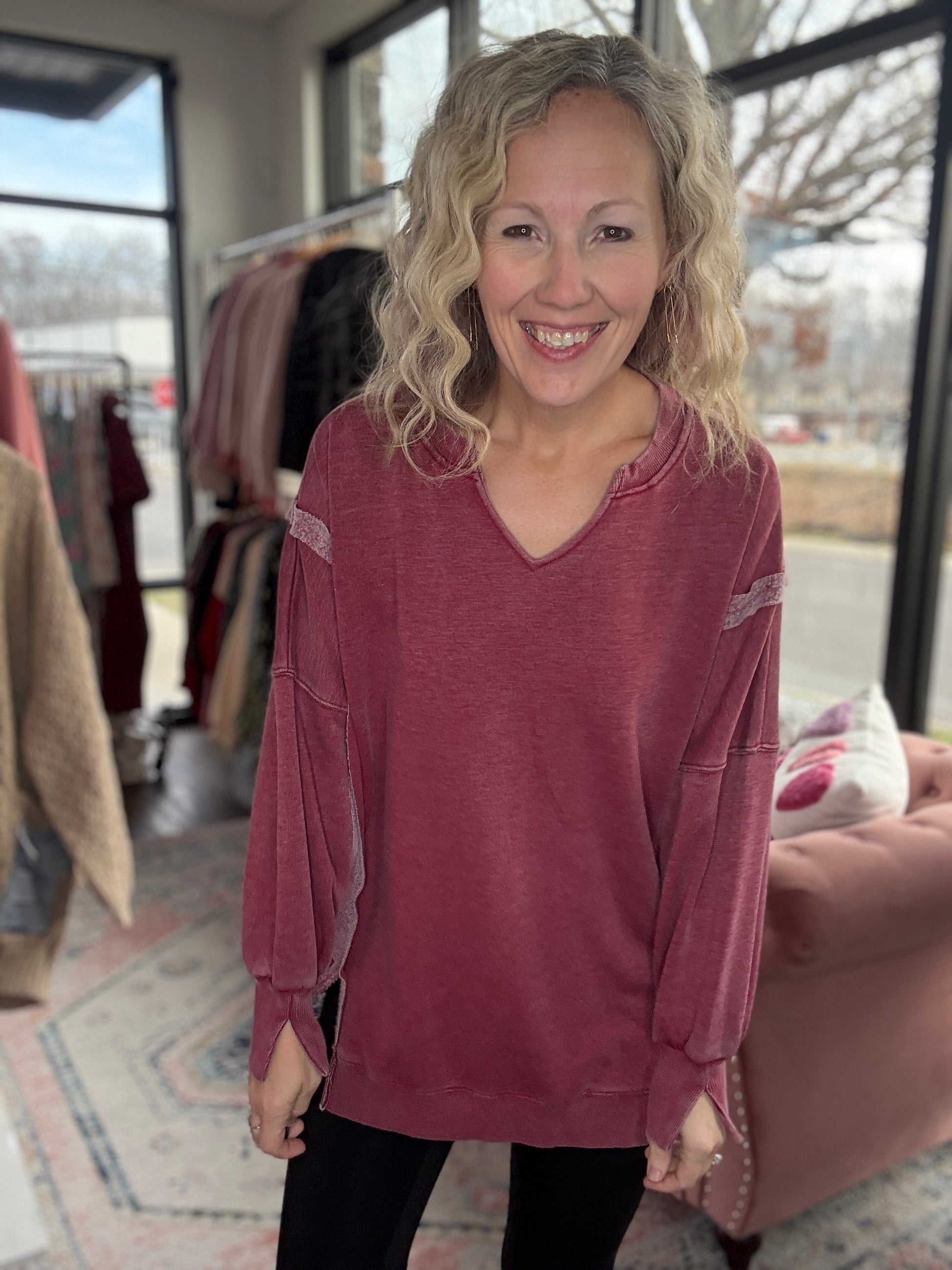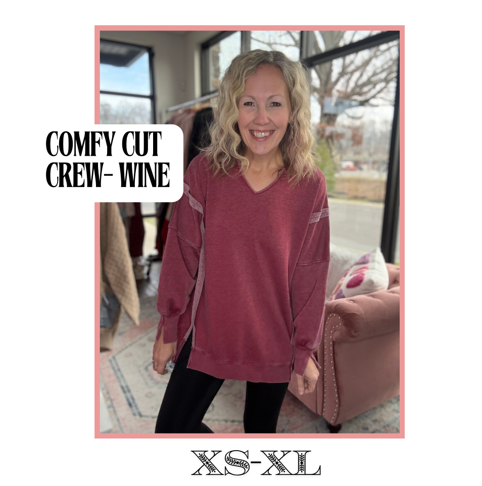 Comfy Cut Crew- Wine