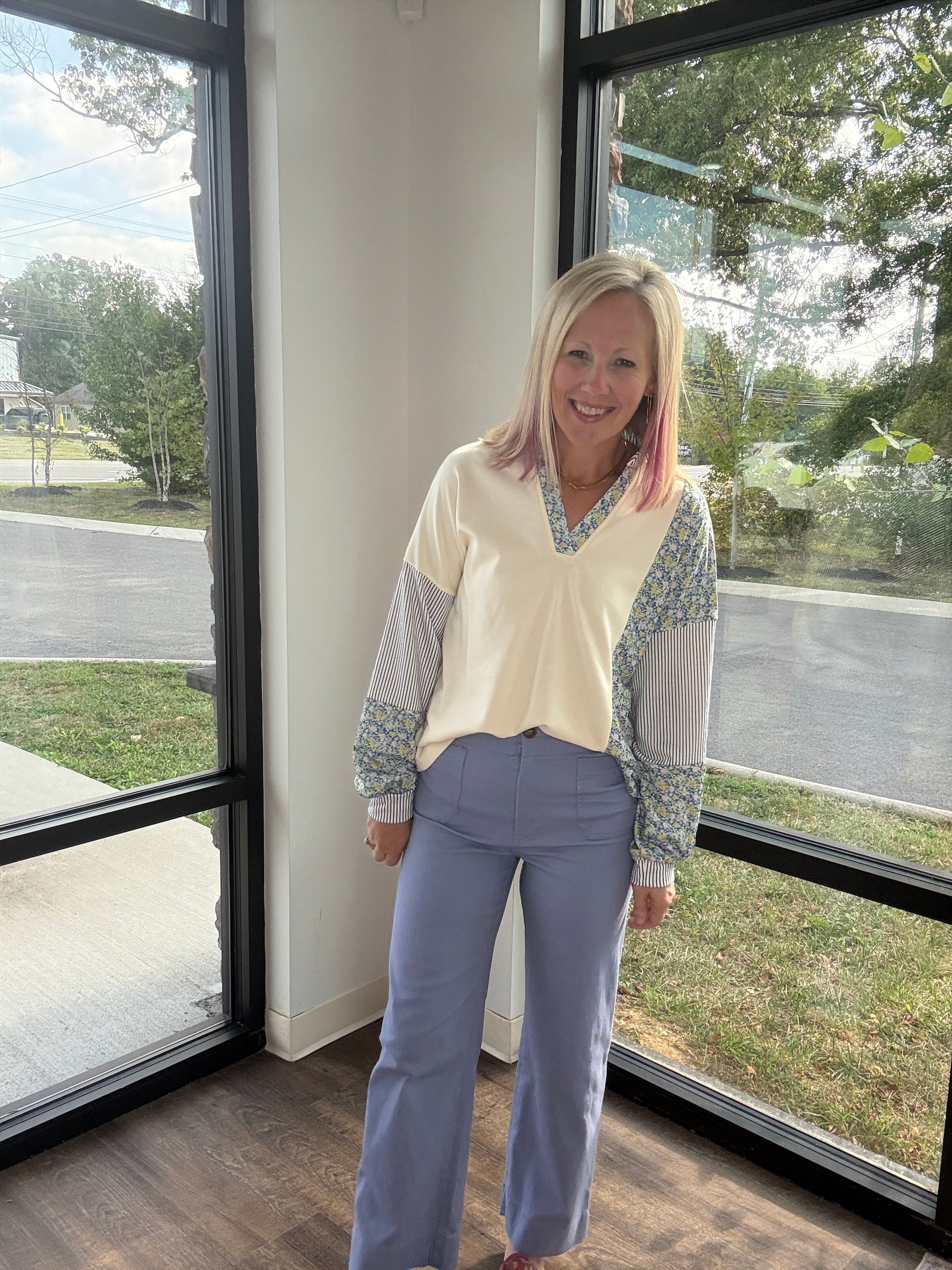 Create an effortlessly laidback look with these cropped wide leg pants! Stretchy and sturdy fabric shapes these ultra cool pants that have a high-waisted fit with a zipper and button closure. The wide legs have front and back patch pockets to add a utility element. Pants end at cropped length. + High waist cropped wide leg pants + High rise waist with belt loops + Front and back patch pockets + Cropped wide leg fit + Zipper and button closure.
