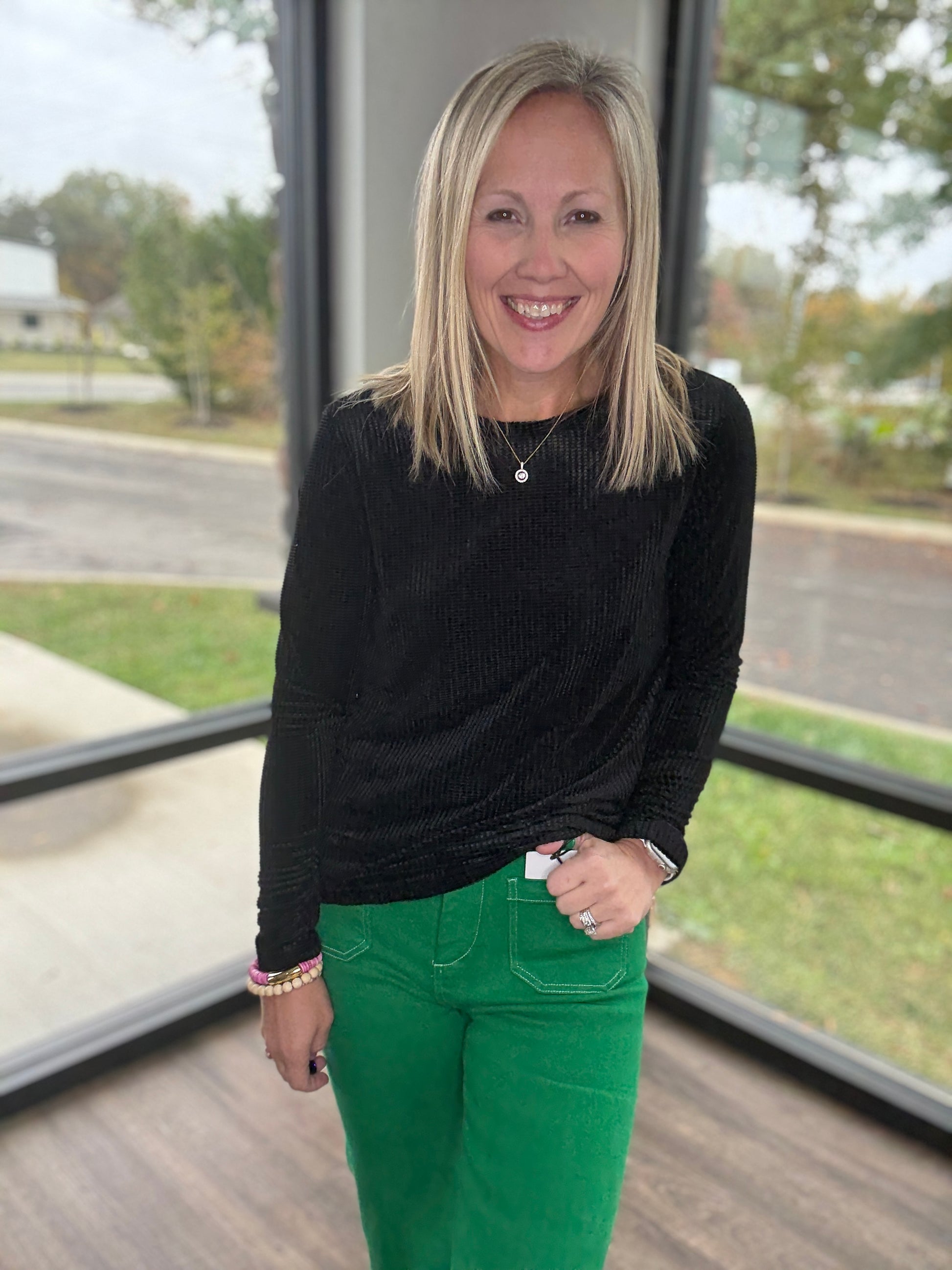 Meet your new wardrobe favorite — the Delanie Textured Crew Neck Top. With its soft, cozy feel and eye-catching textured fabric, this top gives effortless style every single time you put it on. The relaxed crew neckline and easy silhouette make it perfect for everyday wear, yet the subtle detailing adds just enough something special to turn heads.