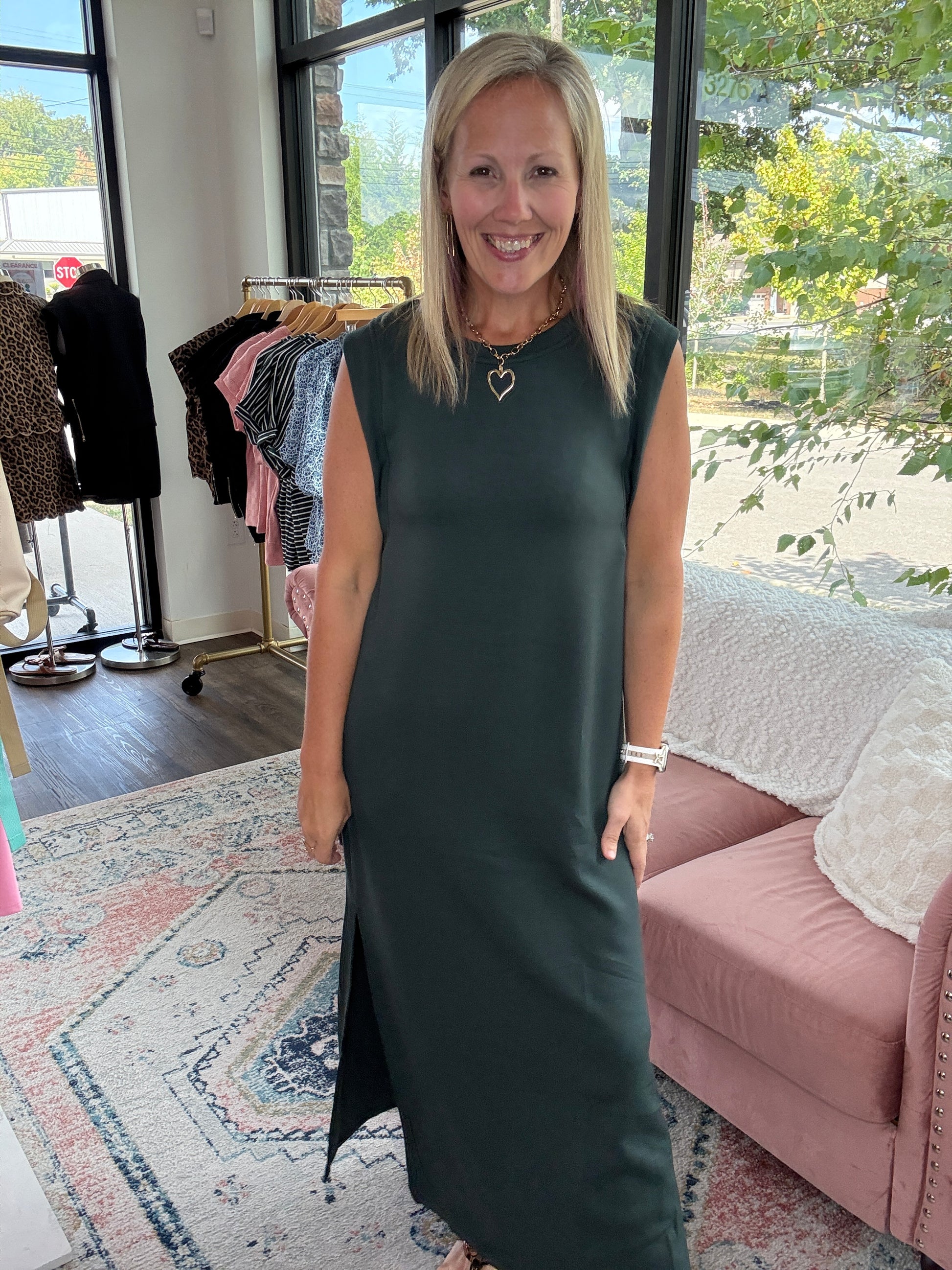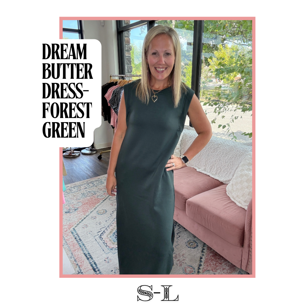 The Dream Butter Knit Midi Dress – Once you slip this on, you’ll understand why we call it amazing. Made from our signature butter knit fabric, it’s unbelievably soft with just the right weight to wear now and layer into cooler months. The midi length keeps it classy, while a knee-high side slit adds the perfect touch of movement. Thoughtful gusset detail under the arm keeps your bra hidden, and yes—there are pockets. Available in rich wine, deep navy, and lush forest green, this is the dress you’ll reach for again and again.