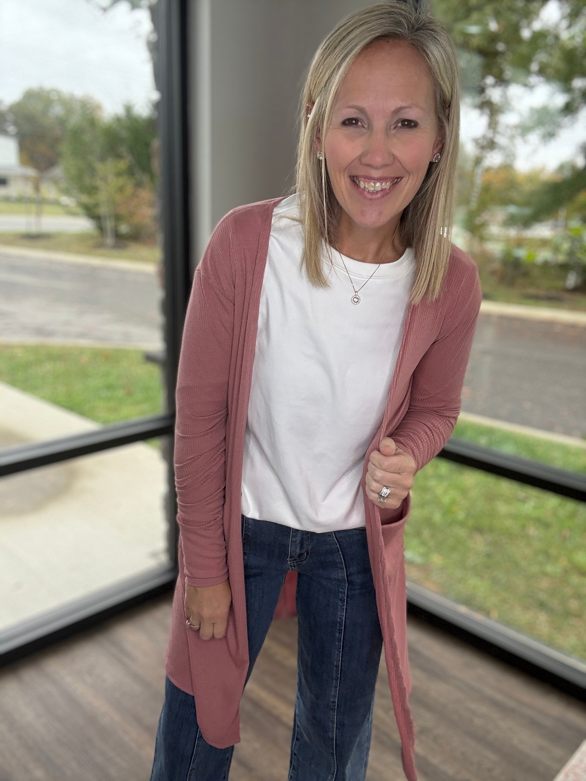 Meet your new live-in-it layer — the Everyday Cozy Rib Cardigan. Made from perfectly soft, lightweight, and stretchy ribbed fabric, this cardigan is one of those pieces you’ll grab again and again. The oversized side pockets add that easy, relaxed feel, while the thumb-hole sleeves keep things comfy and cozy (and extra cute!).