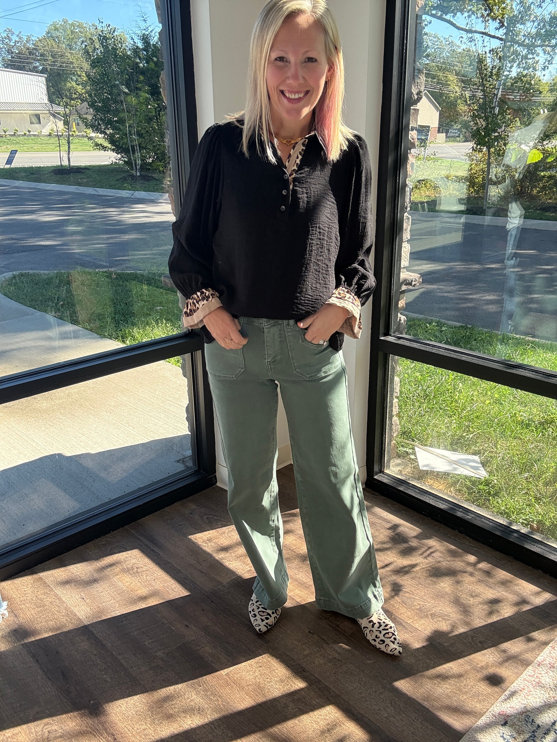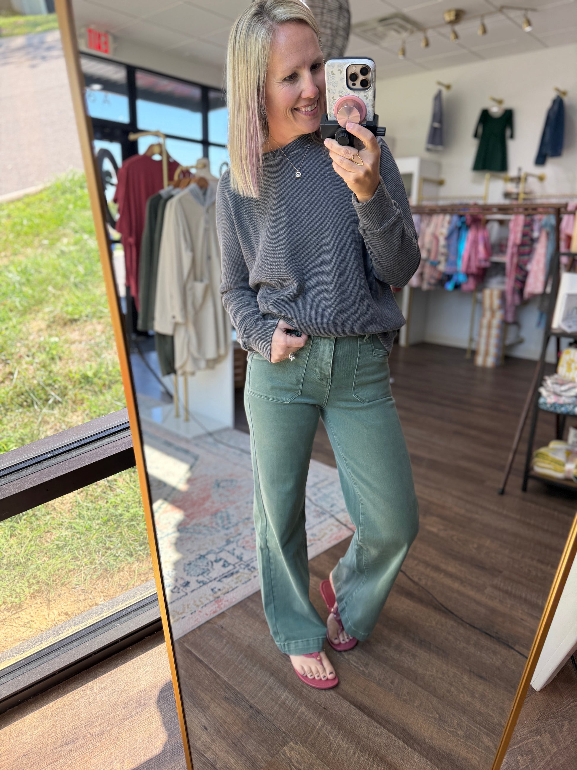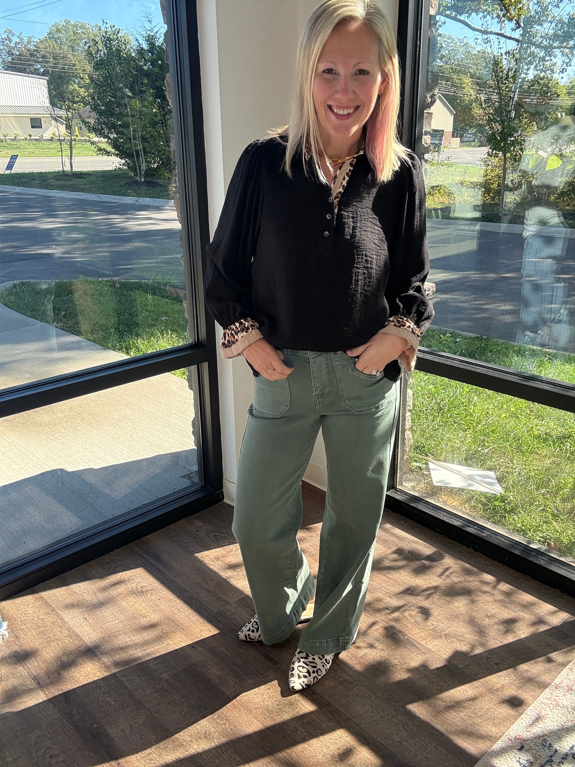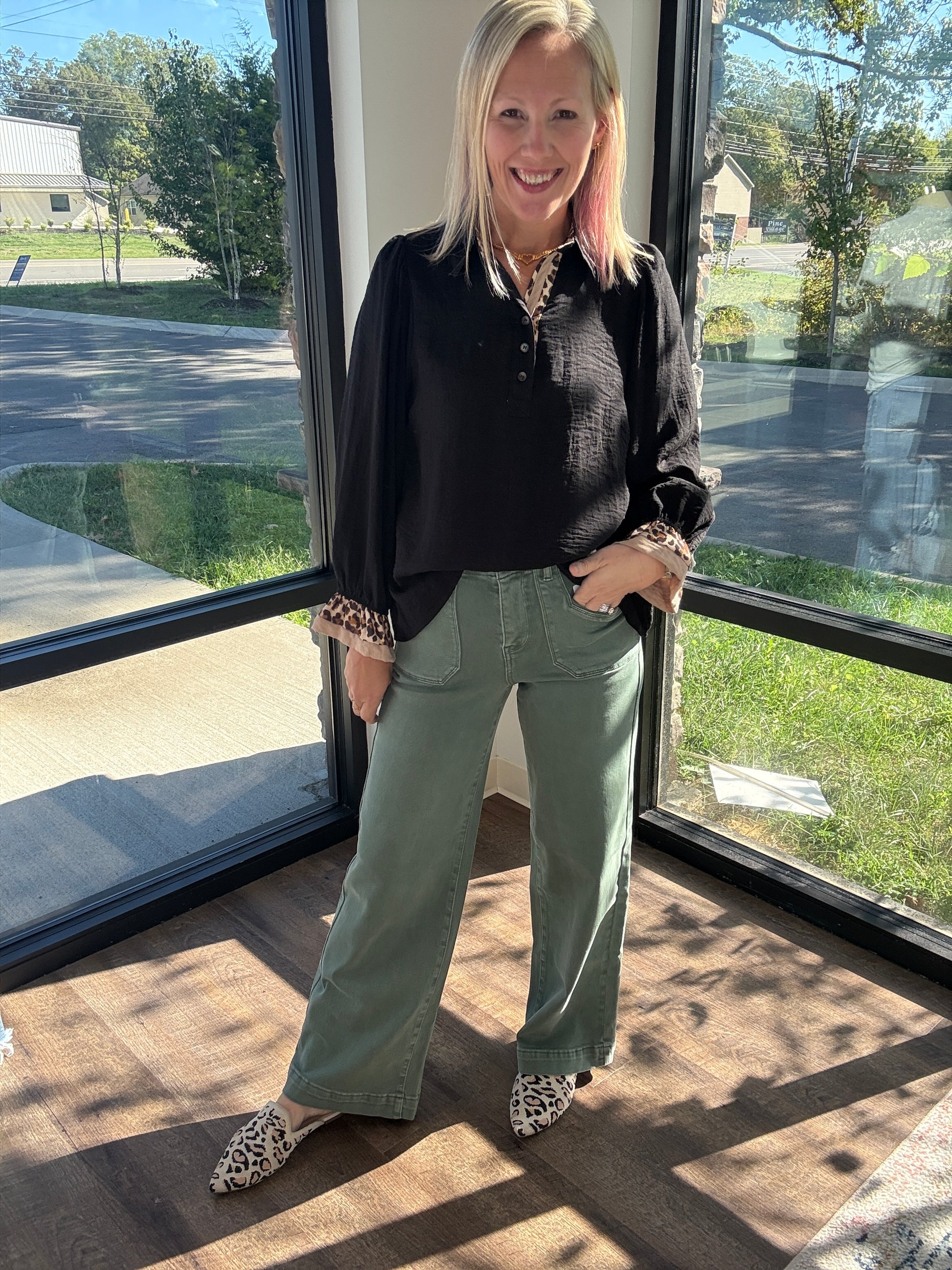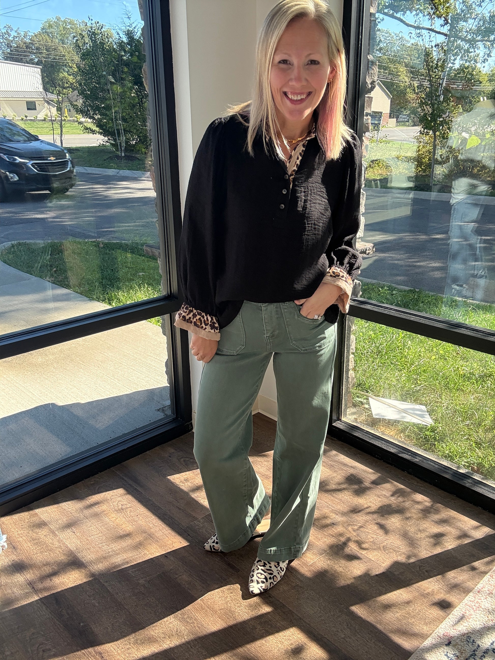 Meet your new fall favorite: the Pine Trail Denim Jean. This rich green denim brings a fresh twist to autumn style, with a flattering 12" high rise and a 31" inseam that elongates every look. Made with Mica’s signature stretch, they deliver all-day comfort while keeping their sleek shape—perfect for pairing with cozy cardigans, chunky sweaters, and boots.