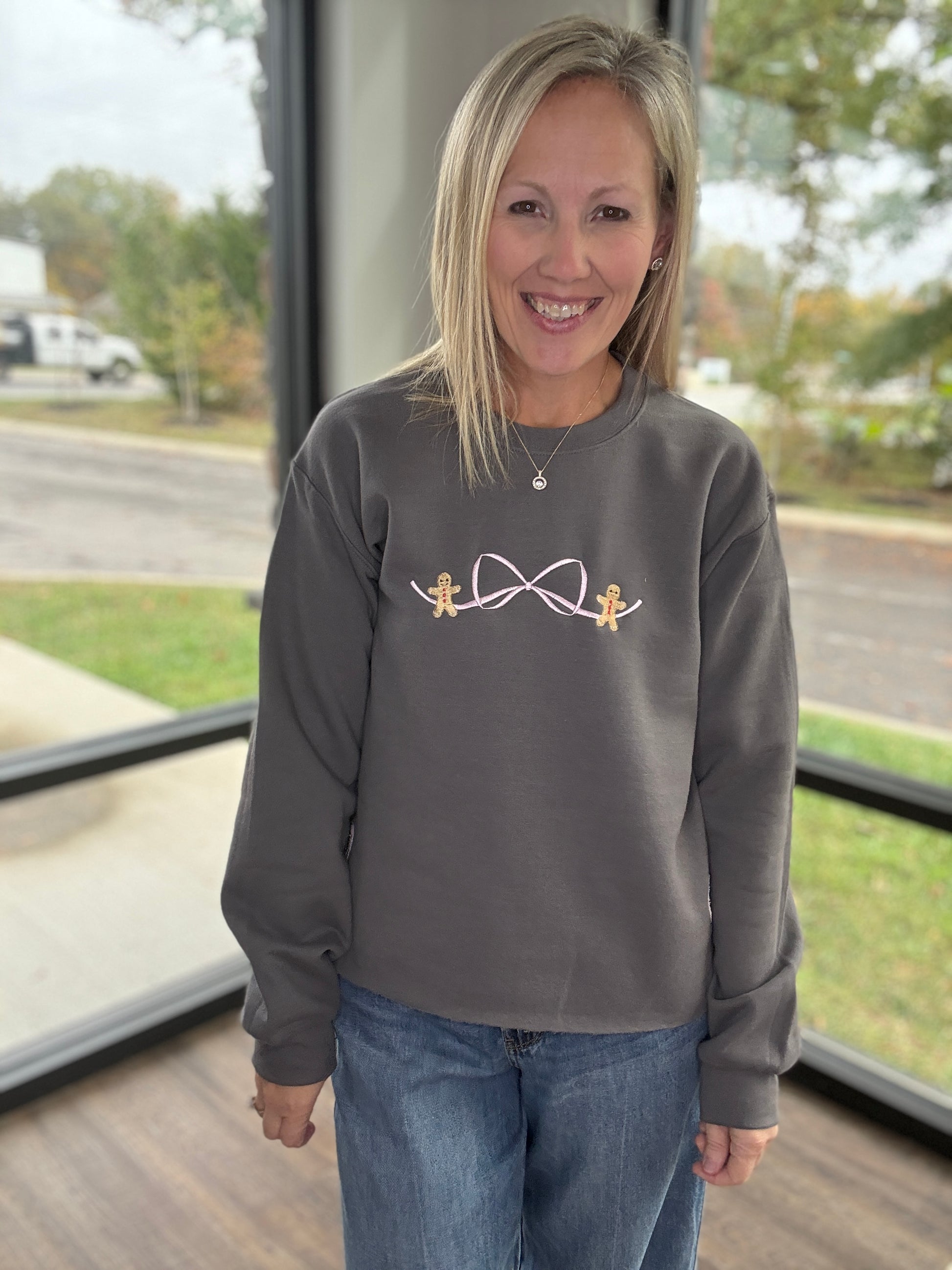 Front and center, a darling embroidered gingerbread and bow motif adds just the right touch of holiday magic. Pair it with leggings for a cozy night in or with your favorite denim for a cheerful outing—this sweatshirt is made for merry moments all season long.
