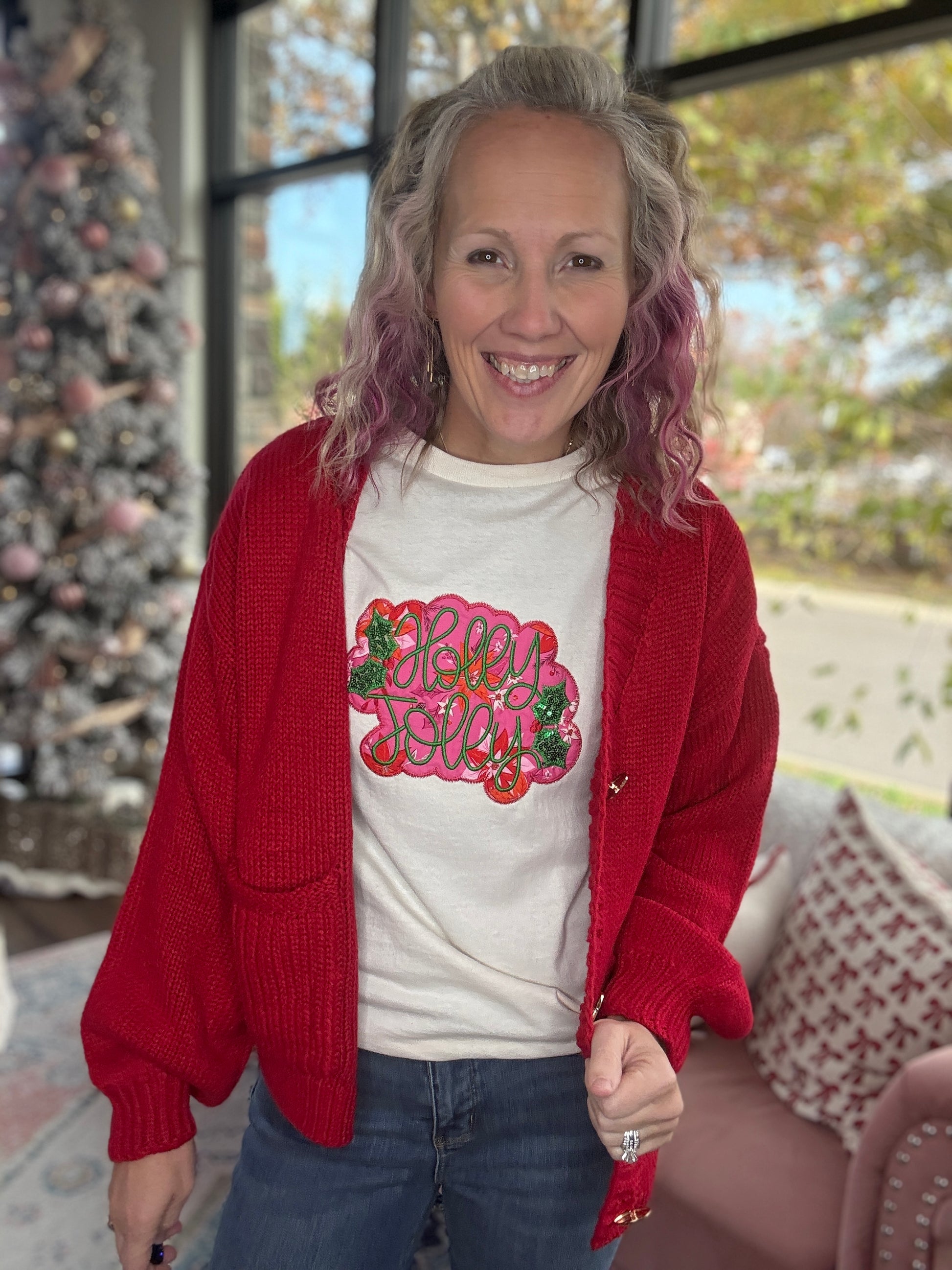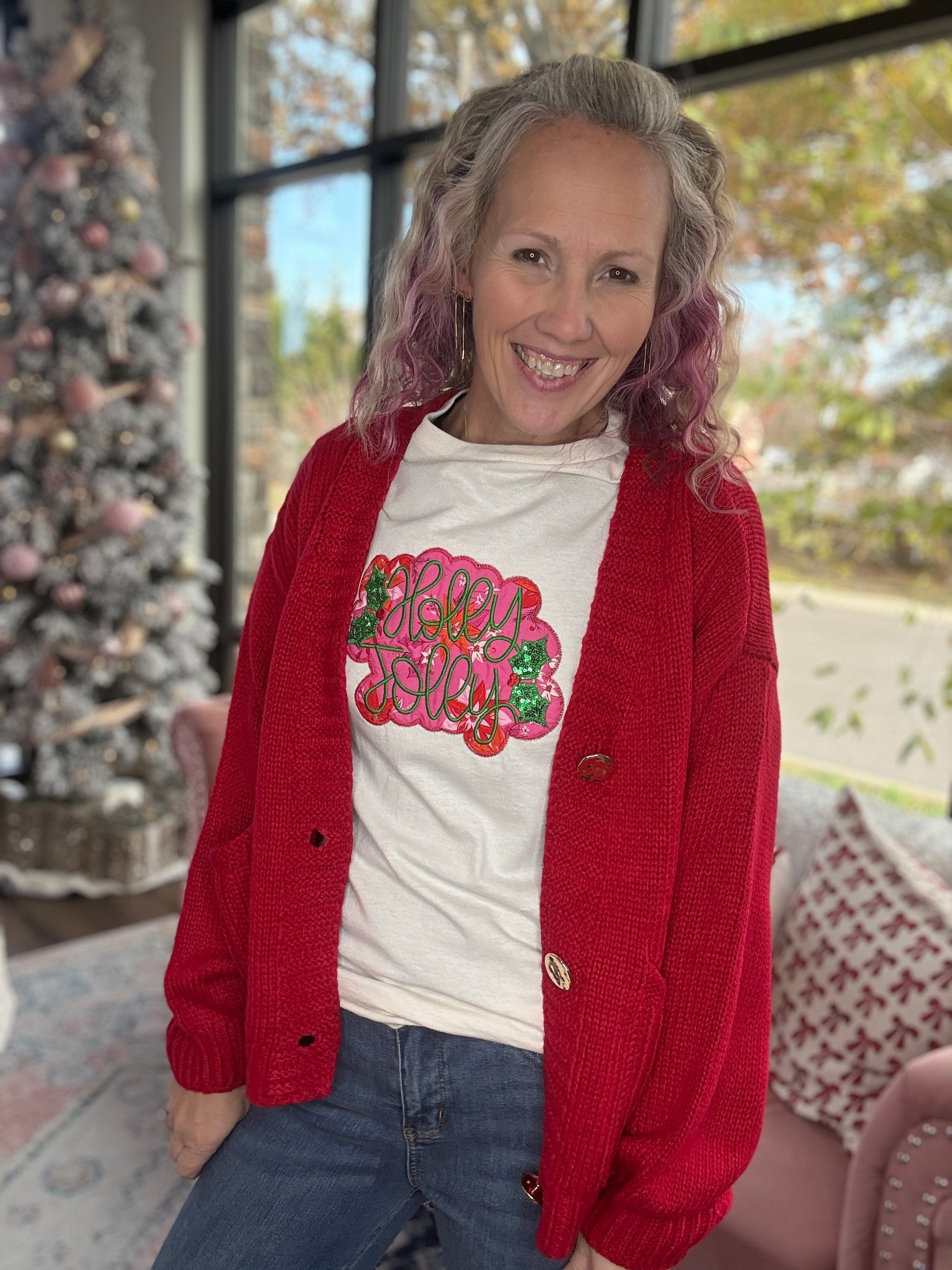 Versatile enough for everyday wear, this cardigan works effortlessly from fall through winter and will transition seamlessly into Valentine’s styling as well.