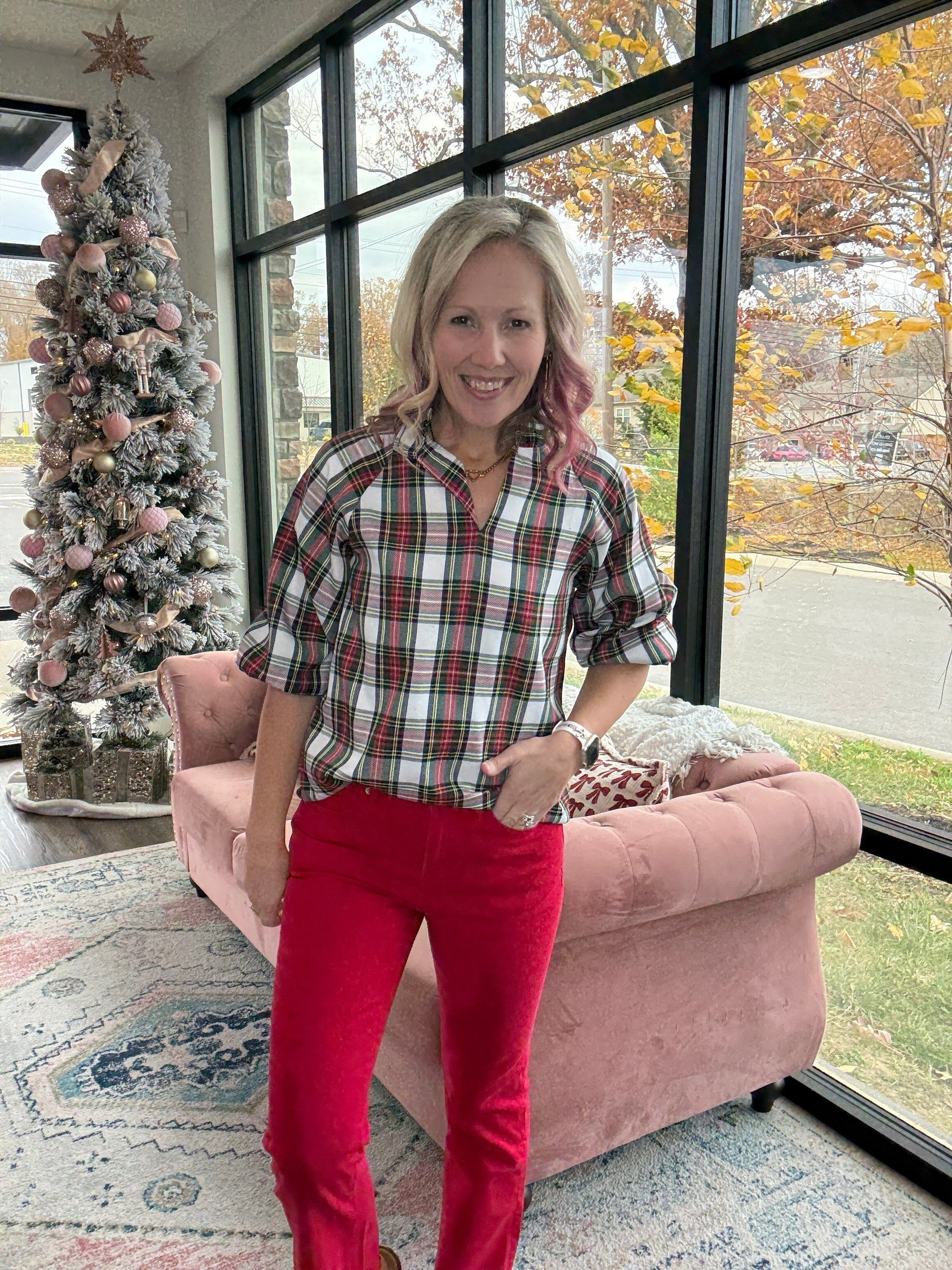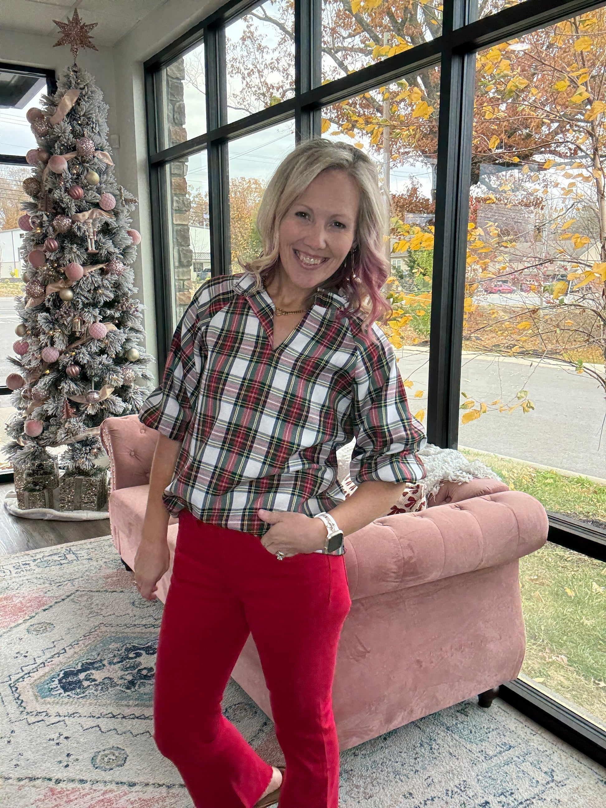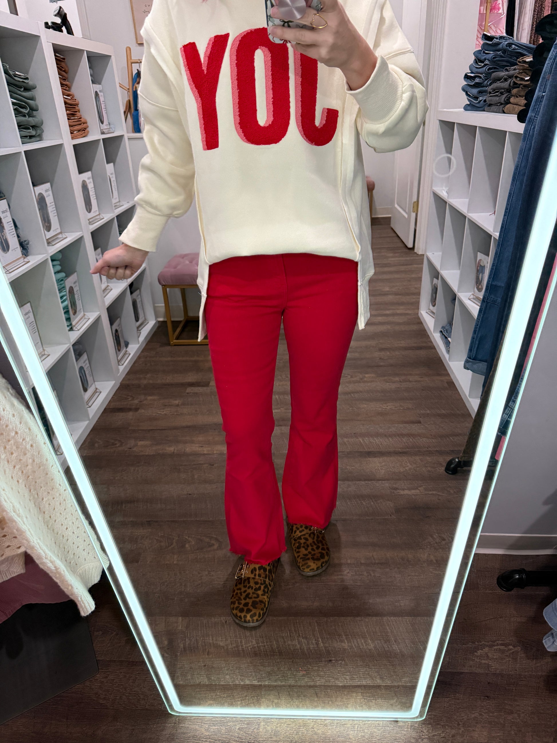 Made with Mica’s signature craftsmanship, the Candy Apple Flare offers dependable structure, minimal stretch, and high-quality finishing. Perfect for Christmas, just as fitting for Valentine’s Day, and a standout color you’ll reach for throughout the year. Pair them with sweaters, blouses, graphic tees, or dressy tops for endless styling potential.