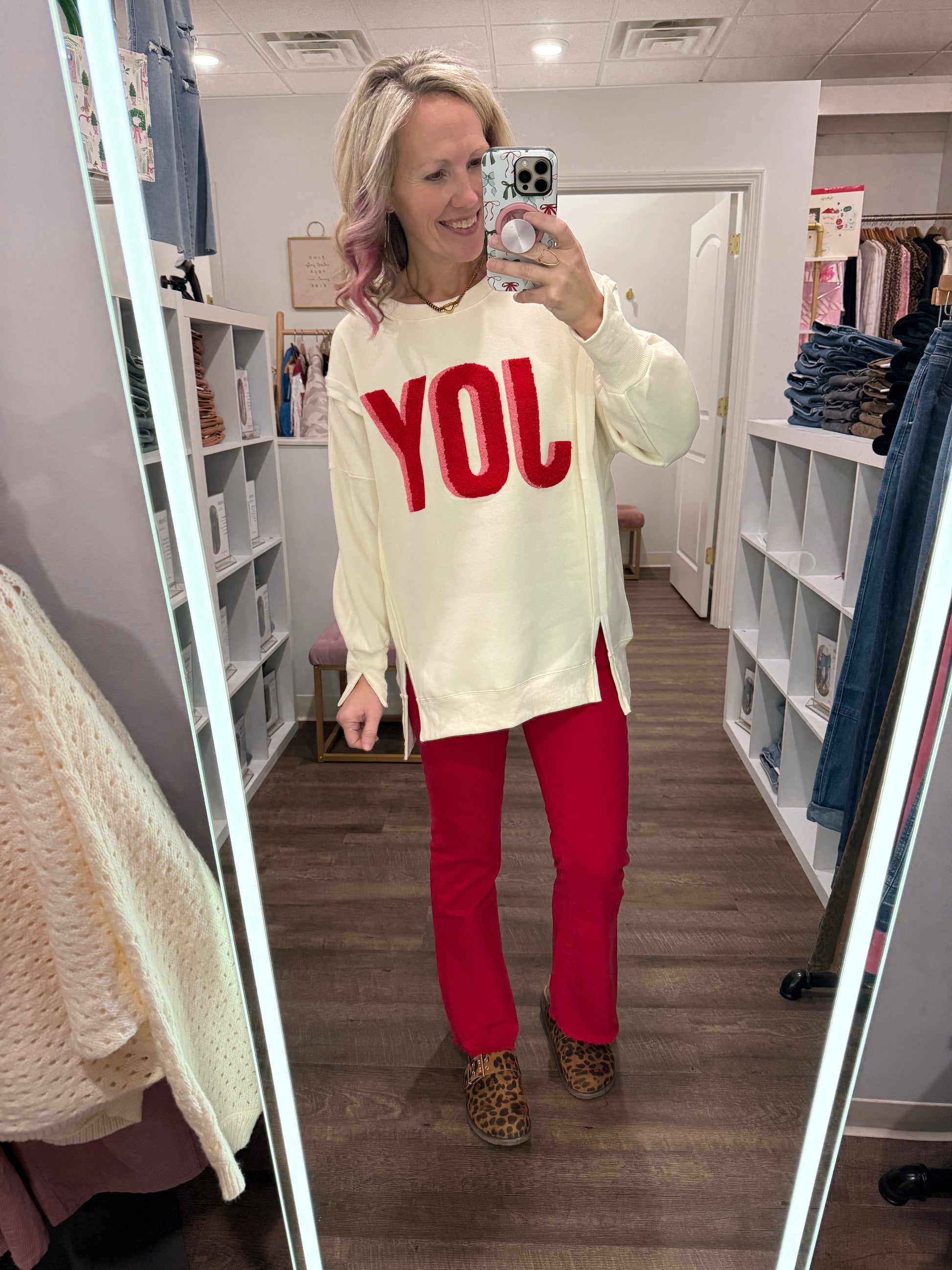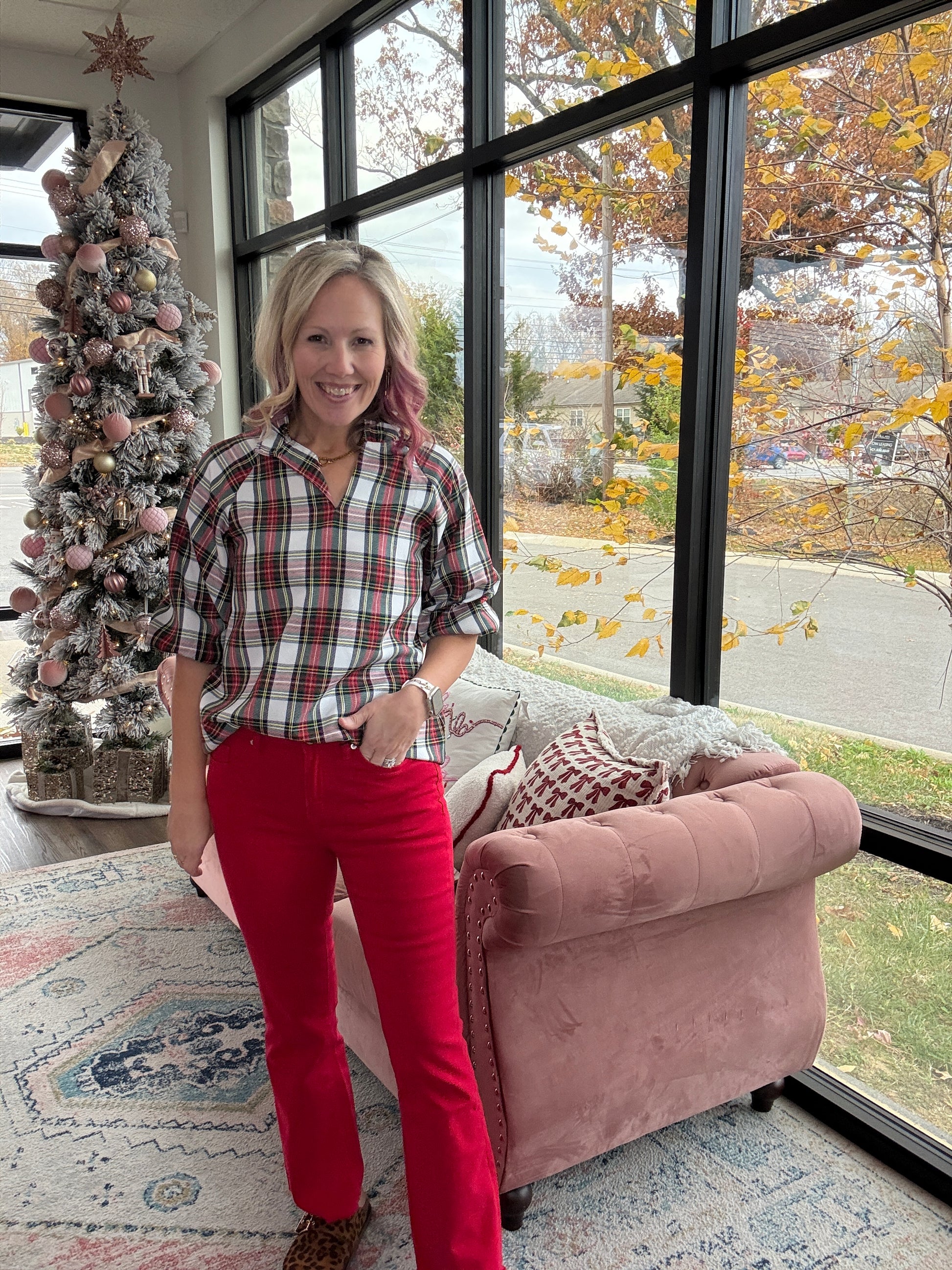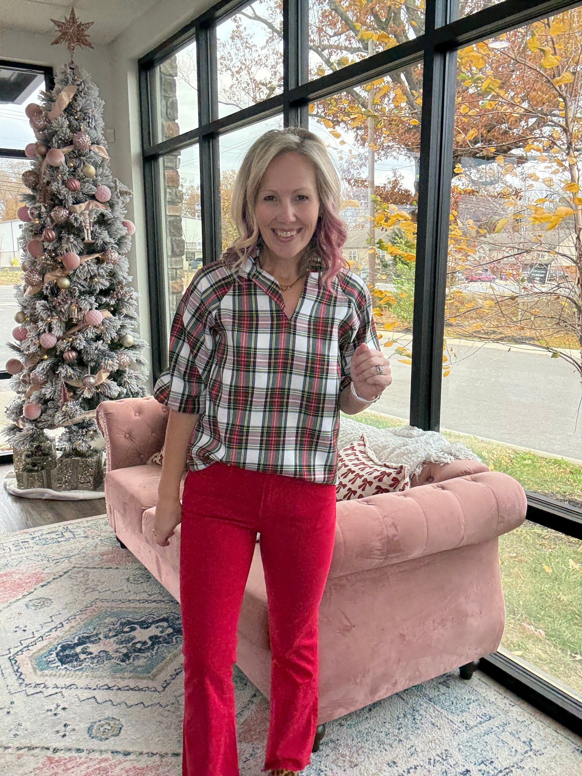 Made with Mica’s signature craftsmanship, the Candy Apple Flare offers dependable structure, minimal stretch, and high-quality finishing. Perfect for Christmas, just as fitting for Valentine’s Day, and a standout color you’ll reach for throughout the year. Pair them with sweaters, blouses, graphic tees, or dressy tops for endless styling potential.