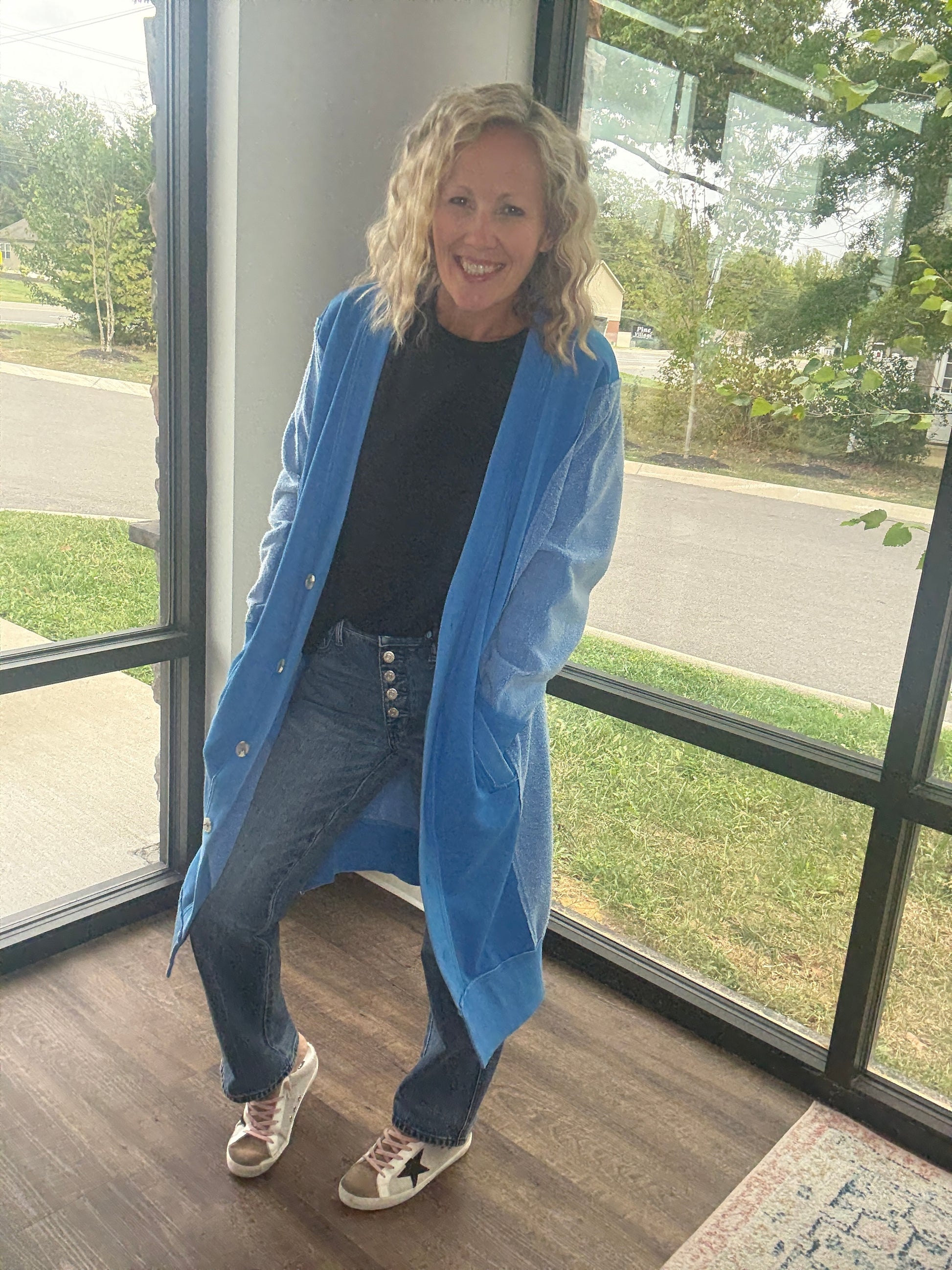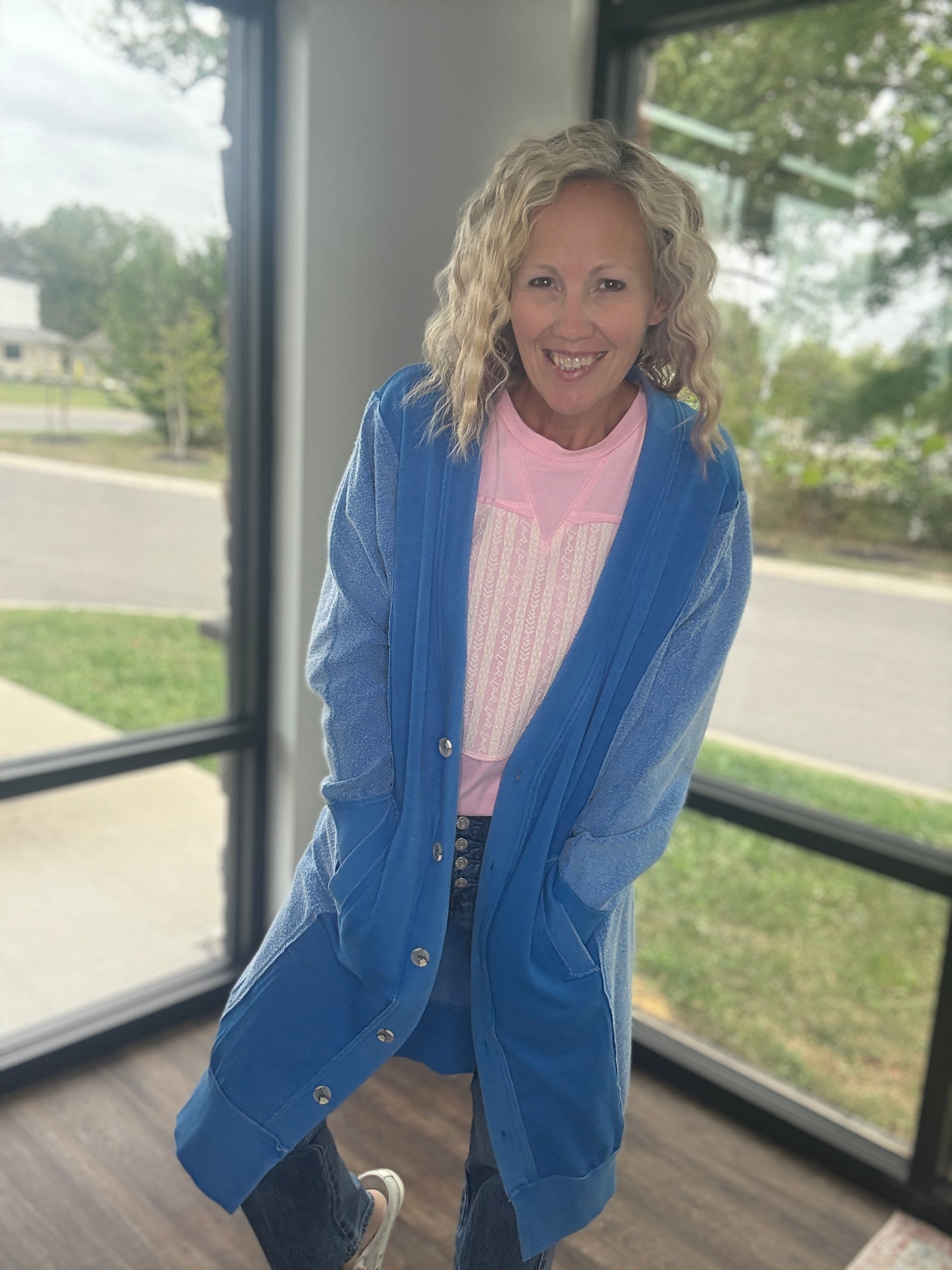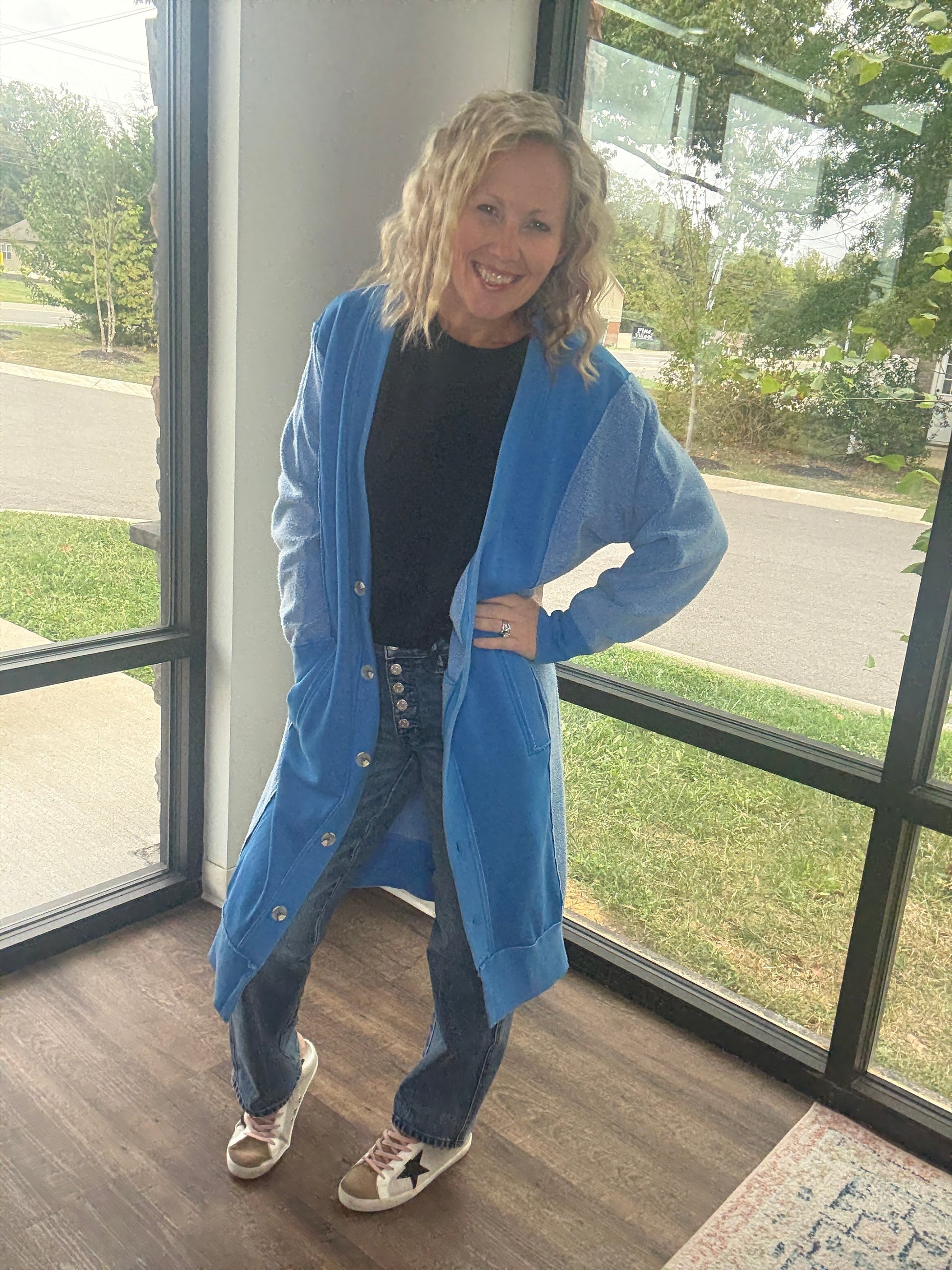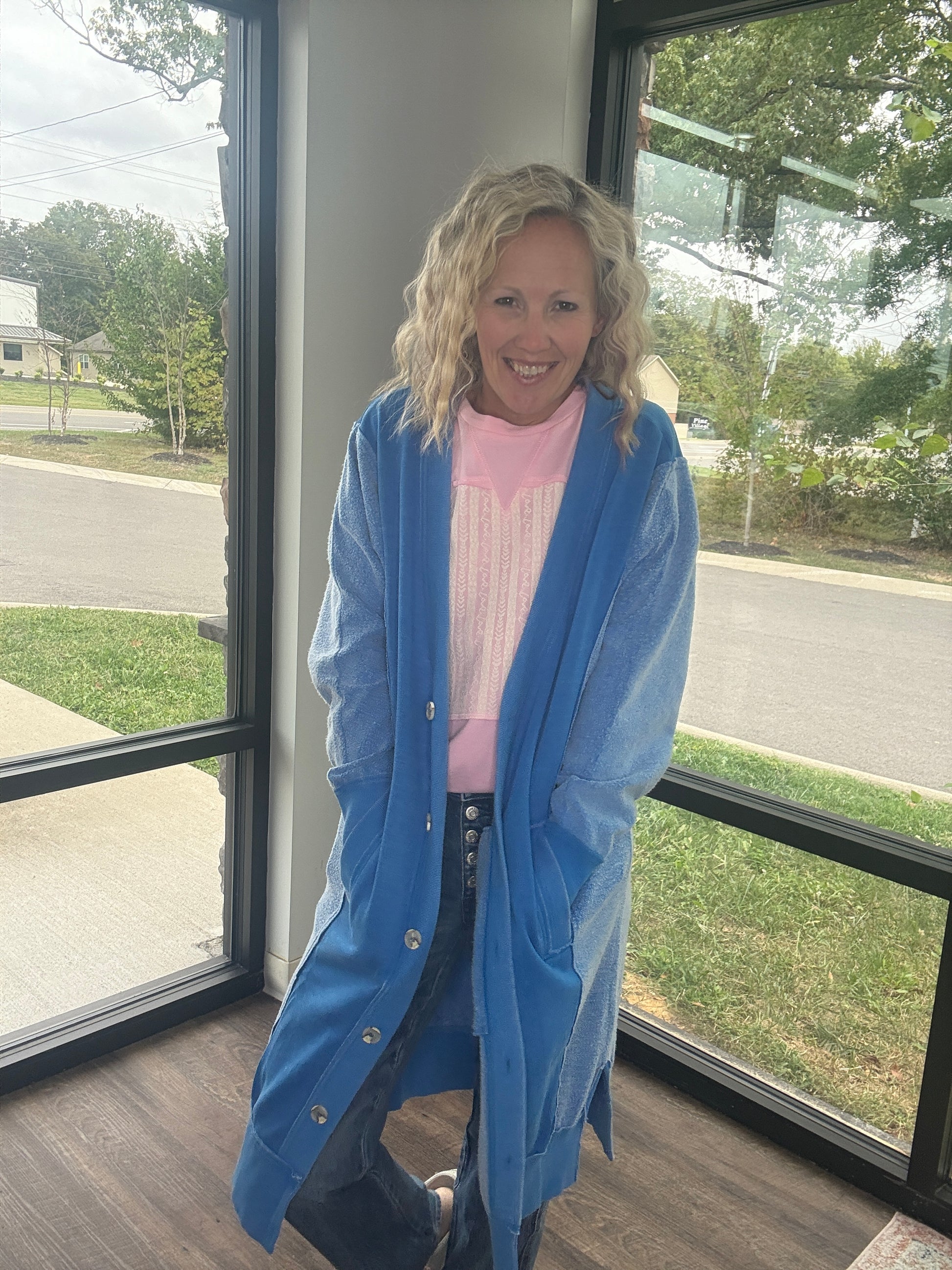 Perfect for chilly days, it’s equally at home curled up on the couch or layered over a cute tee and your favorite jeans for a polished, everyday outfit. The Friday Cardigan is where comfort meets elevated style — a true wardrobe essential.