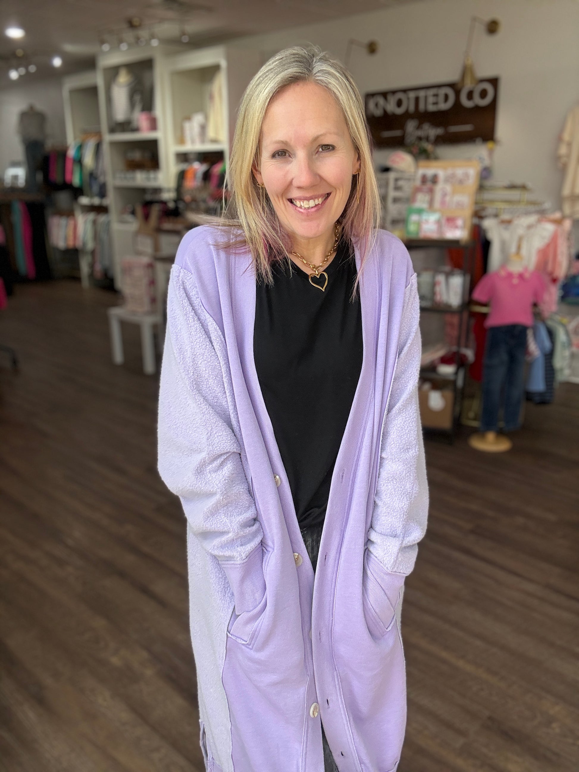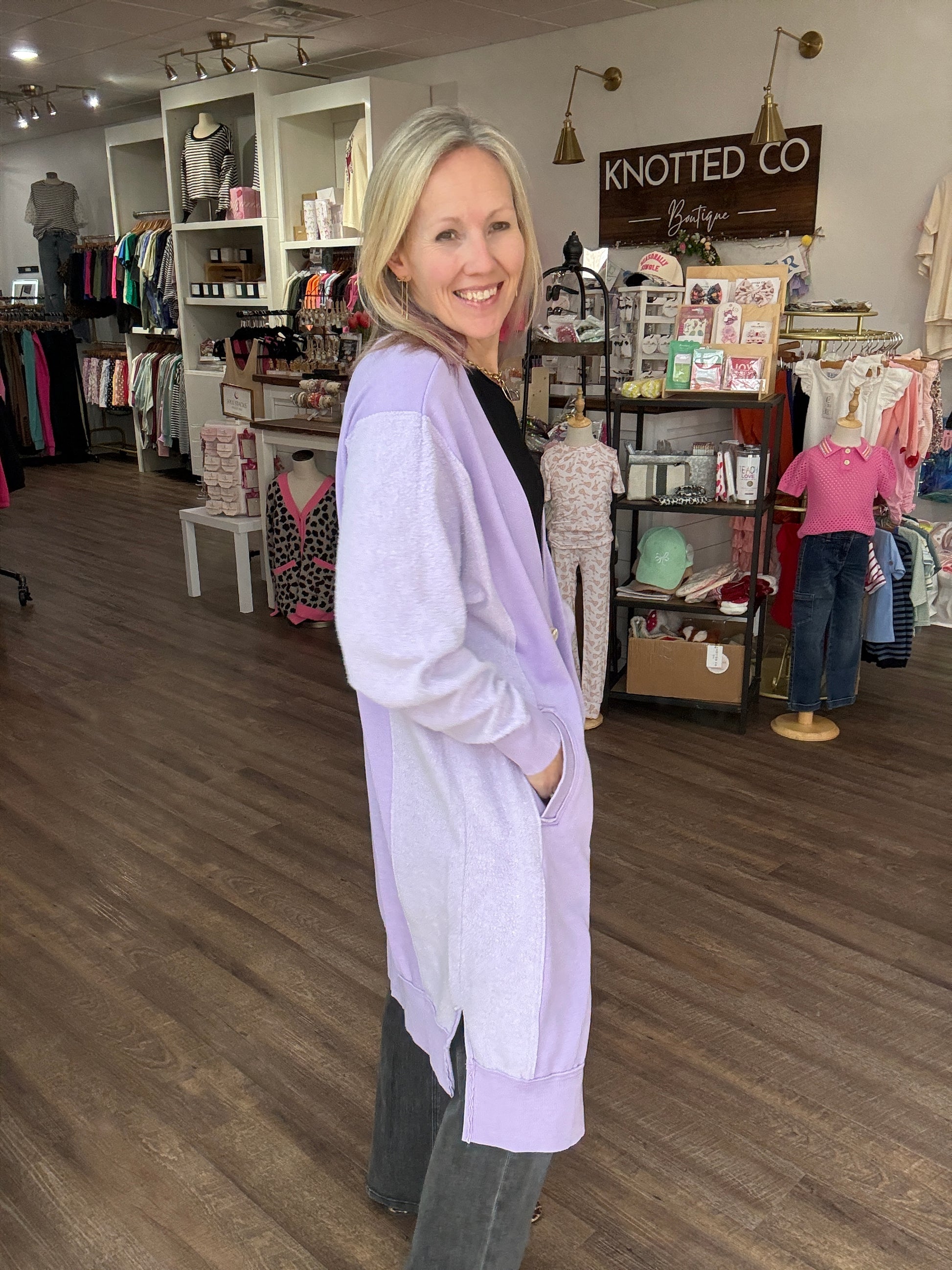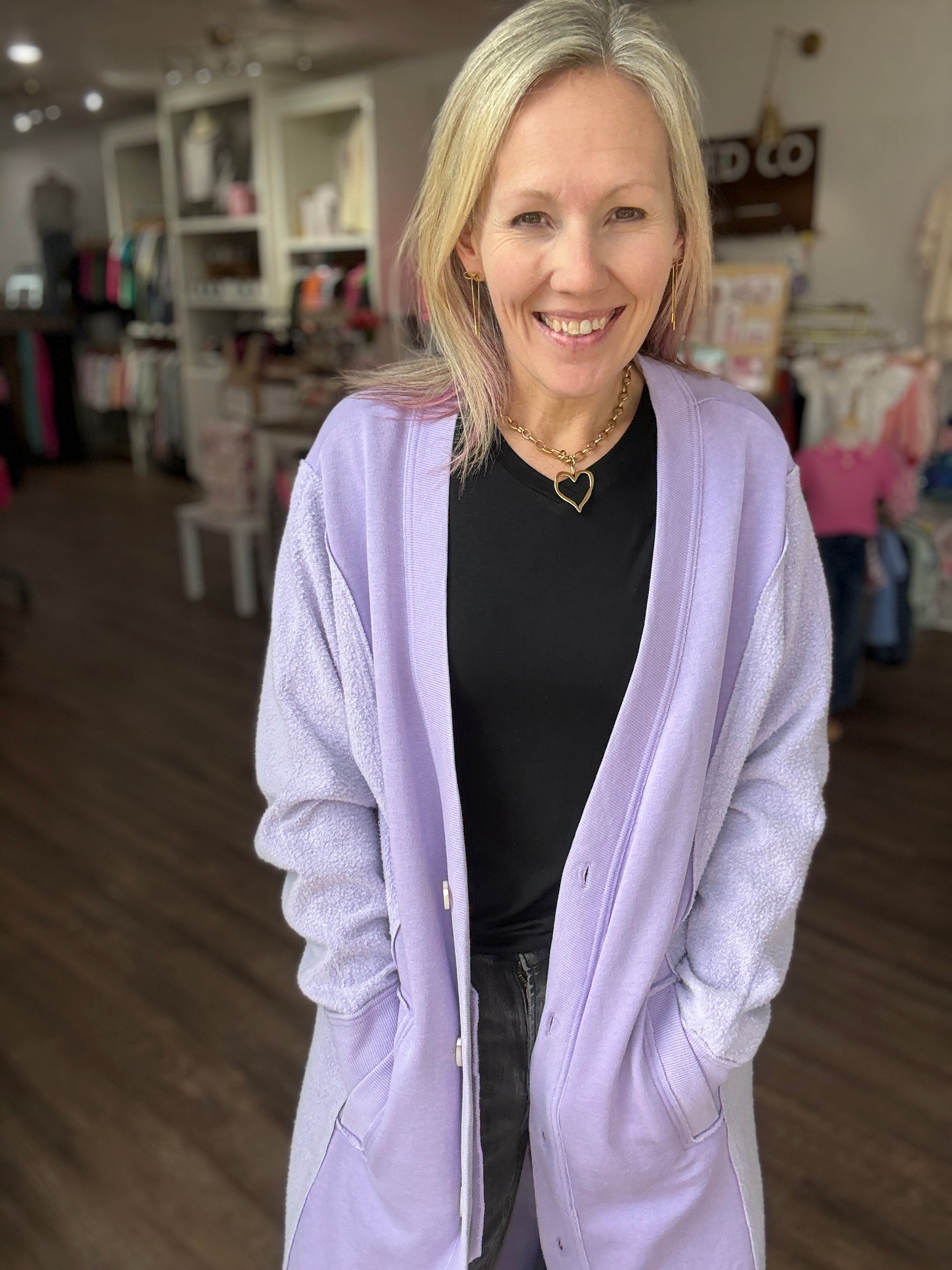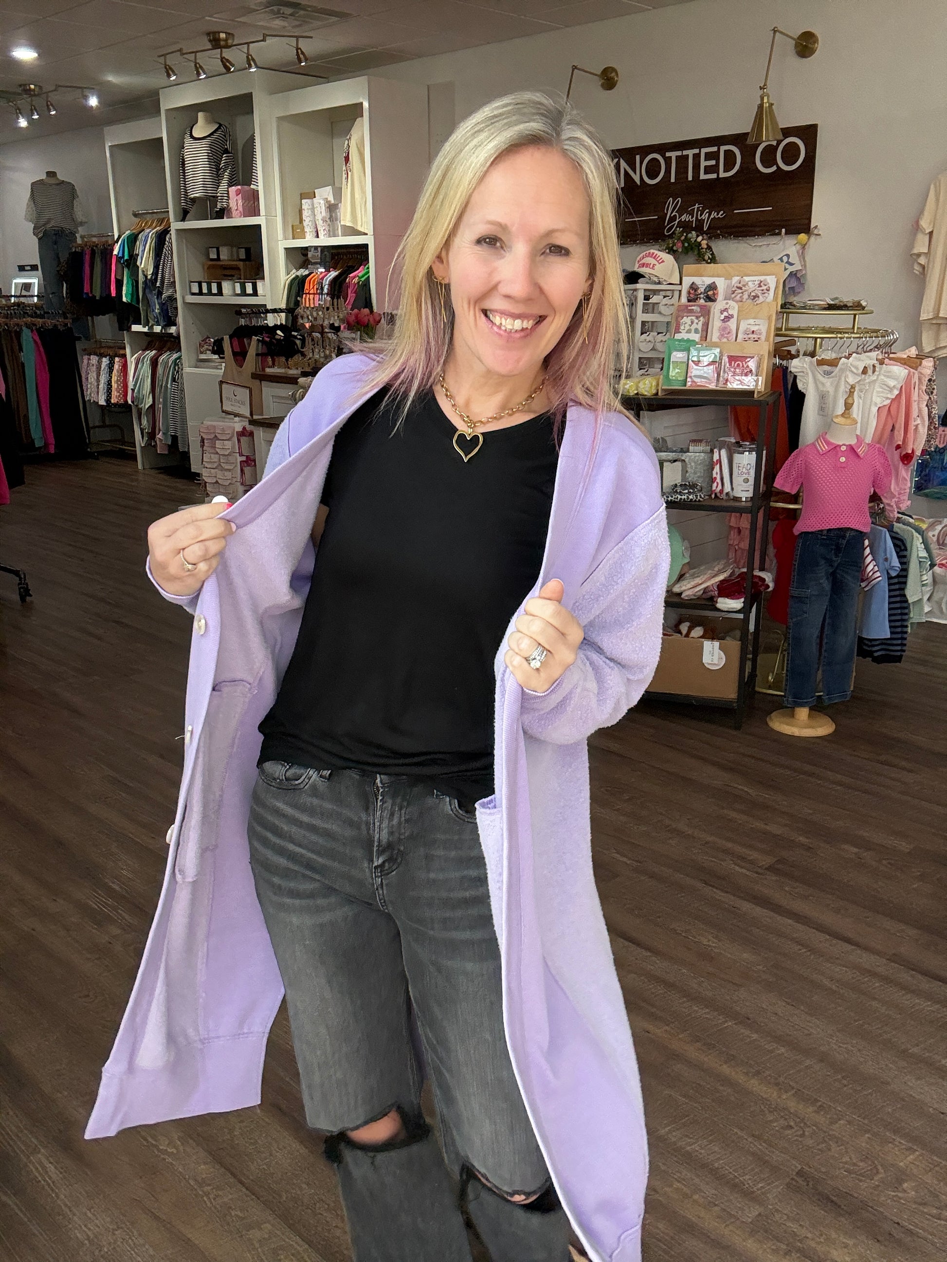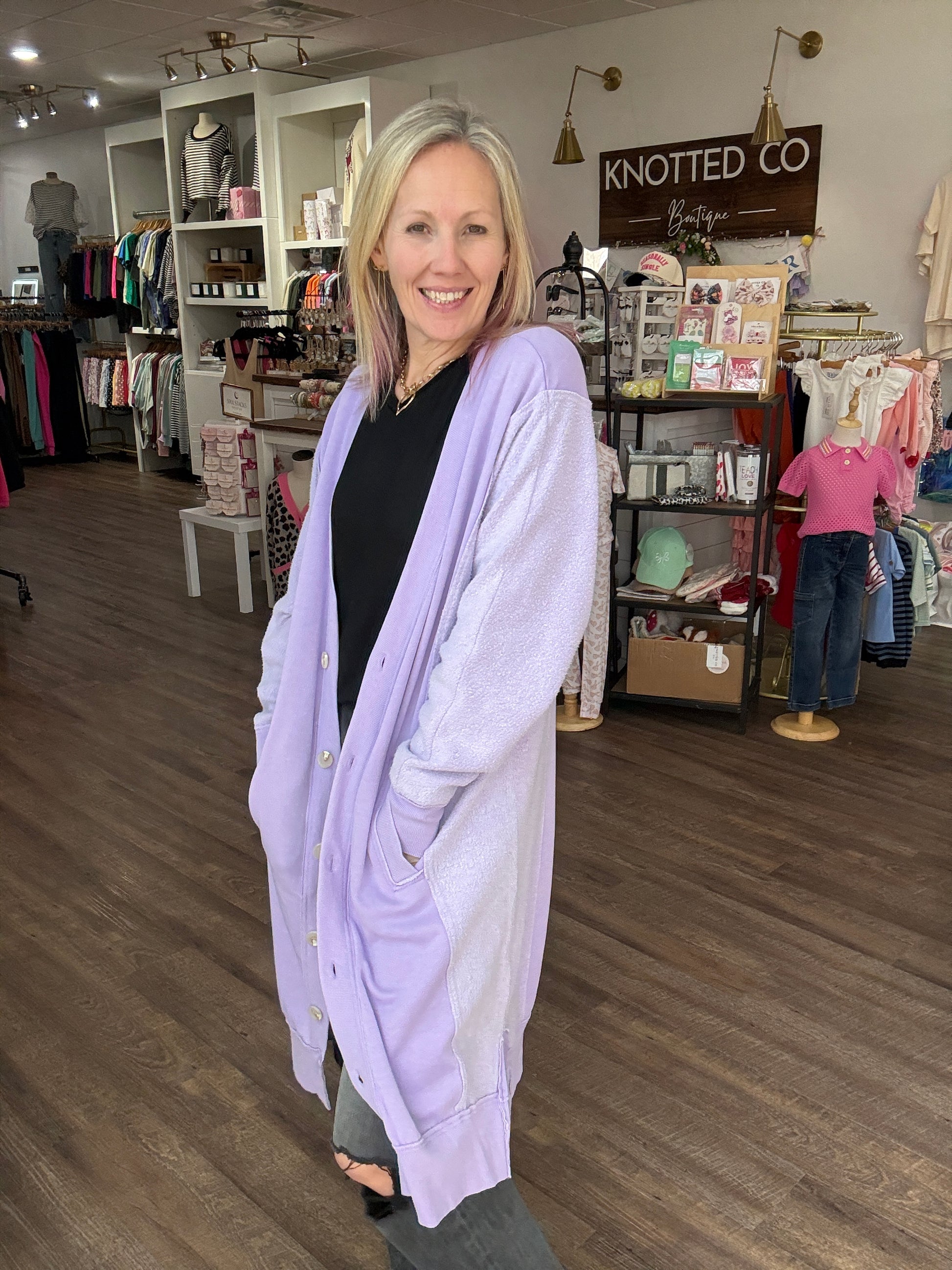 Perfect for chilly days, it’s equally at home curled up on the couch or layered over a cute tee and your favorite jeans for a polished, everyday outfit. The Friday Cardigan is where comfort meets elevated style — a true wardrobe essential.