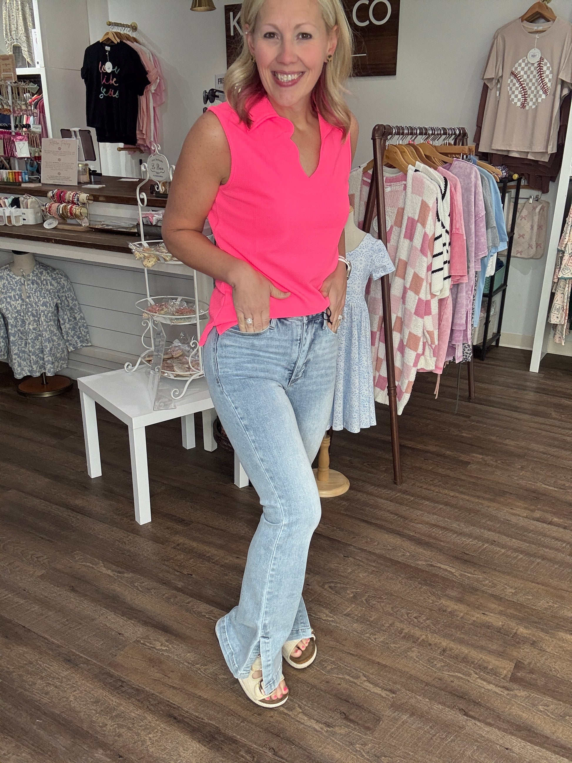 Step out in style with the Judy Blue “Side Step” Slim Bootcut Jeans—where vintage charm meets modern design. These light wash beauties feature a flattering high-rise fit (11") with built-in tummy control for a smooth silhouette and confident wear. The 32" inseam and subtle side slits at the hem add a fresh twist to the classic bootcut, perfect for showing off your favorite footwear.