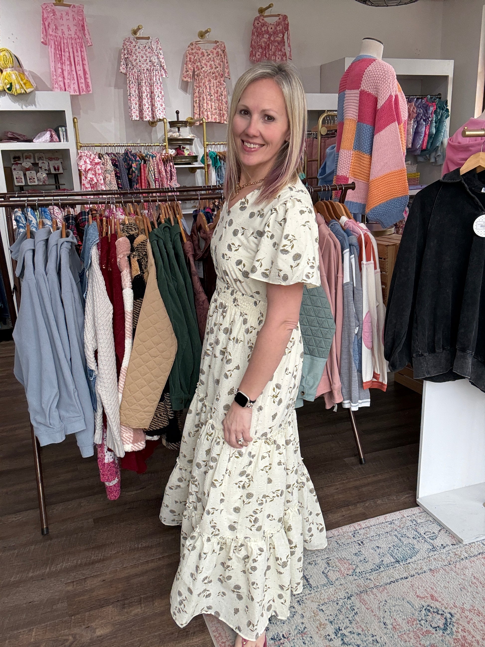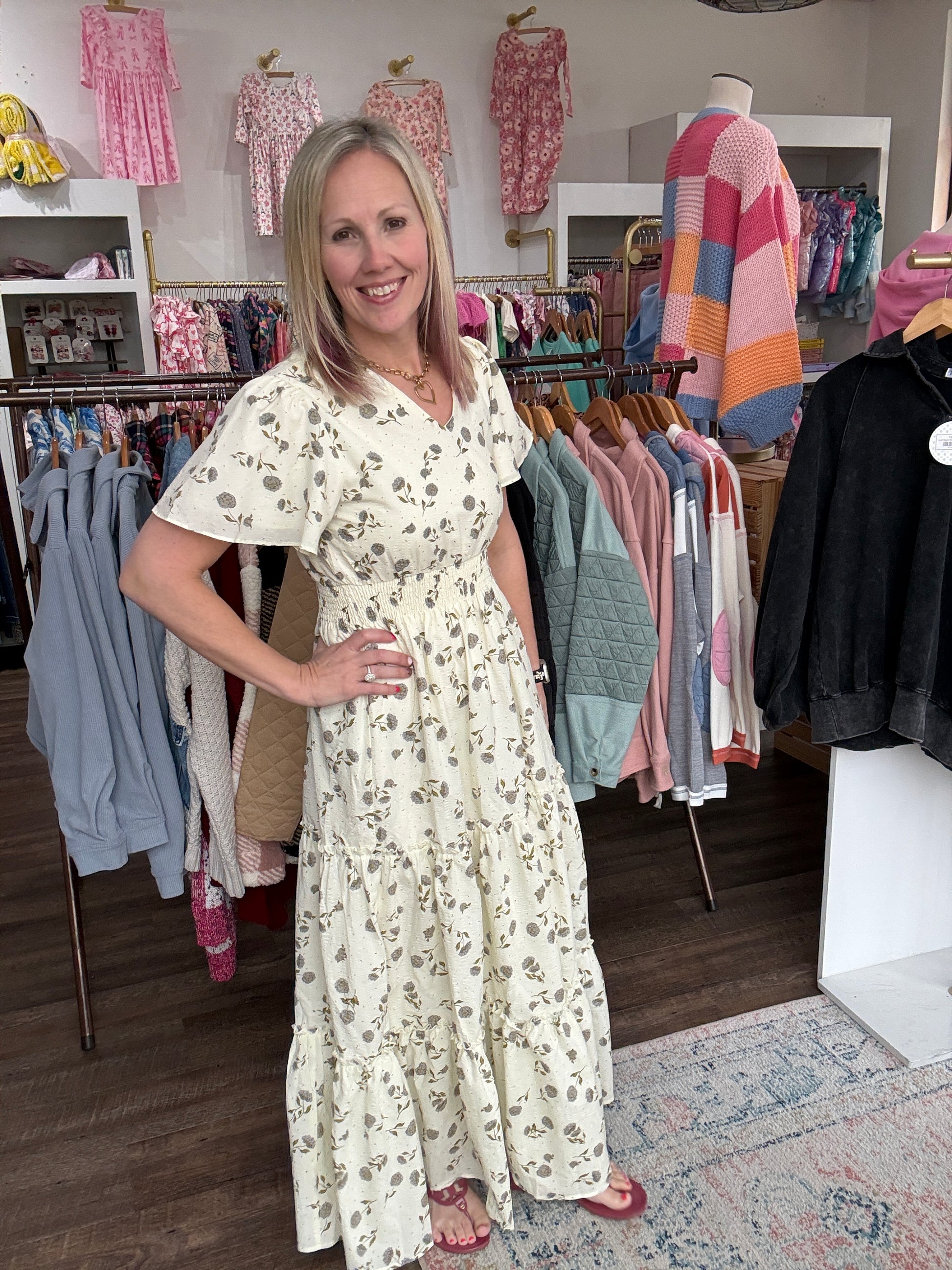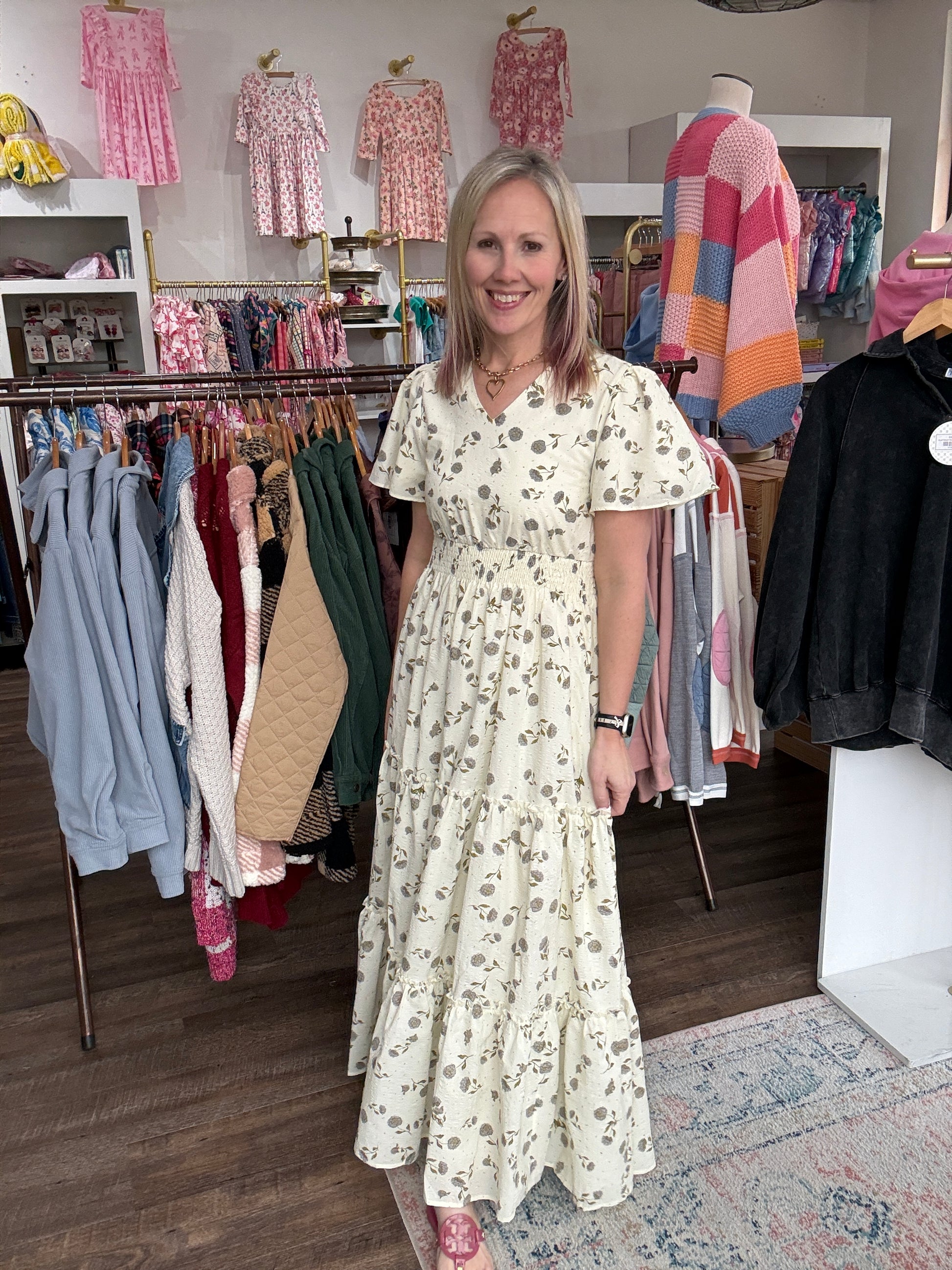 Soft, romantic, and effortlessly feminine — the Lavender Hydrangea Dress is made for easy spring days and special moments alike. Designed with a flattering elastic waist and flowy full-length silhouette, this dress moves beautifully and feels as comfortable as it looks.