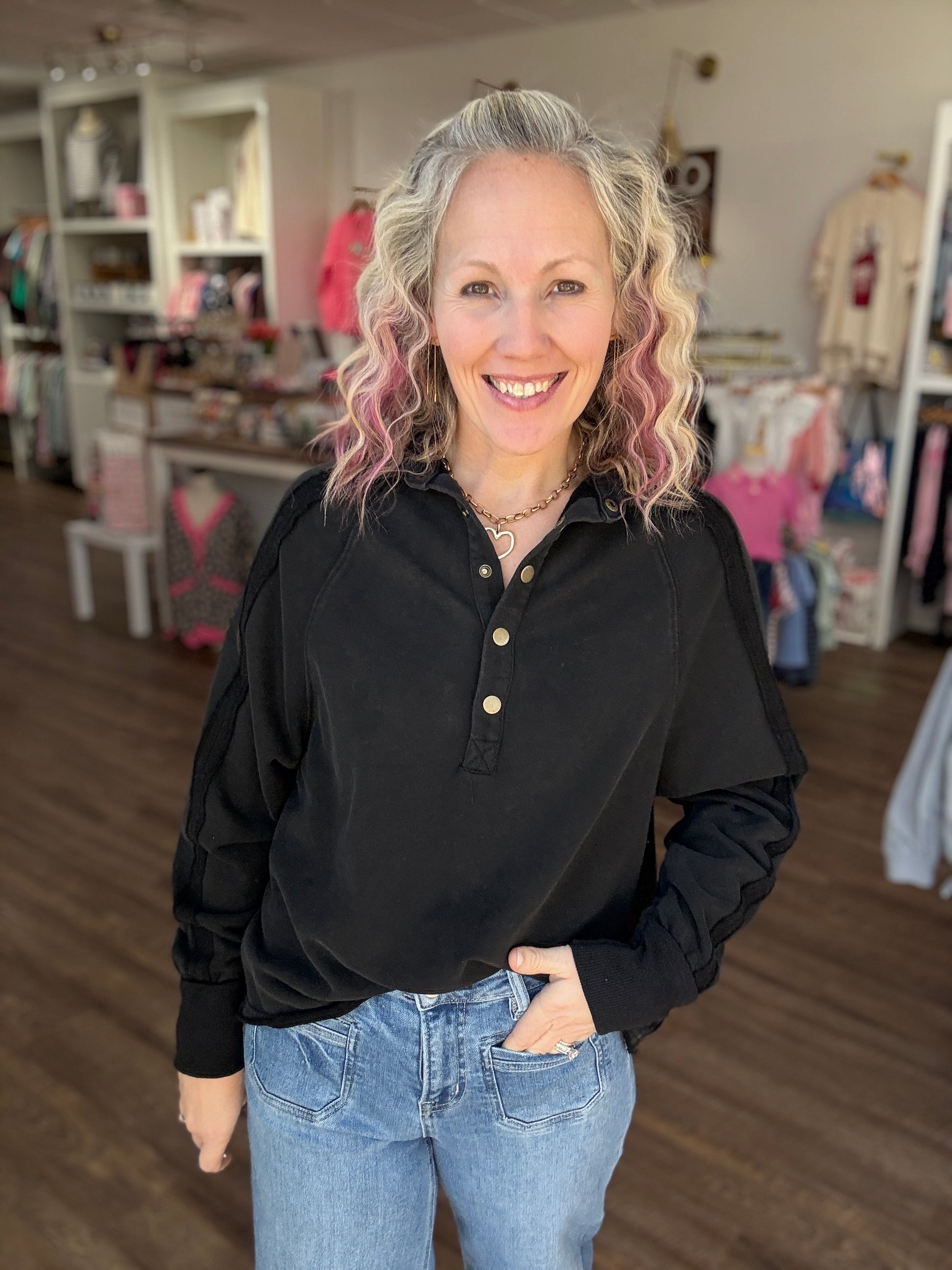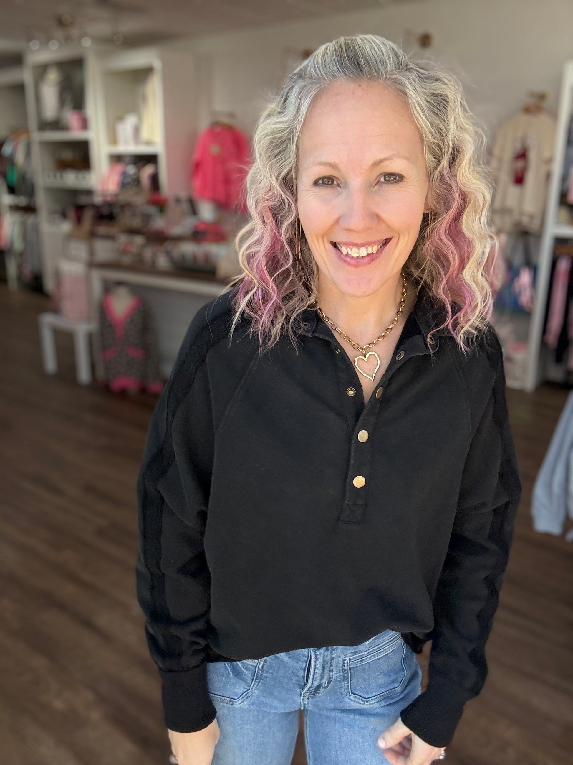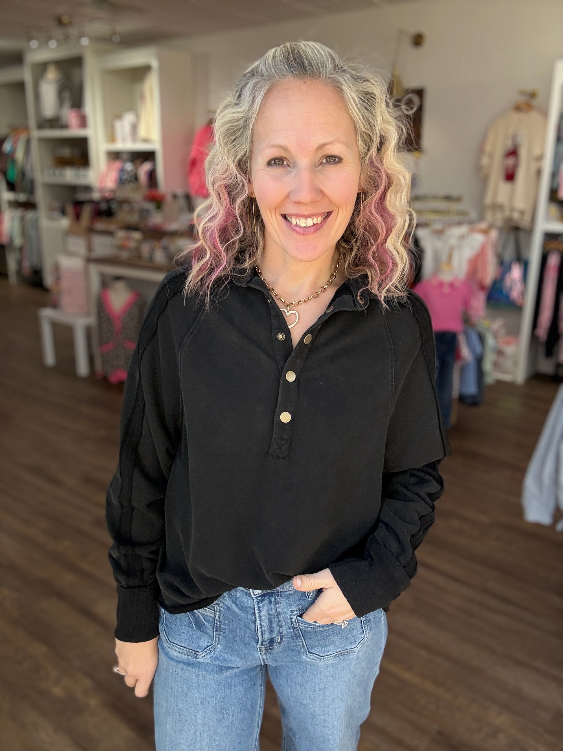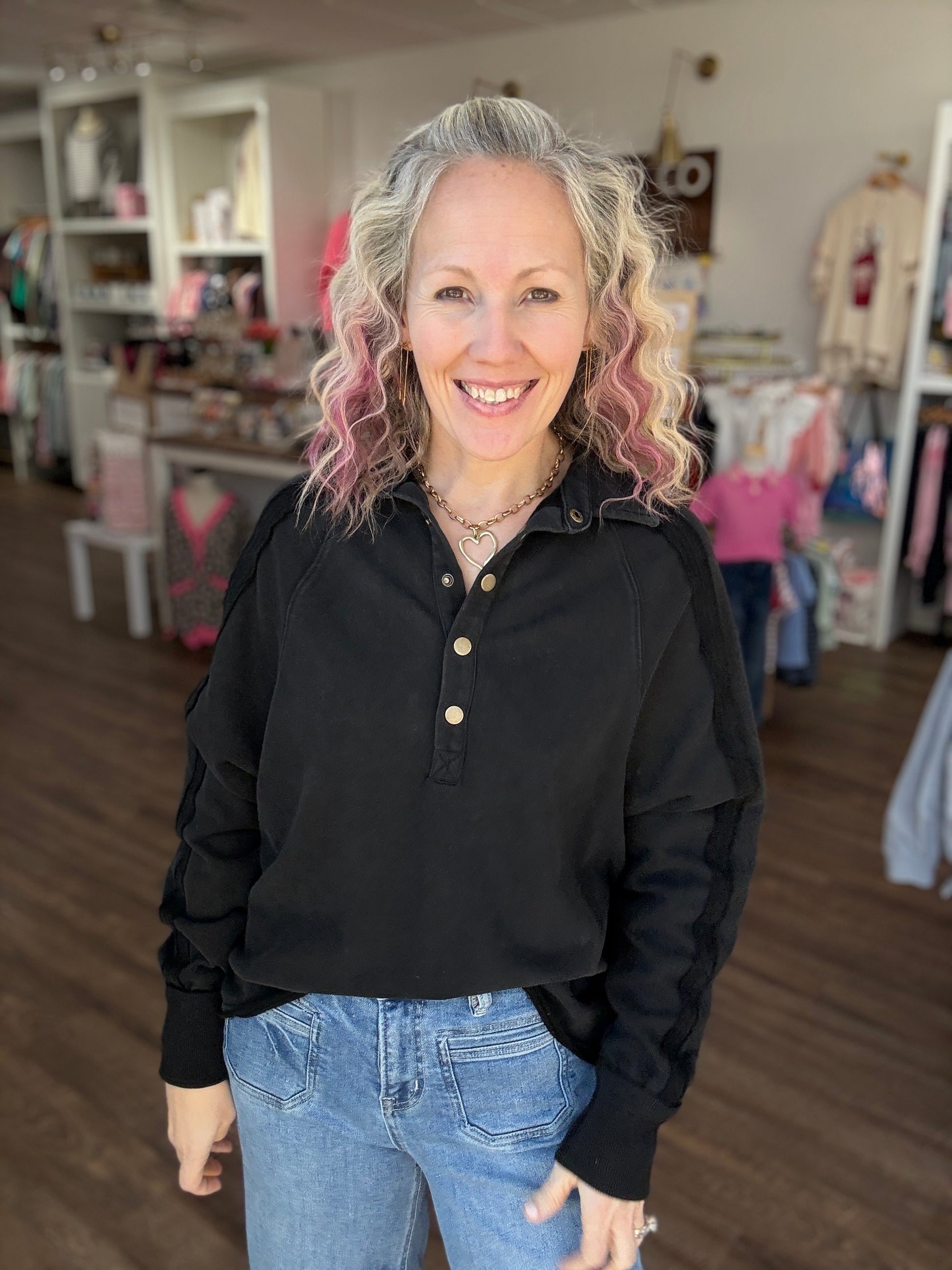 Marley Snap Sweatshirt- Black