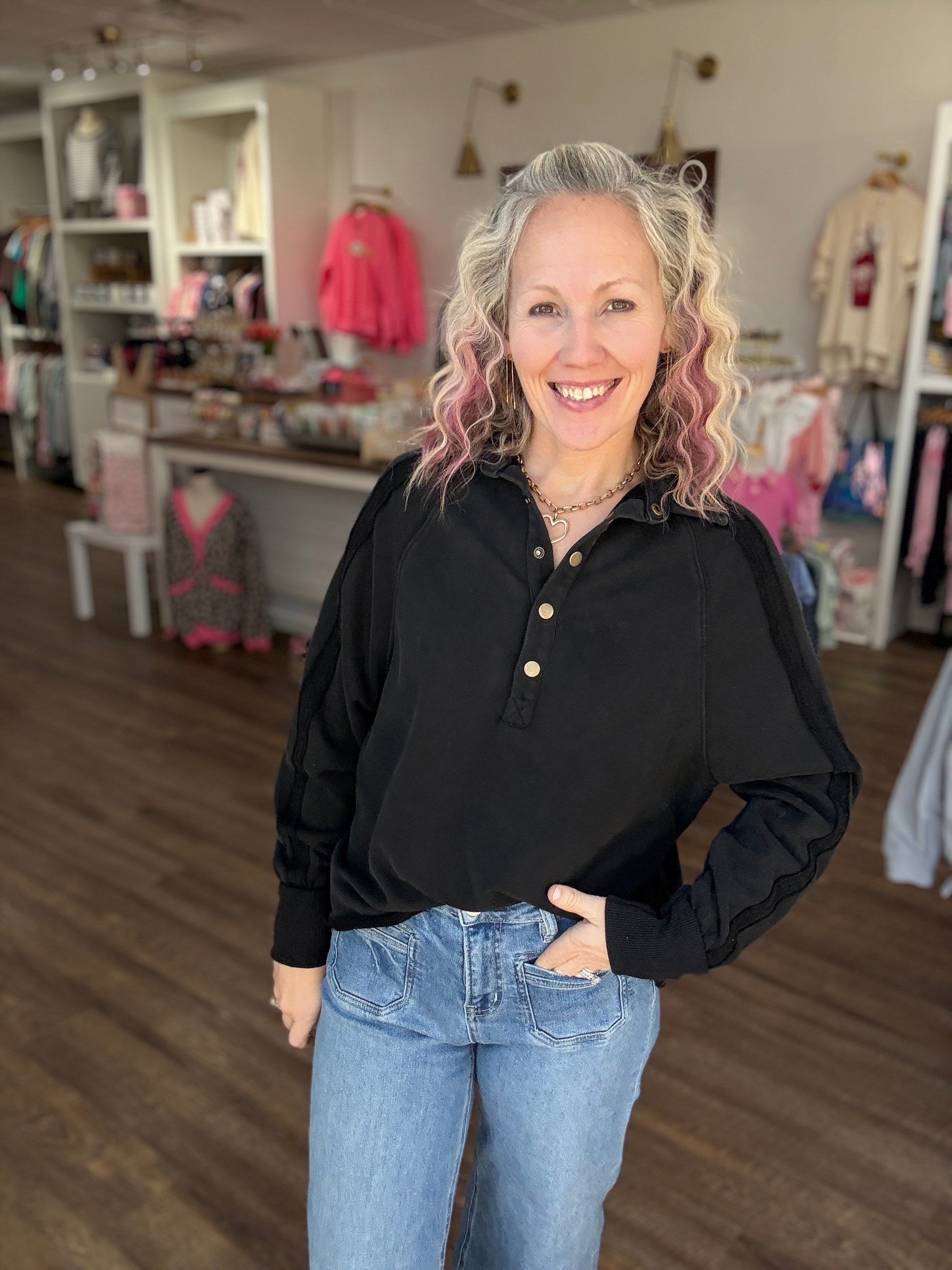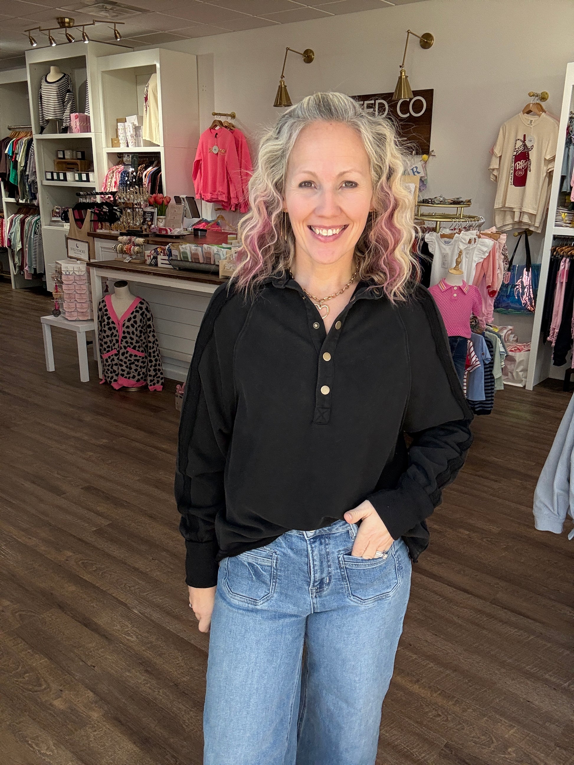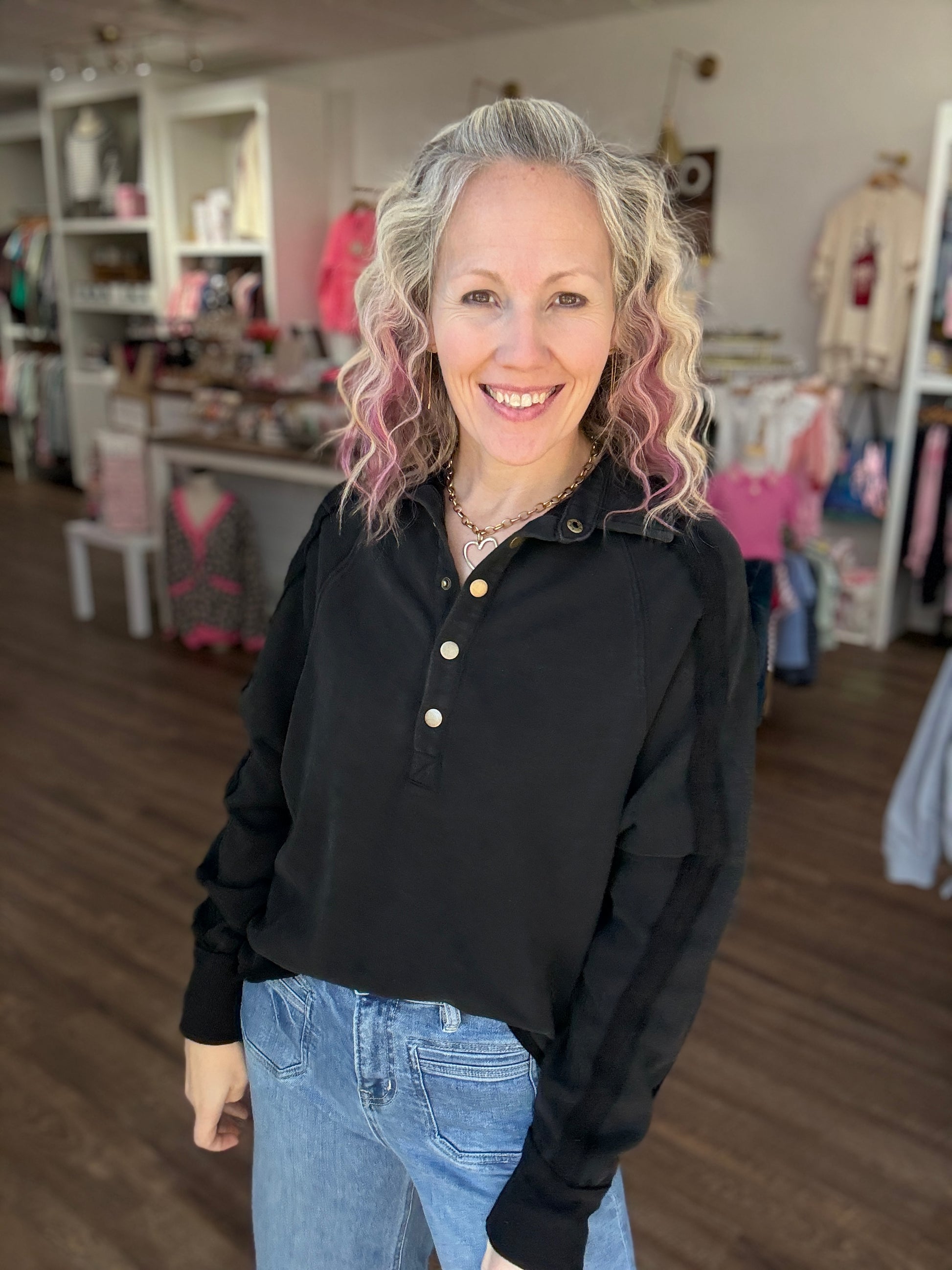 Marley Snap Sweatshirt- Black