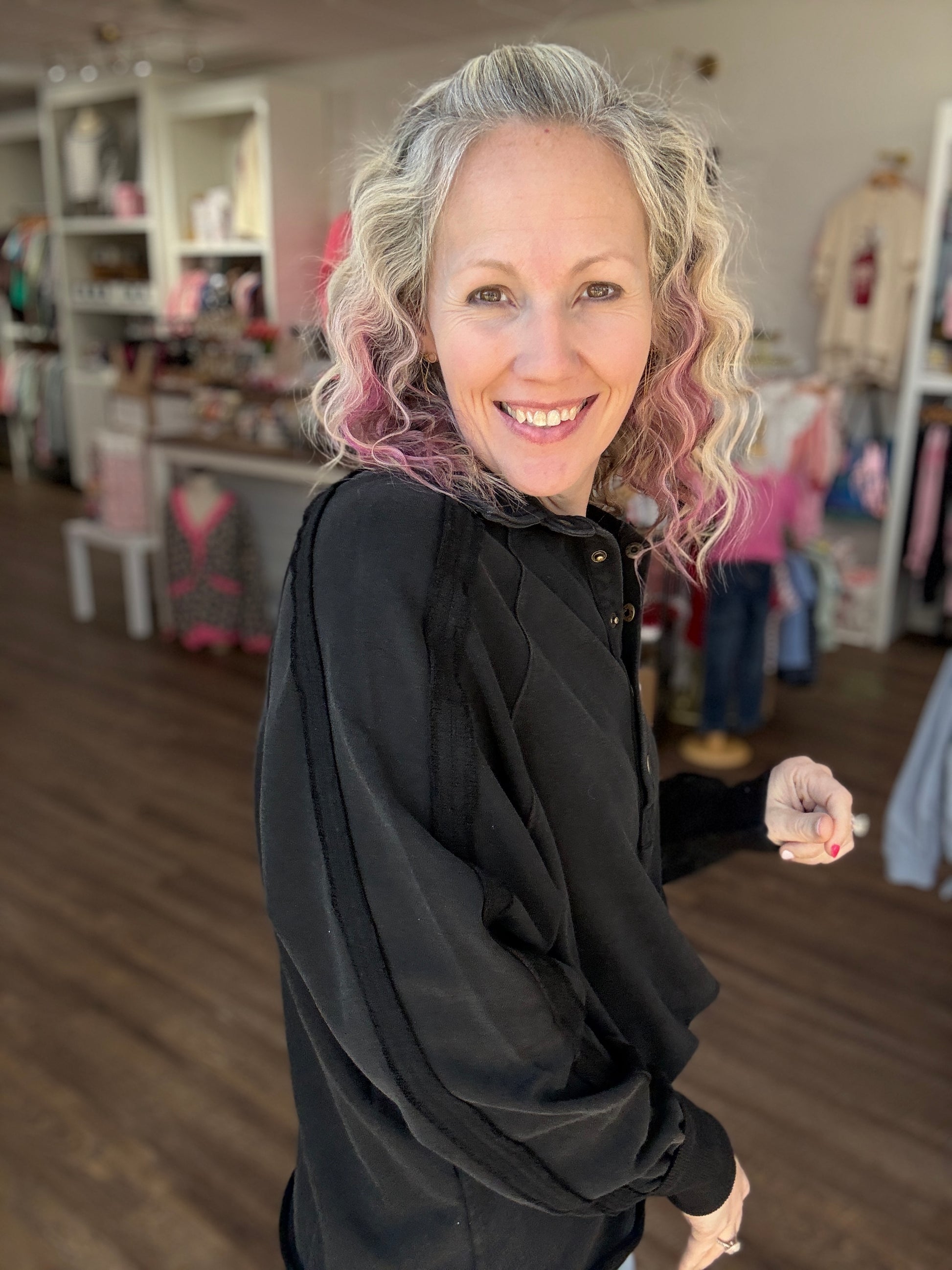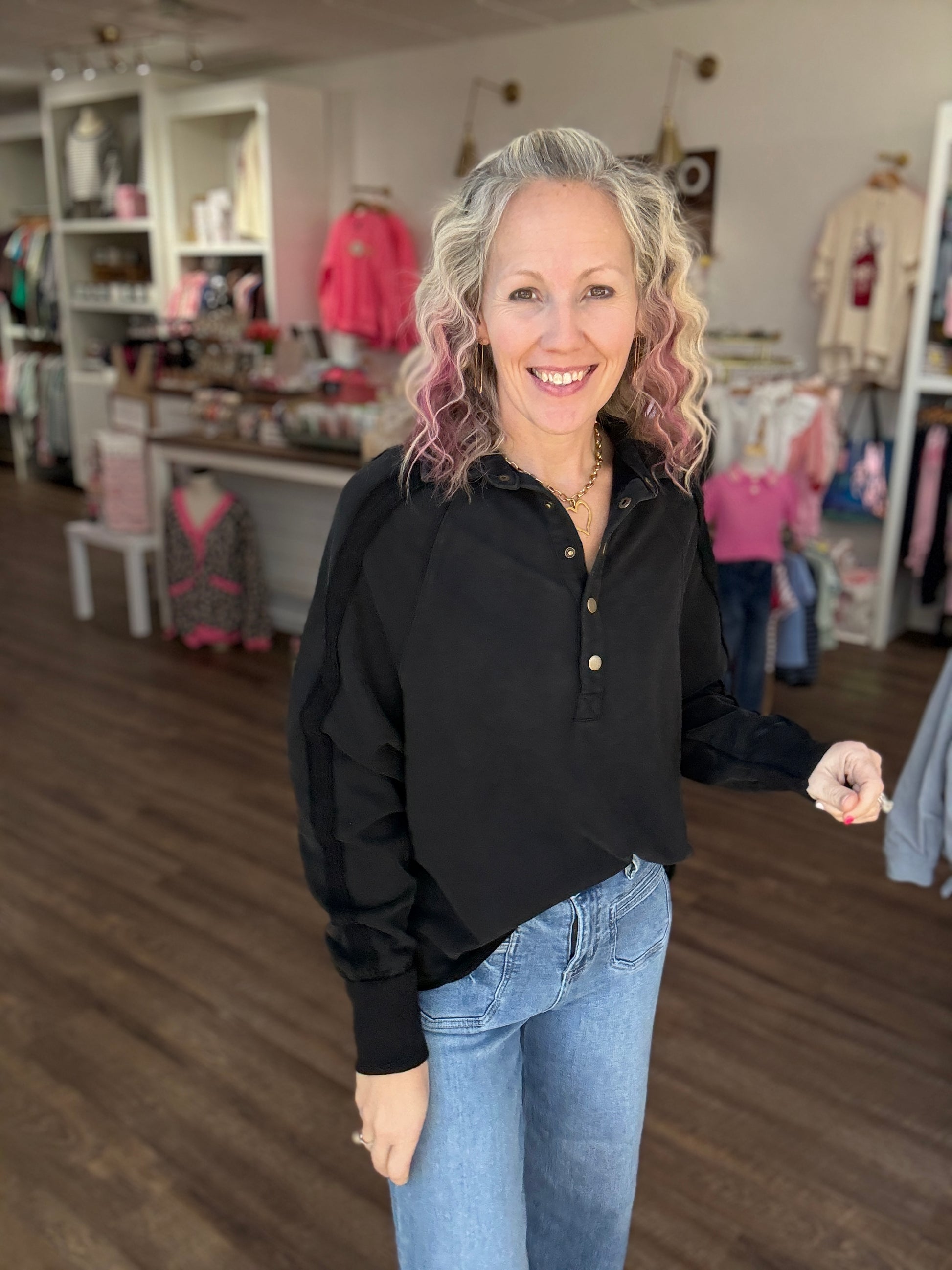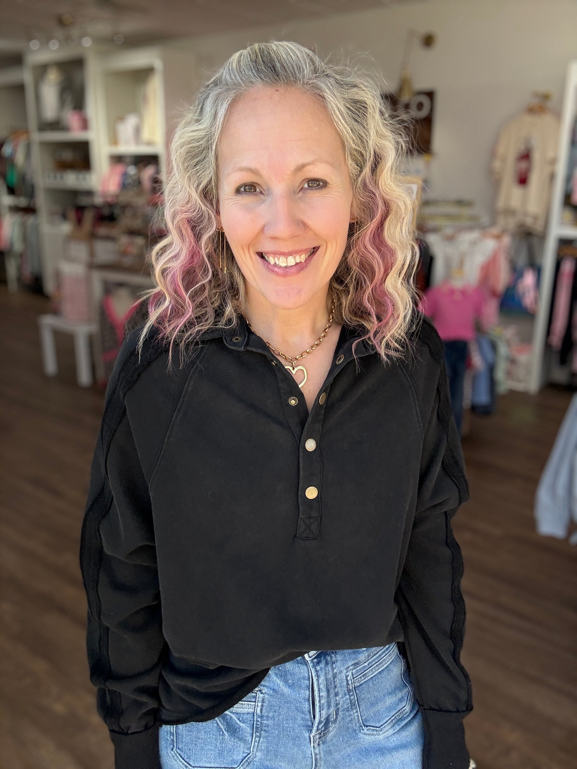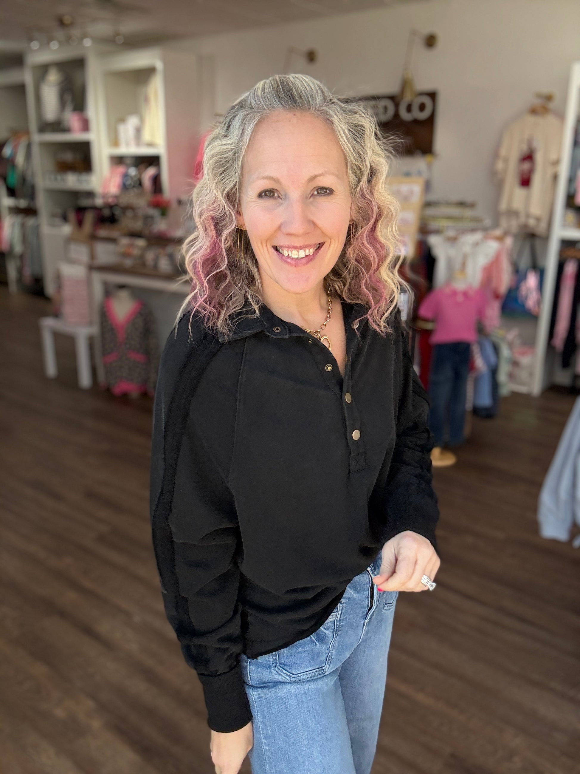 Marley Snap Sweatshirt- Black