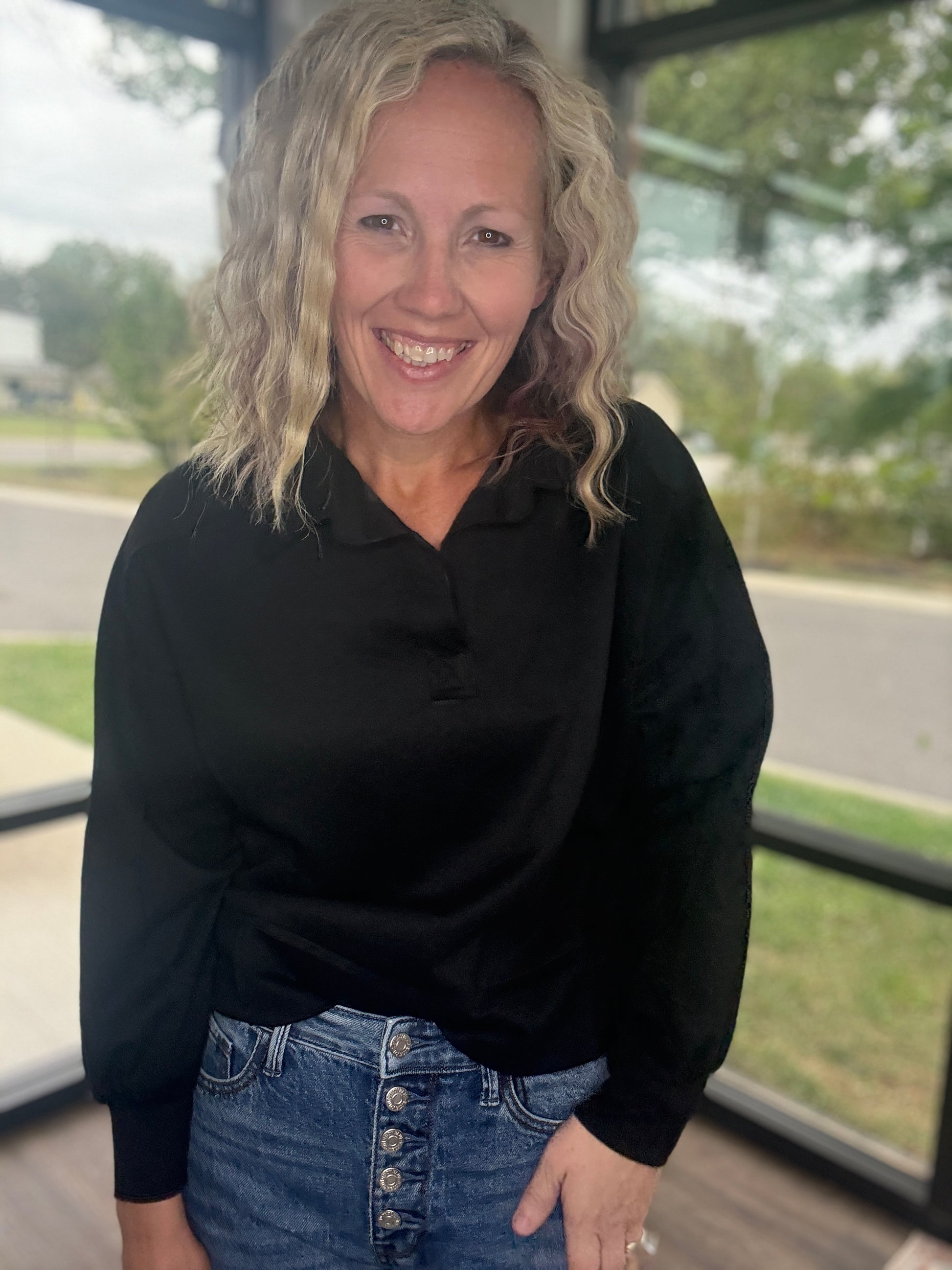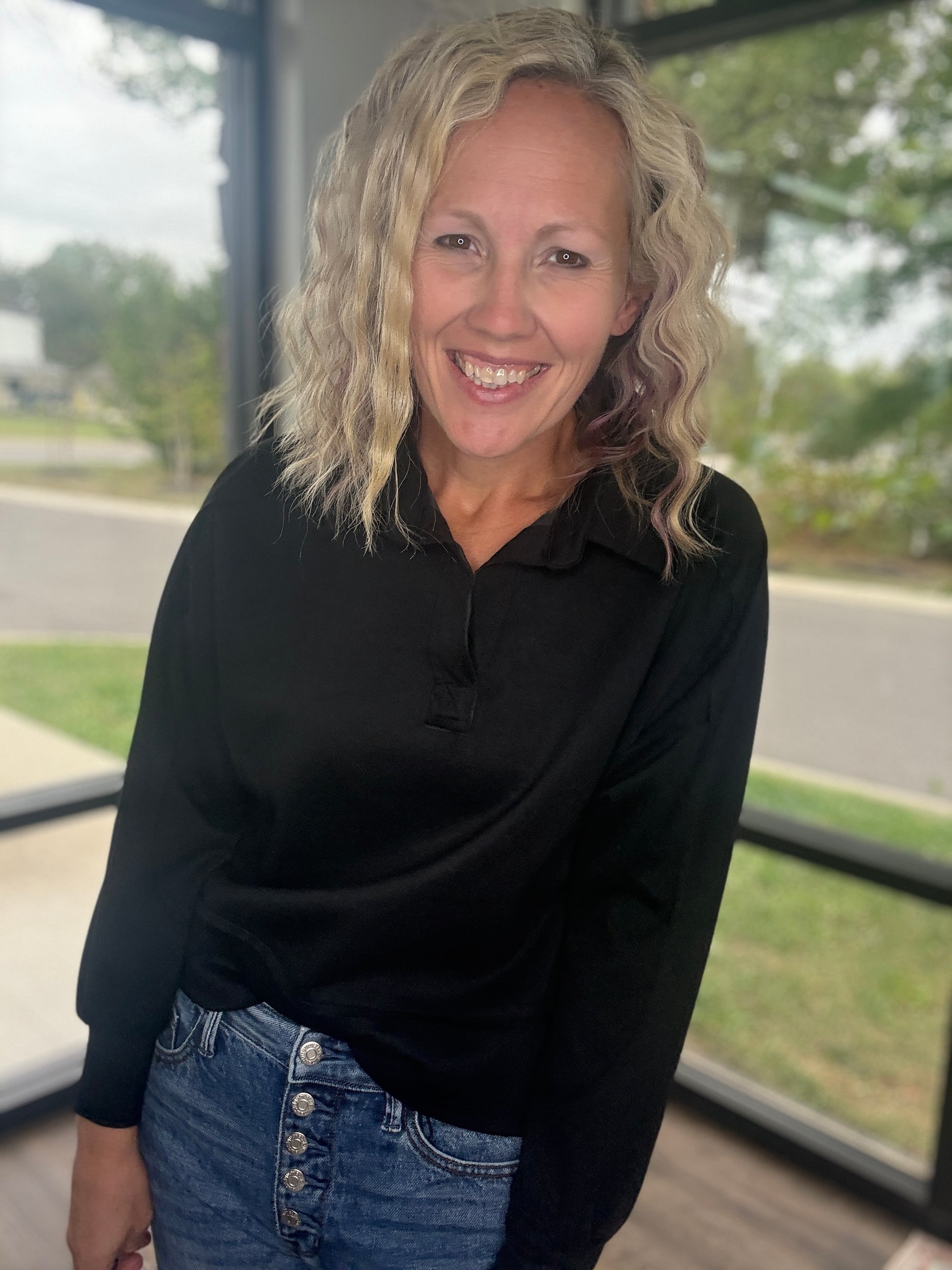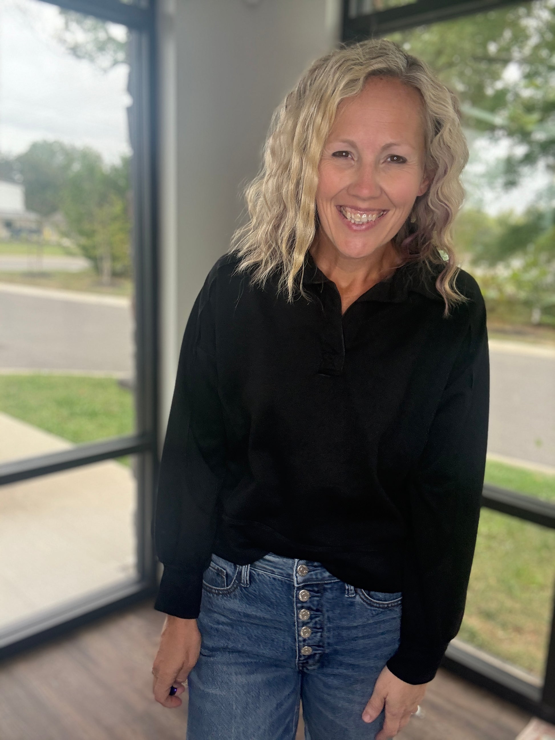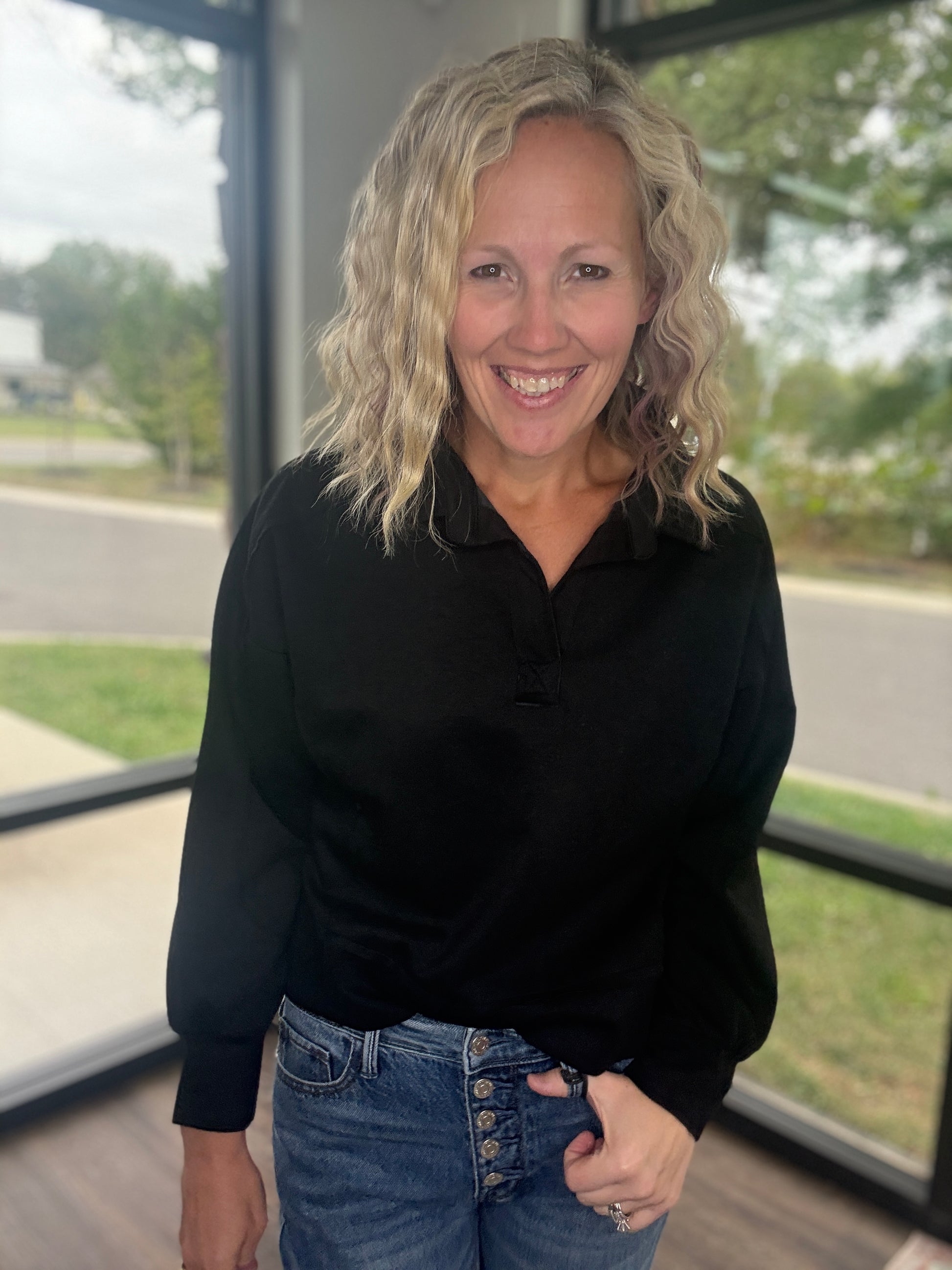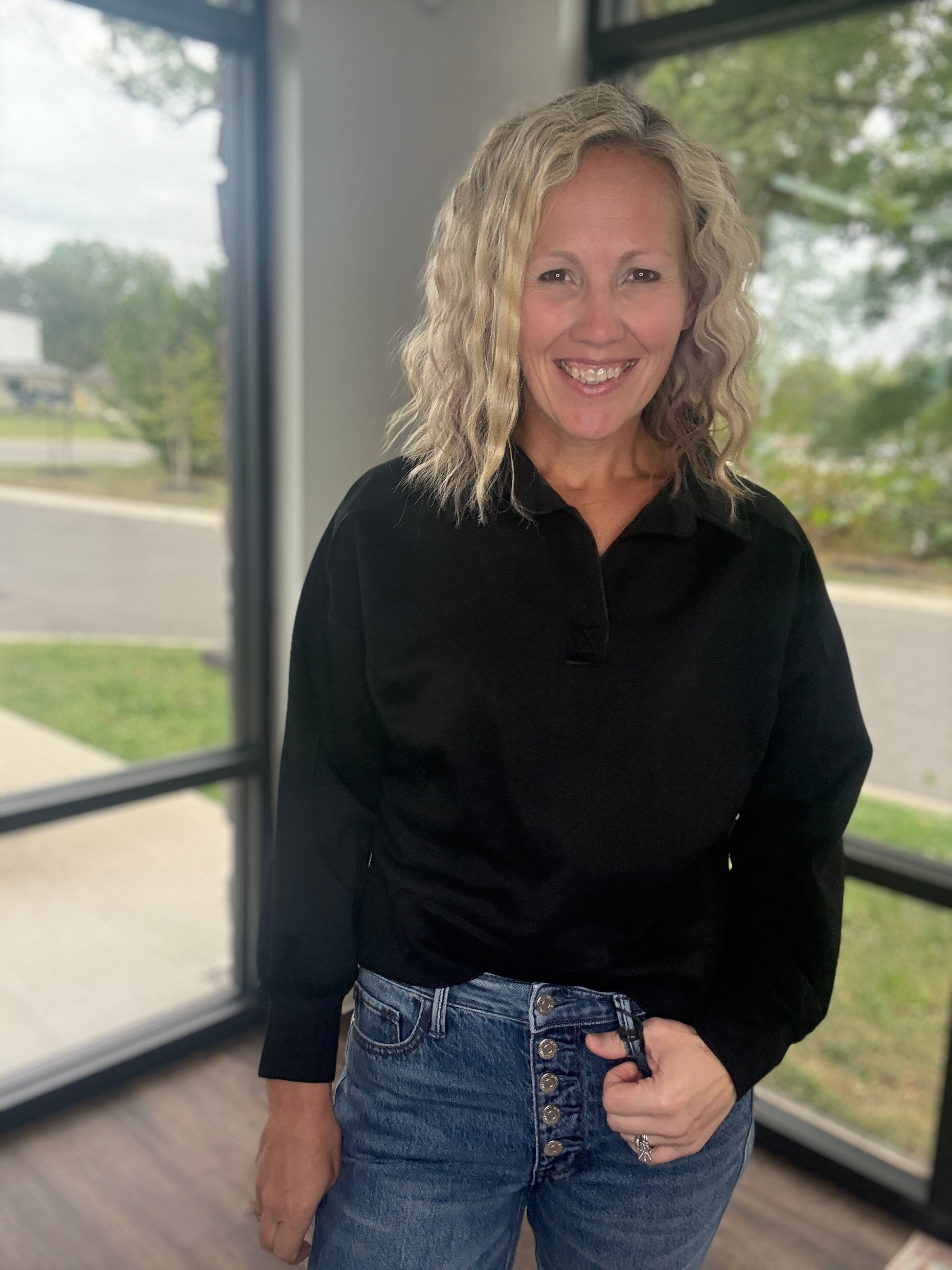 Soft, cozy, and effortlessly chic, the Midnight Ease Sweatshirt is your new go-to for everyday comfort. Crafted from buttery-soft luxeknit material, it features a relaxed, loose-fit polo style that pairs perfectly with jeans, joggers, or layered under a jacket. Casual yet polished, this sweatshirt brings elevated ease to your wardrobe, making it a versatile staple for lounging or stepping out in style.