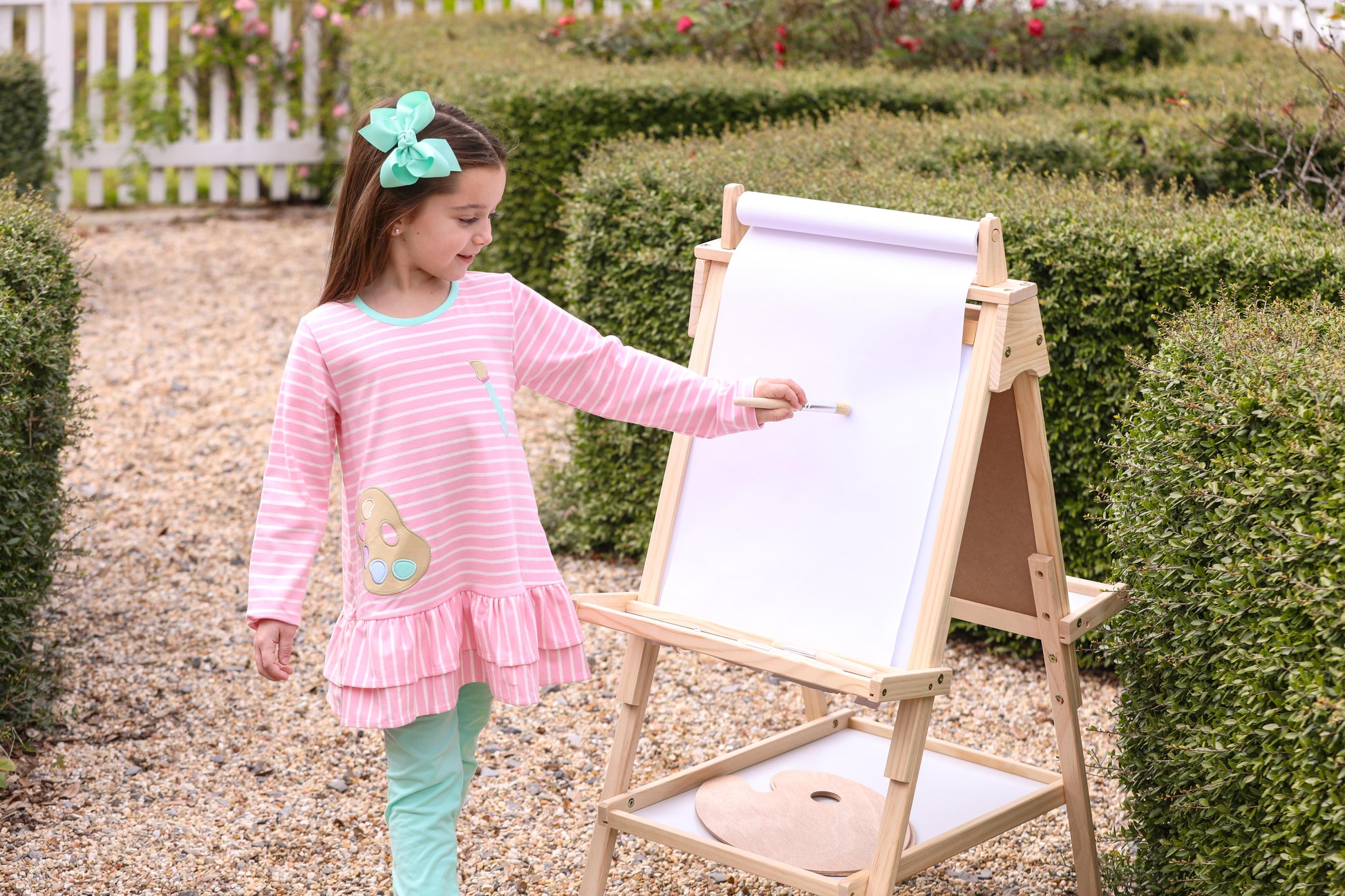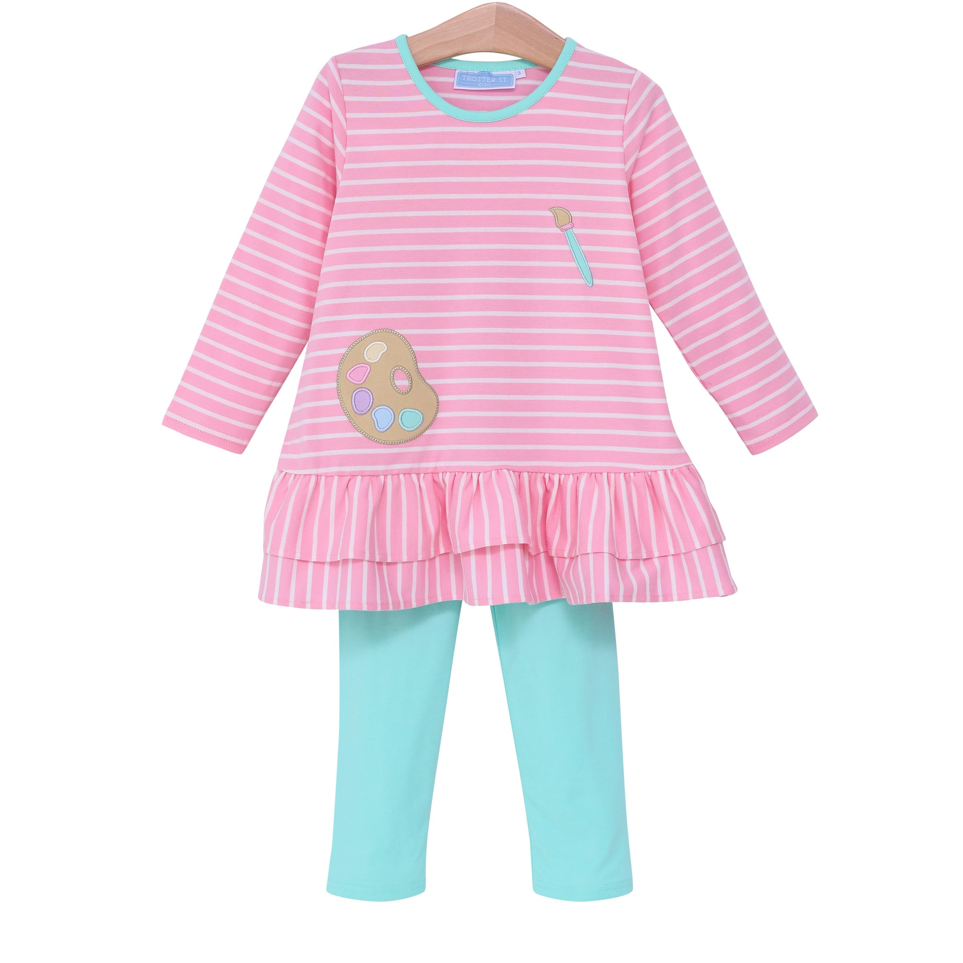 The softest knit fabric in an adorable paint palette. Comes as a set with coordinating aqua leggings.