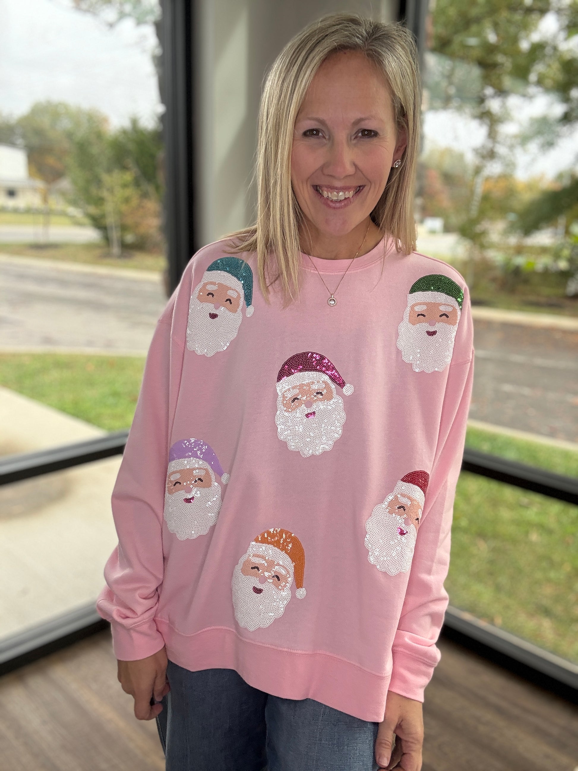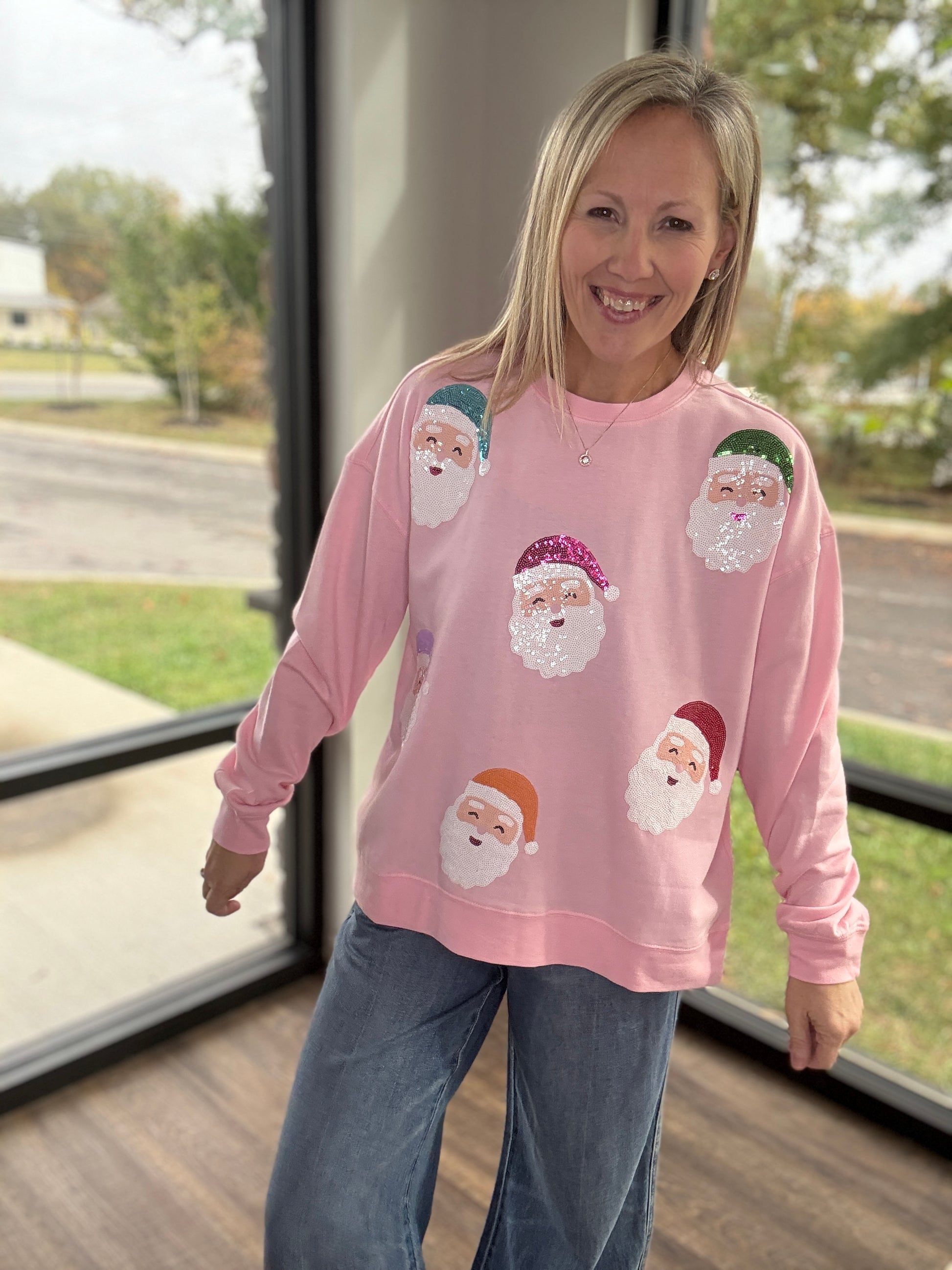 This eye-catching cotton blend sweatshirt is designed to bring festive cheer to your wardrobe with its dazzling allover sequin icons. The ribbed sleeve openings and hem provide a comfortable and snug fit, ensuring you stay cozy and stylish throughout the season.