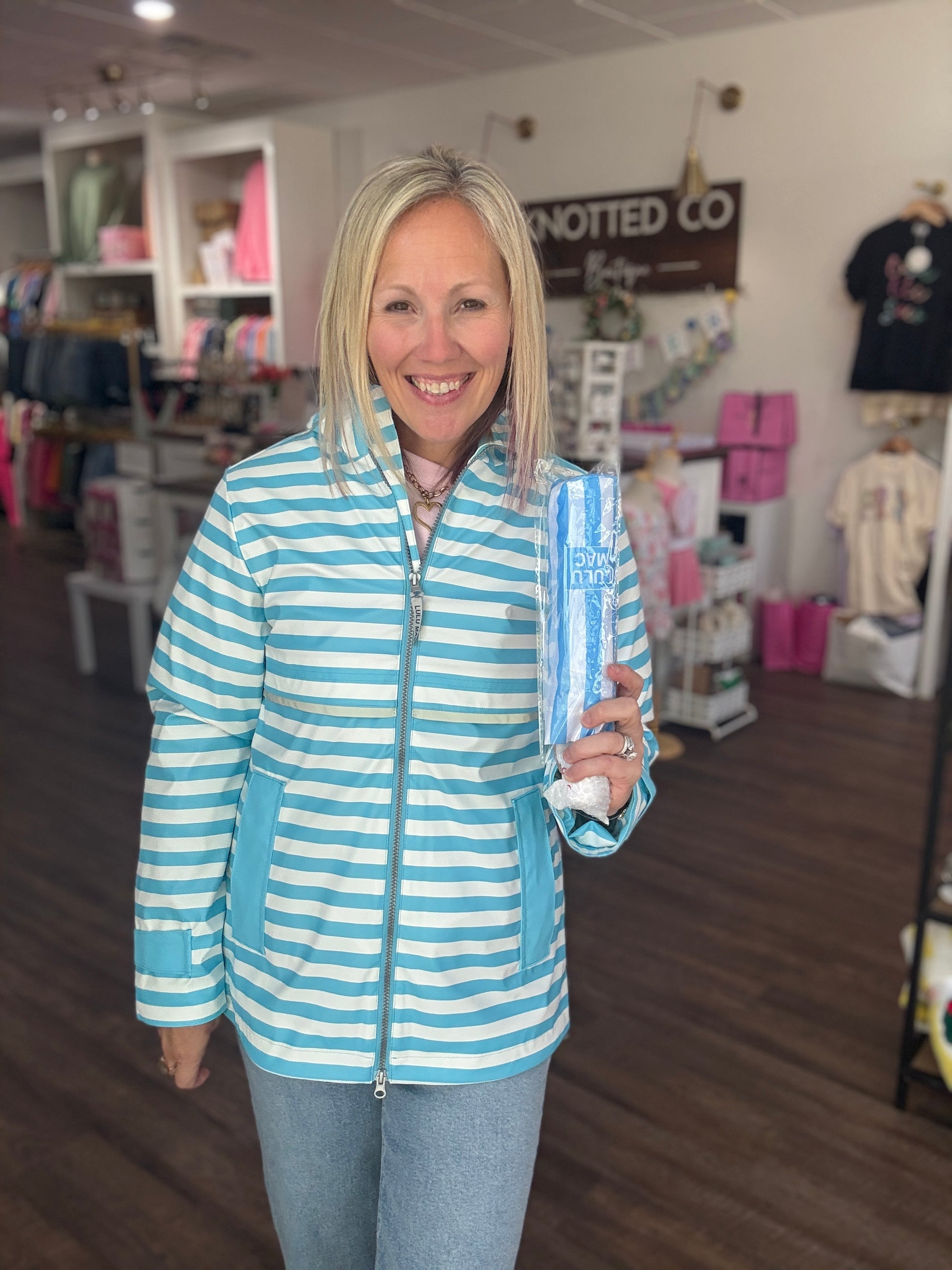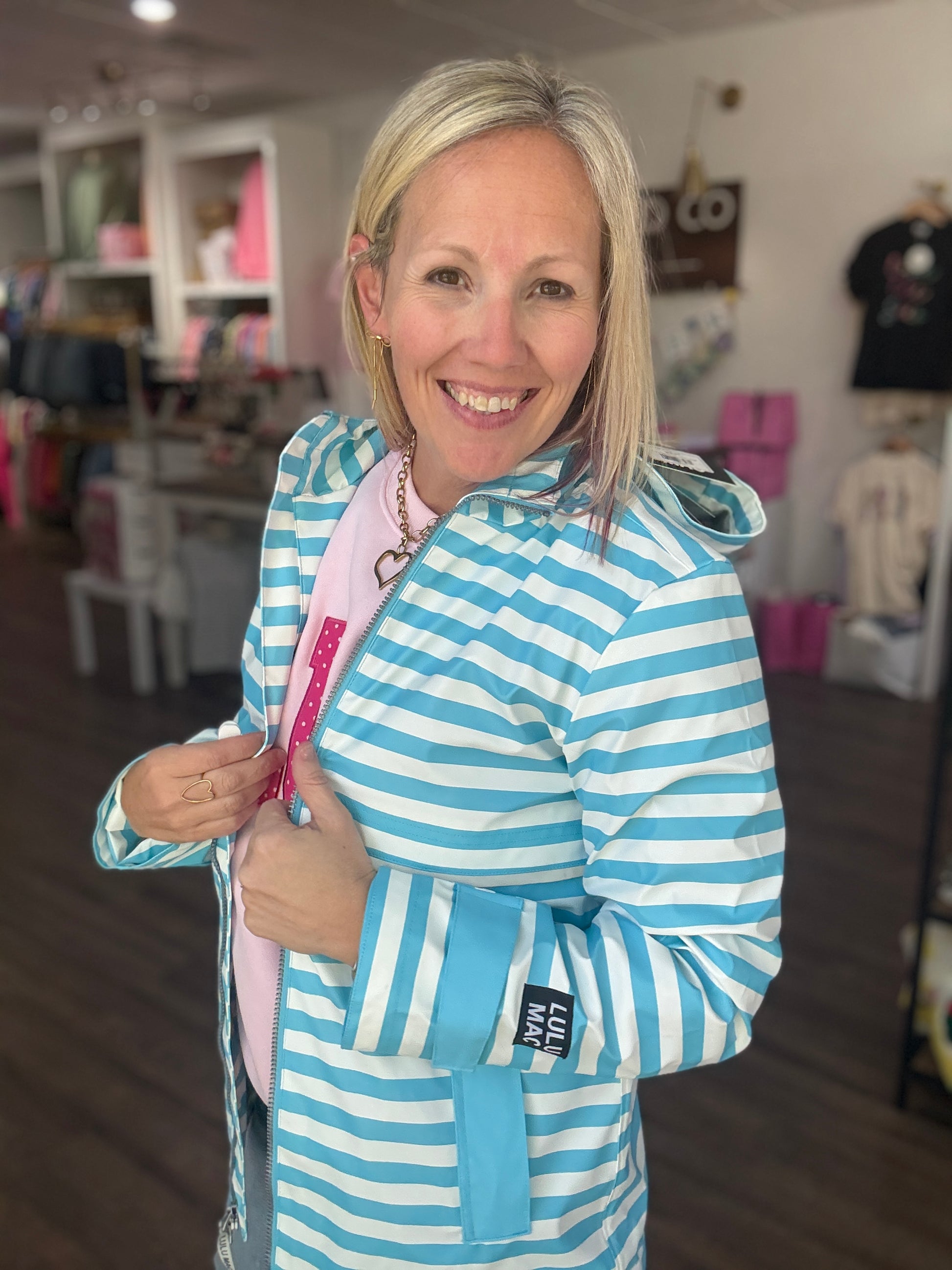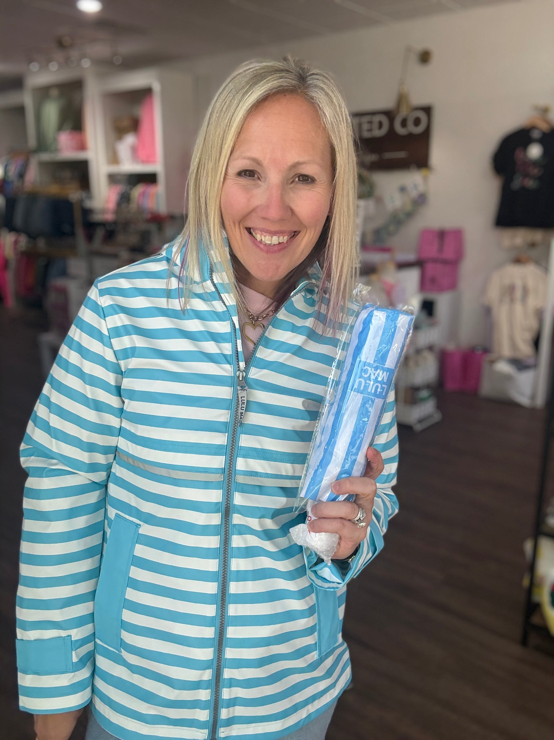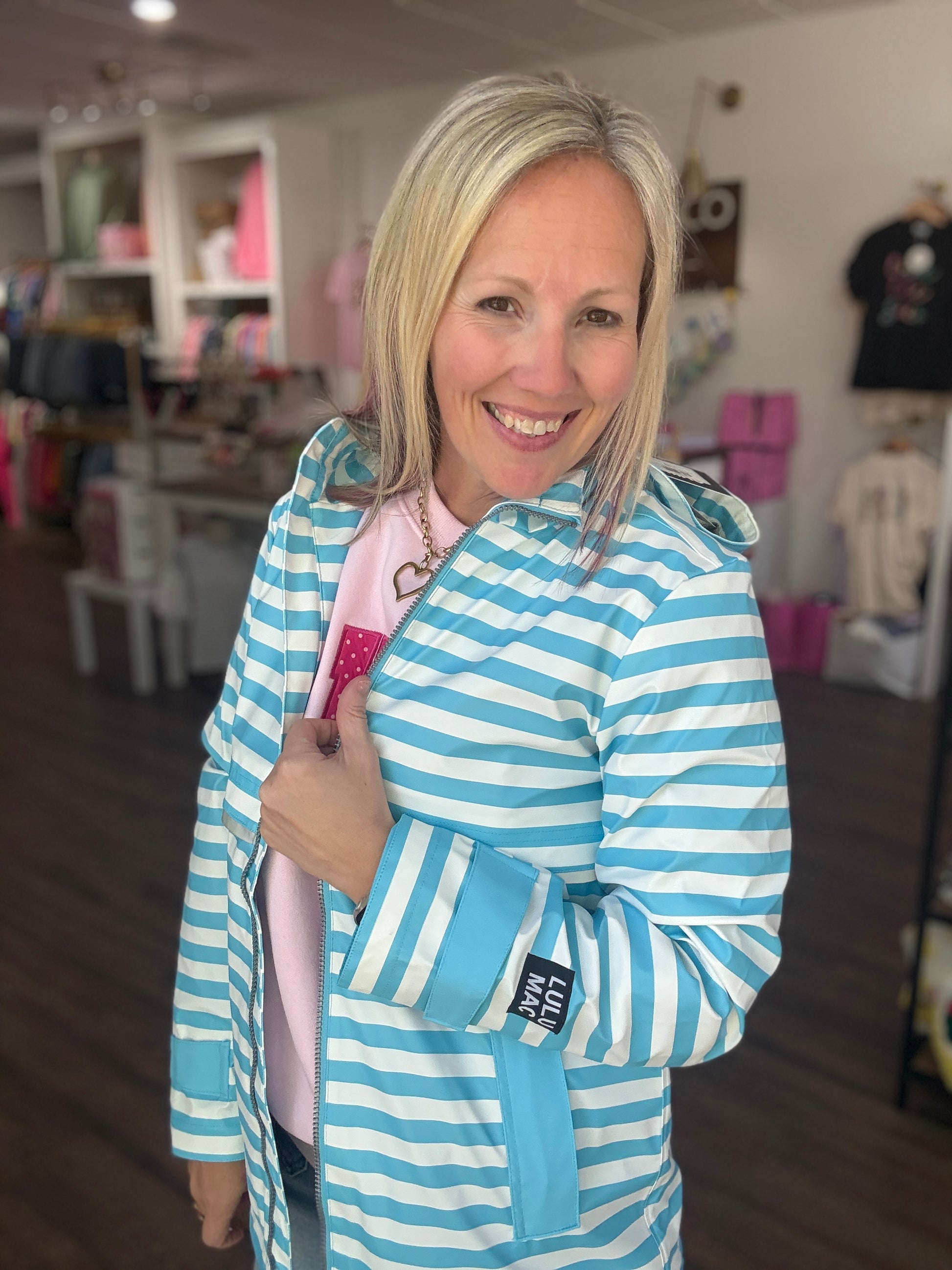 Don’t let a little rain slow you down—meet the Rainy Day Darling Lulu Mac Jacket. Designed in classic blue and white stripes, this lightweight layer brings the perfect mix of function and boutique style.