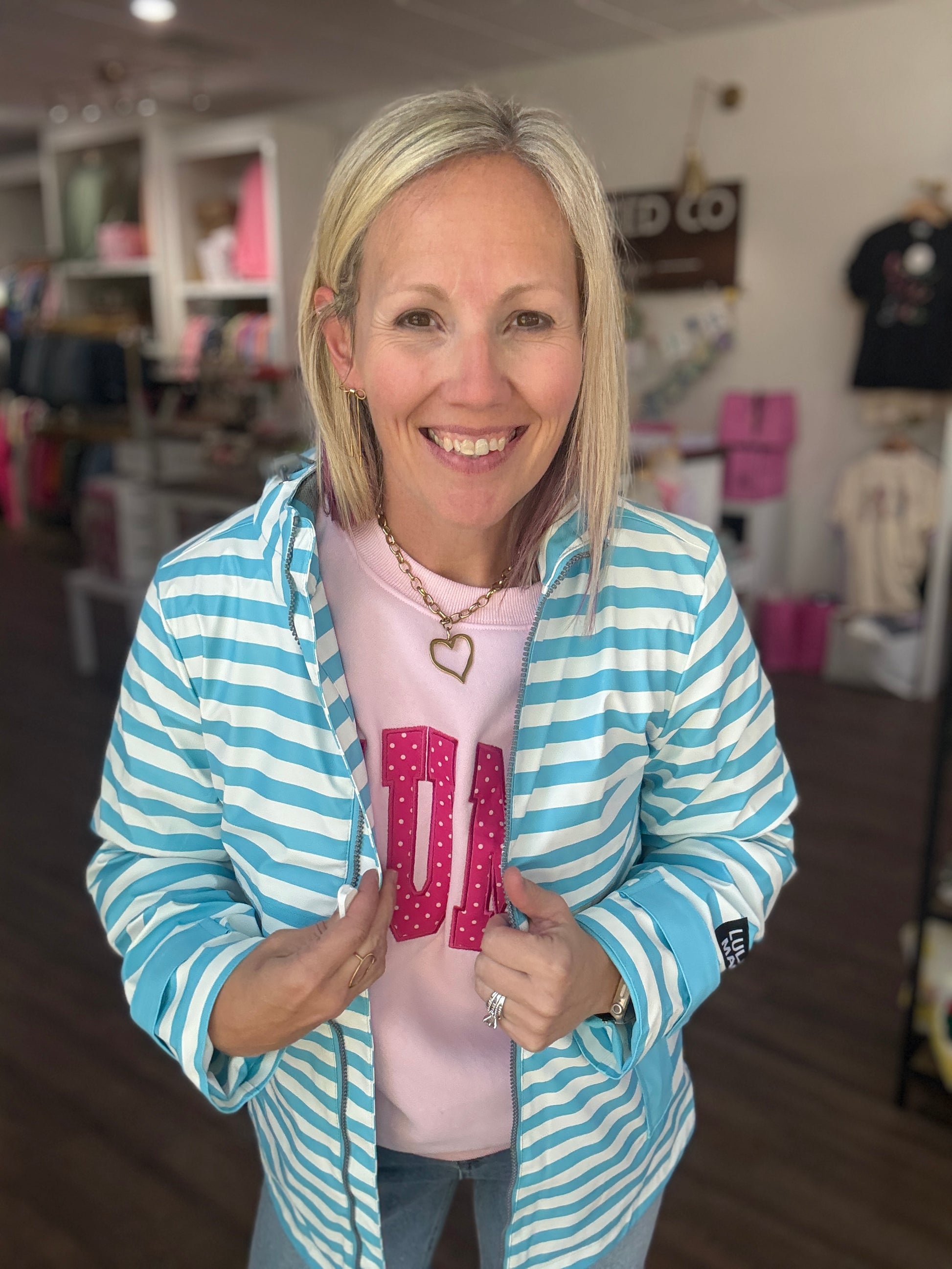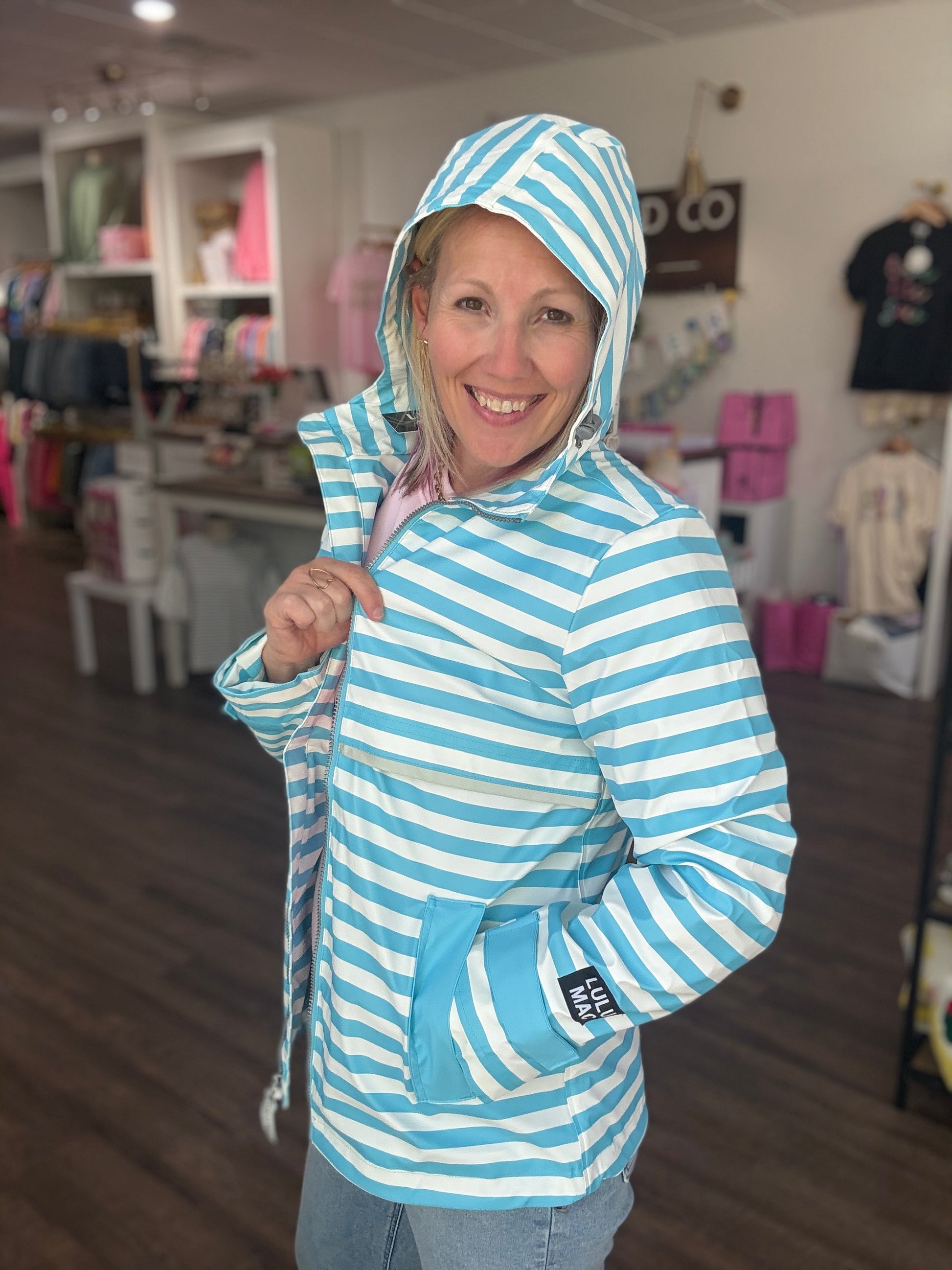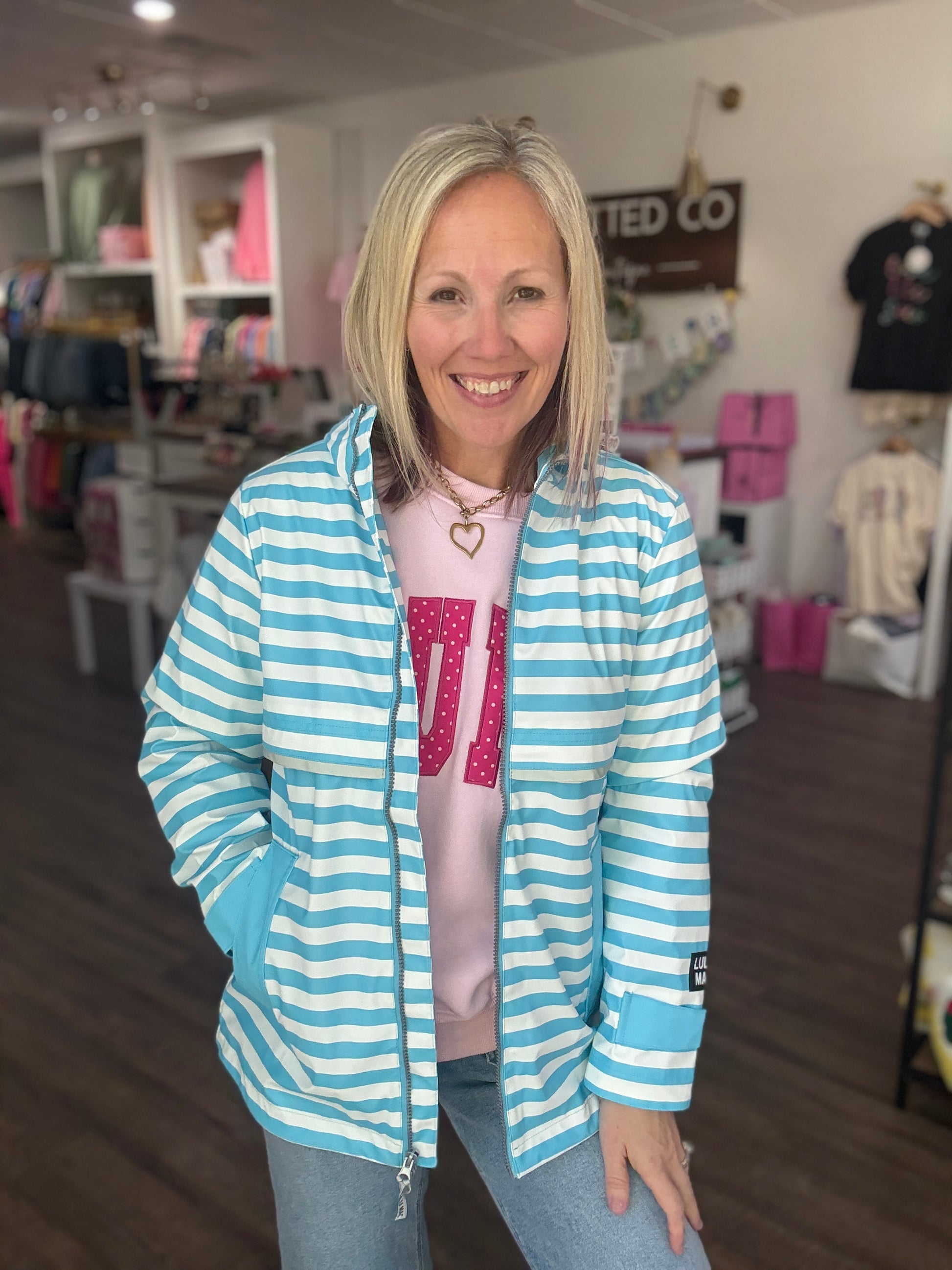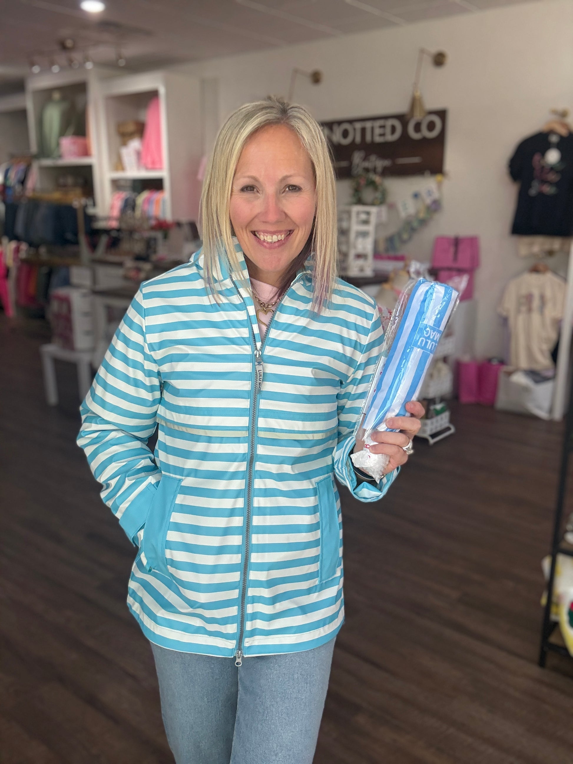 Don’t let a little rain slow you down—meet the Rainy Day Darling Lulu Mac Jacket. Designed in classic blue and white stripes, this lightweight layer brings the perfect mix of function and boutique style.