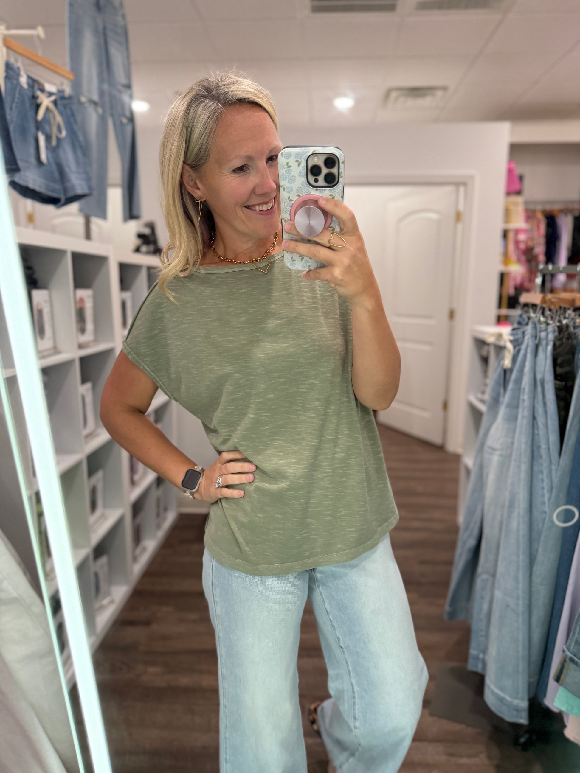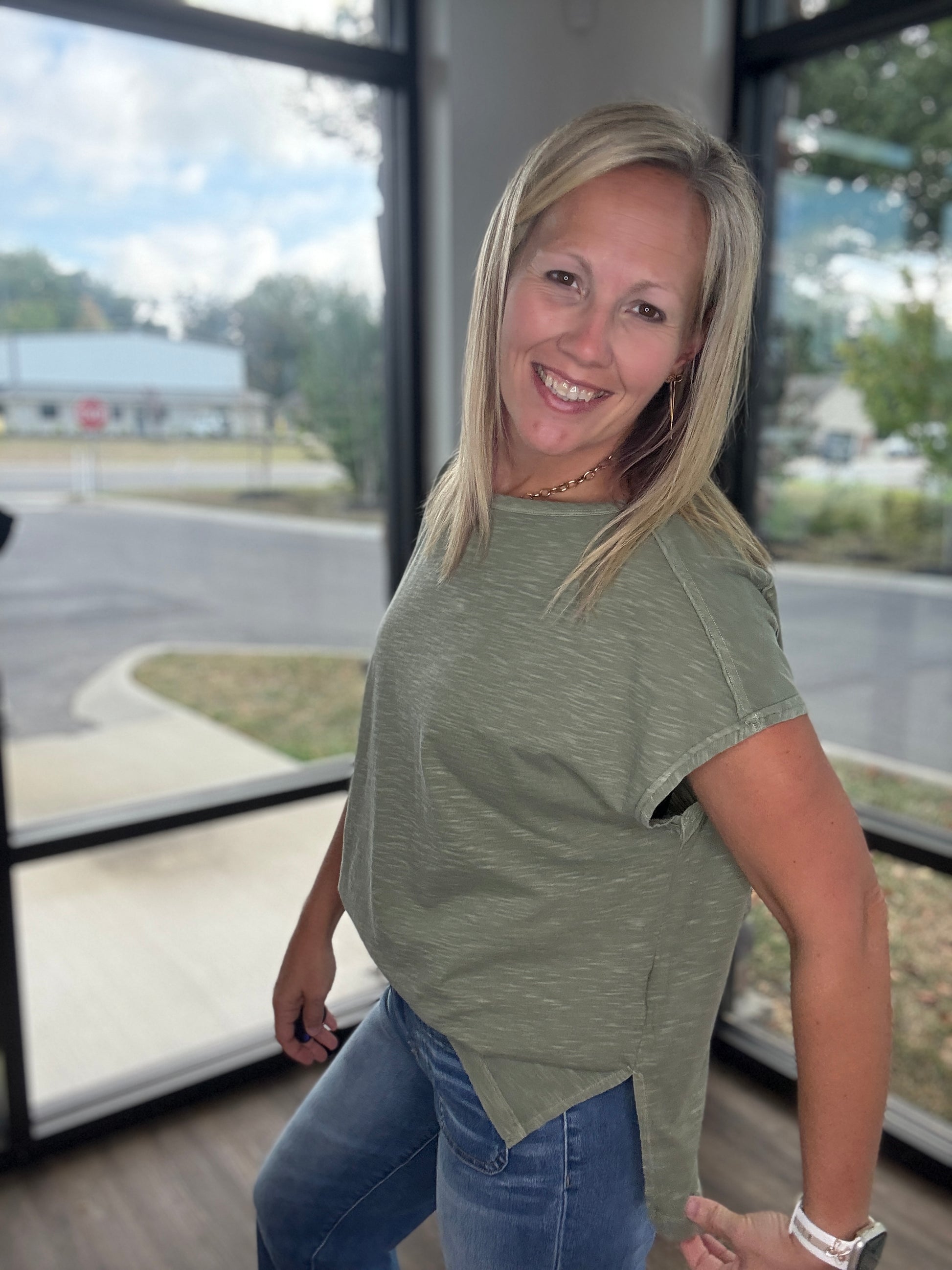 A relaxed, oversized silhouette, flattering flow, while side slits add just the right amount of sway and make front-tucking a breeze. The back features a center seam and exposed stitching, giving it that perfectly undone, casual-chic vibe.