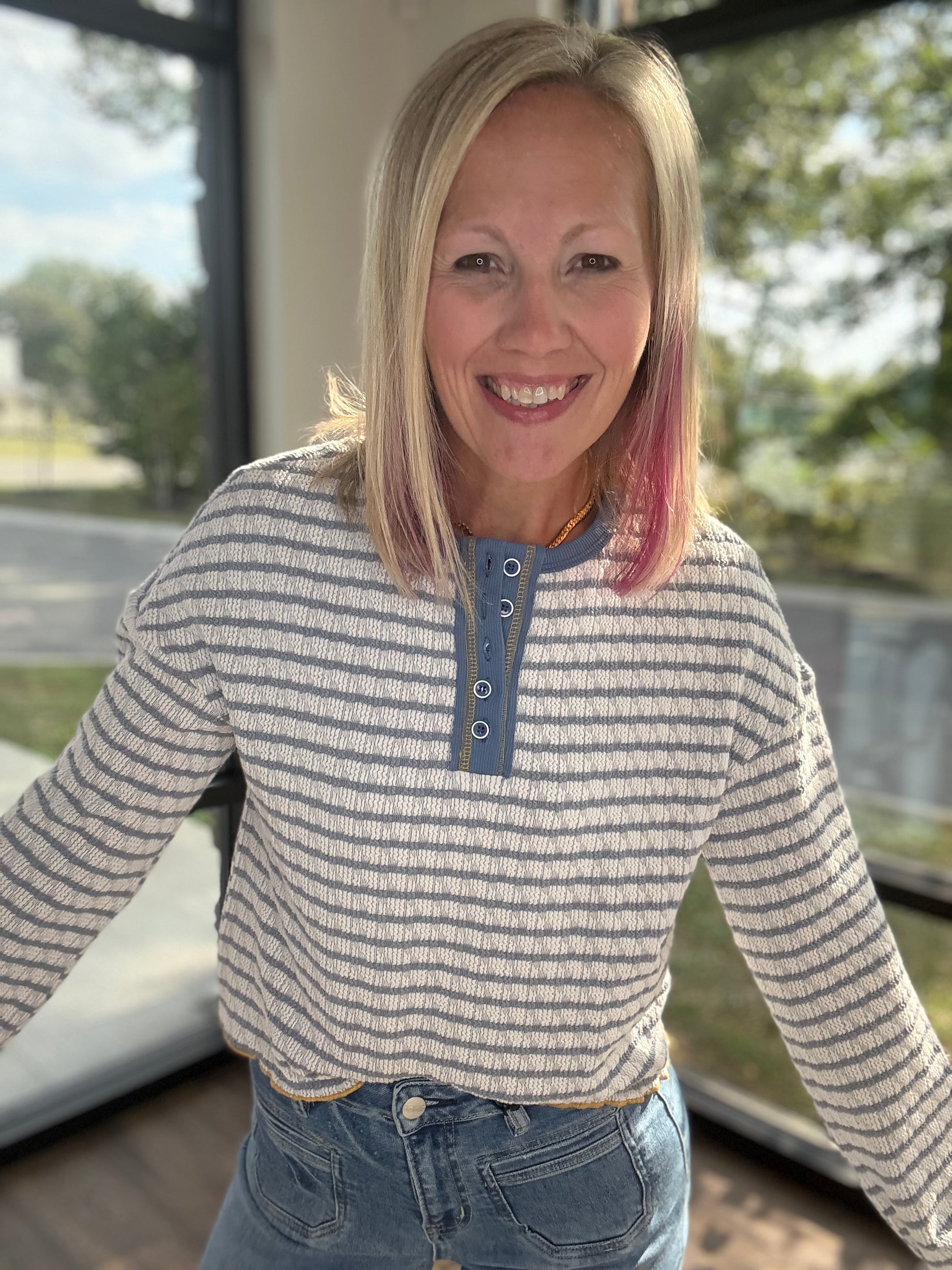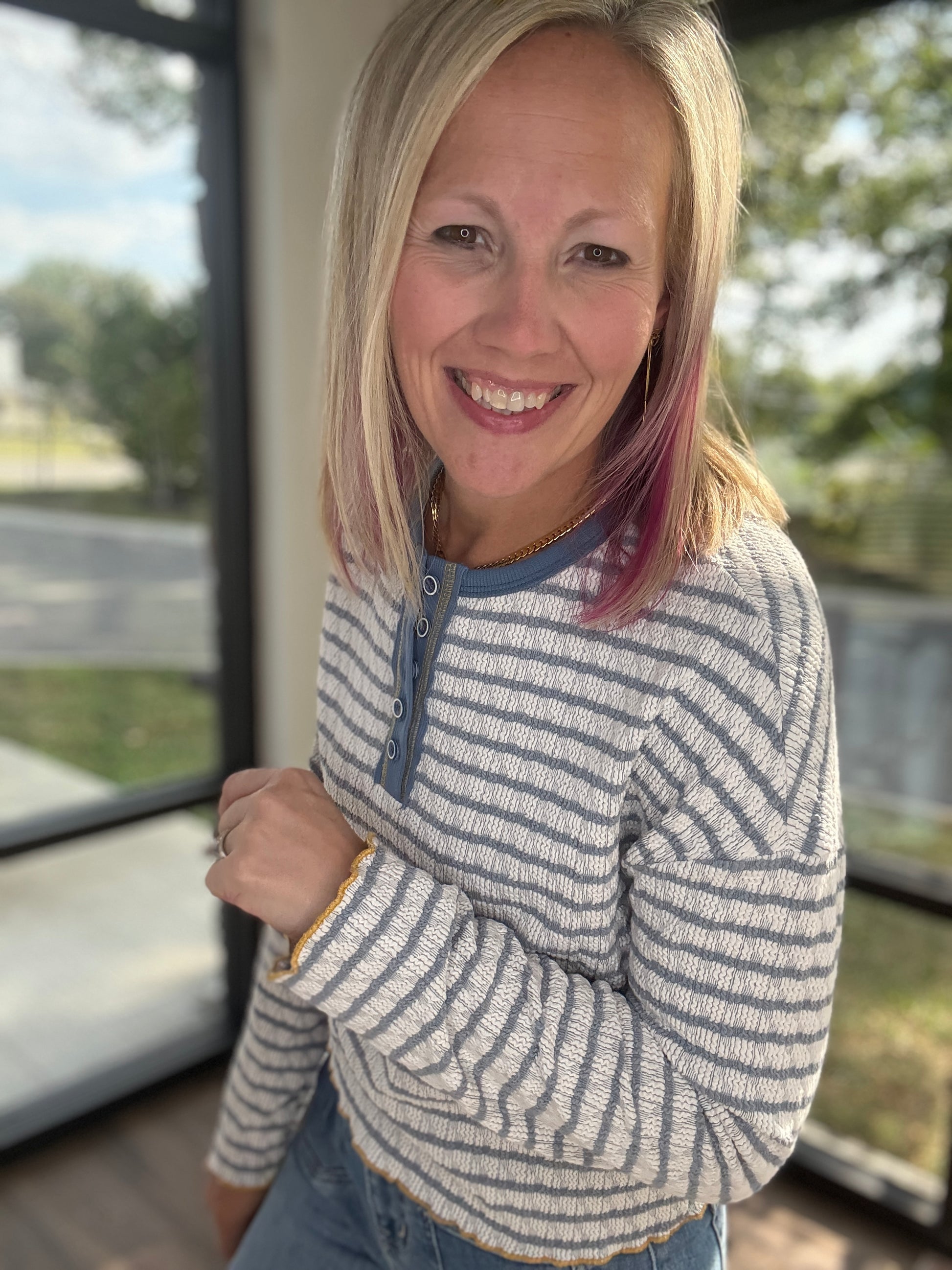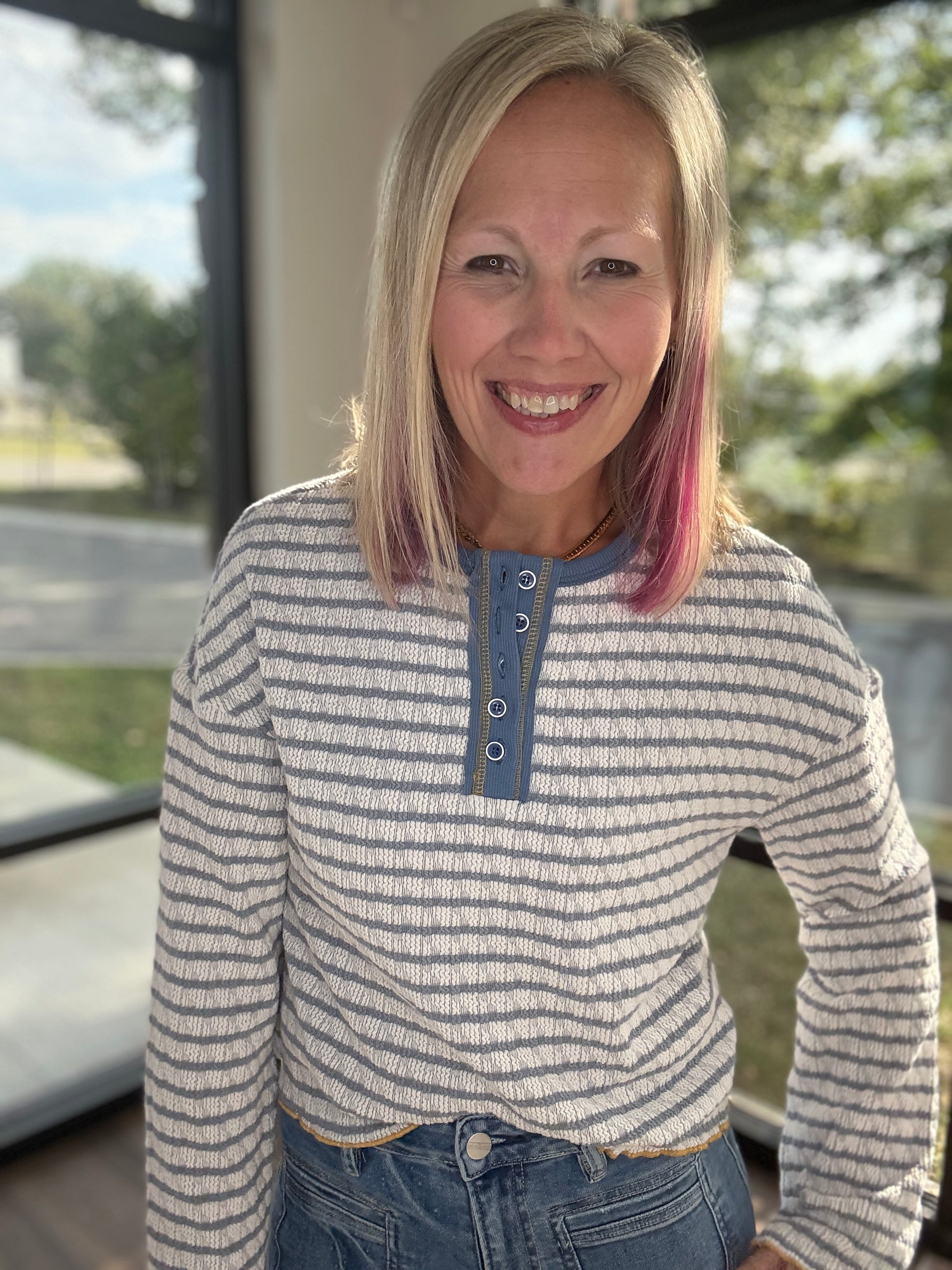 Stay cozy while looking effortlessly chic in the Skylar Textured Button Top. Designed with everyone’s favorite textured fabric, this long sleeve features a classic round neckline and a row of functional front buttons for a touch of detail. The soft, breathable knit makes it perfect for layering under jackets or wearing solo for those crisp fall mornings and chilly winter days. Easy to style and even easier to love, it’s the versatile piece your wardrobe’s been waiting for.