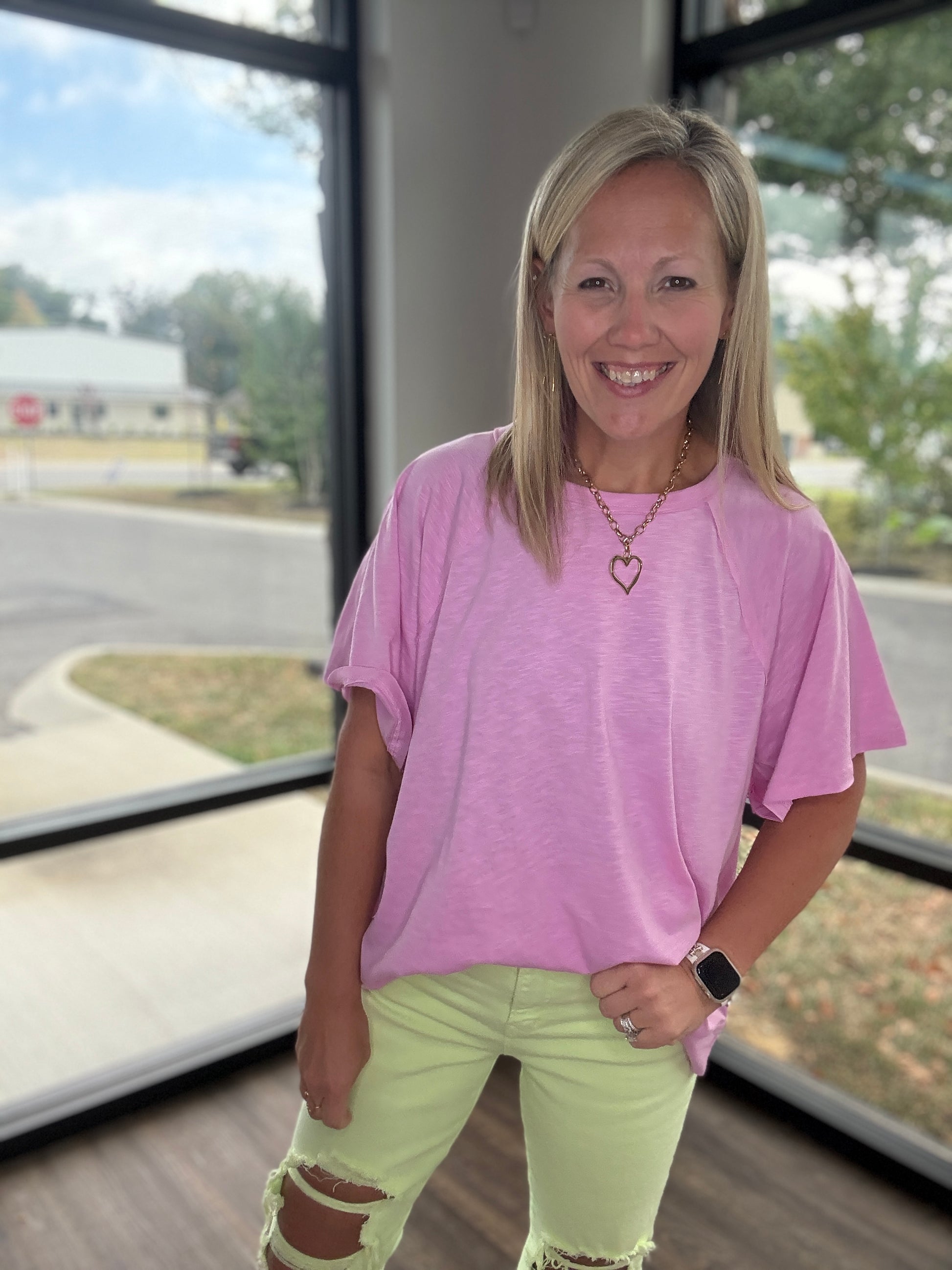 Perfect for tossing on with cutoffs, layering over leggings, or half-tucking into your favorite denim — this is your wear-it-anywhere, look-good-everywhere tee.