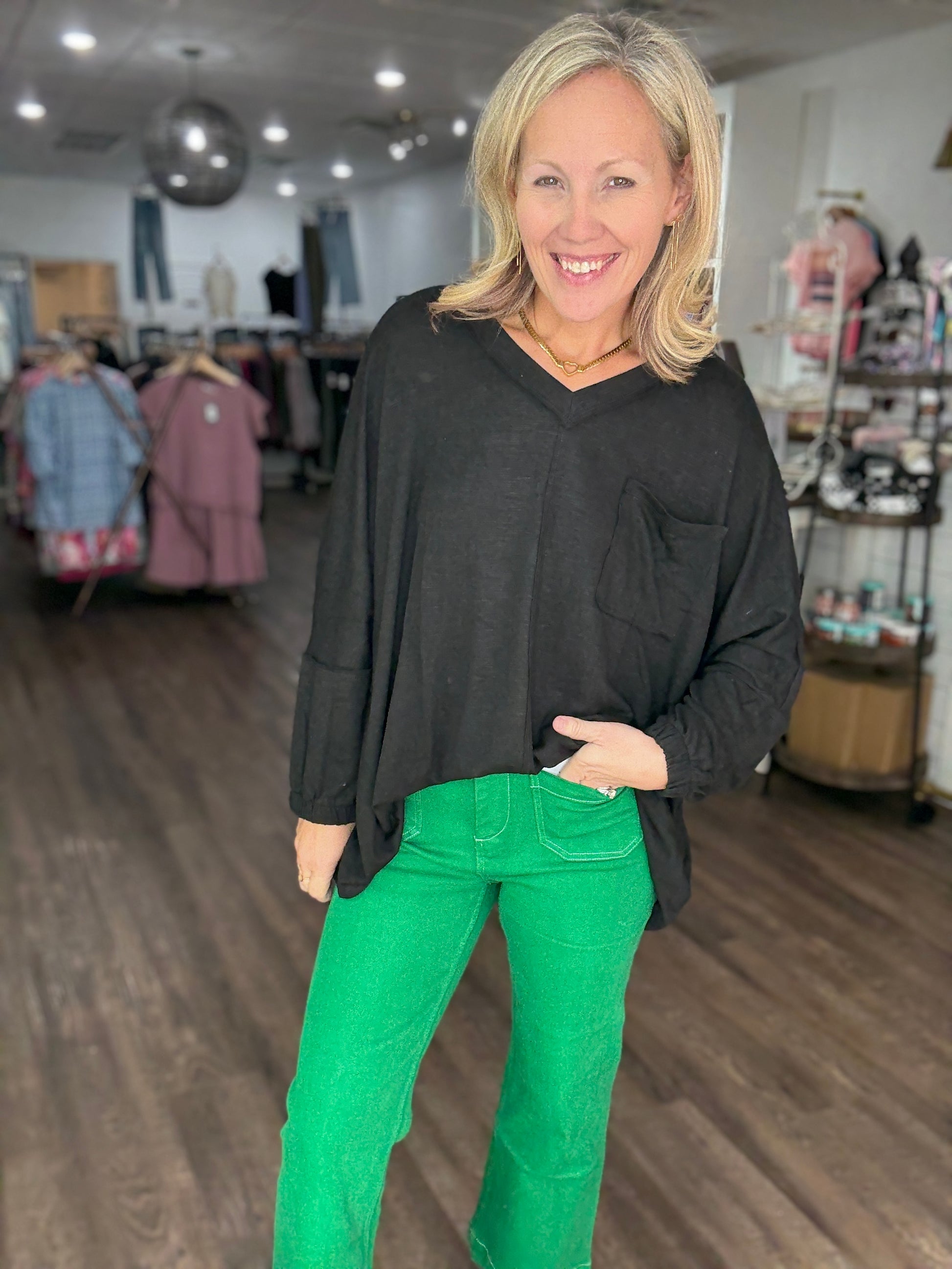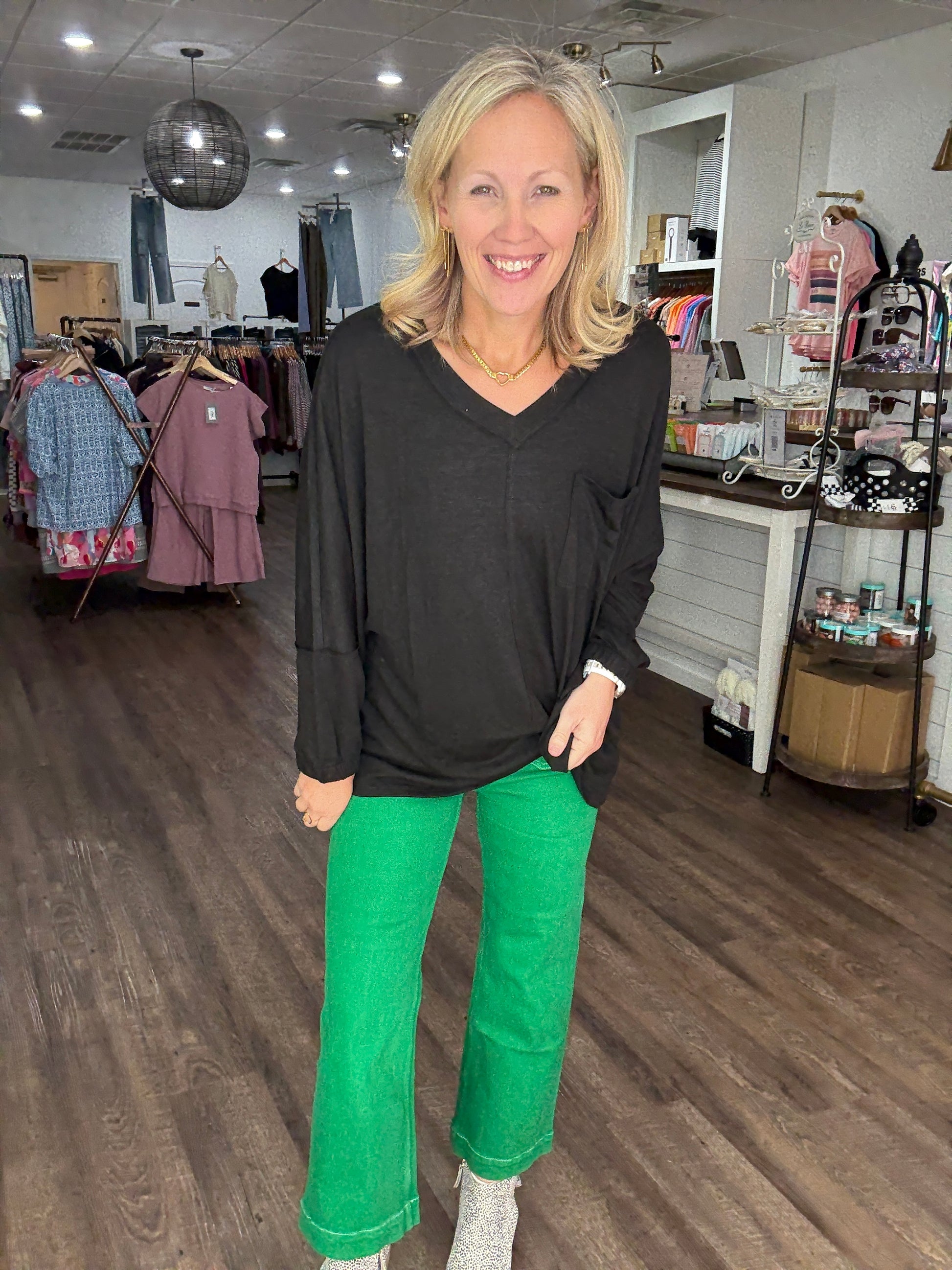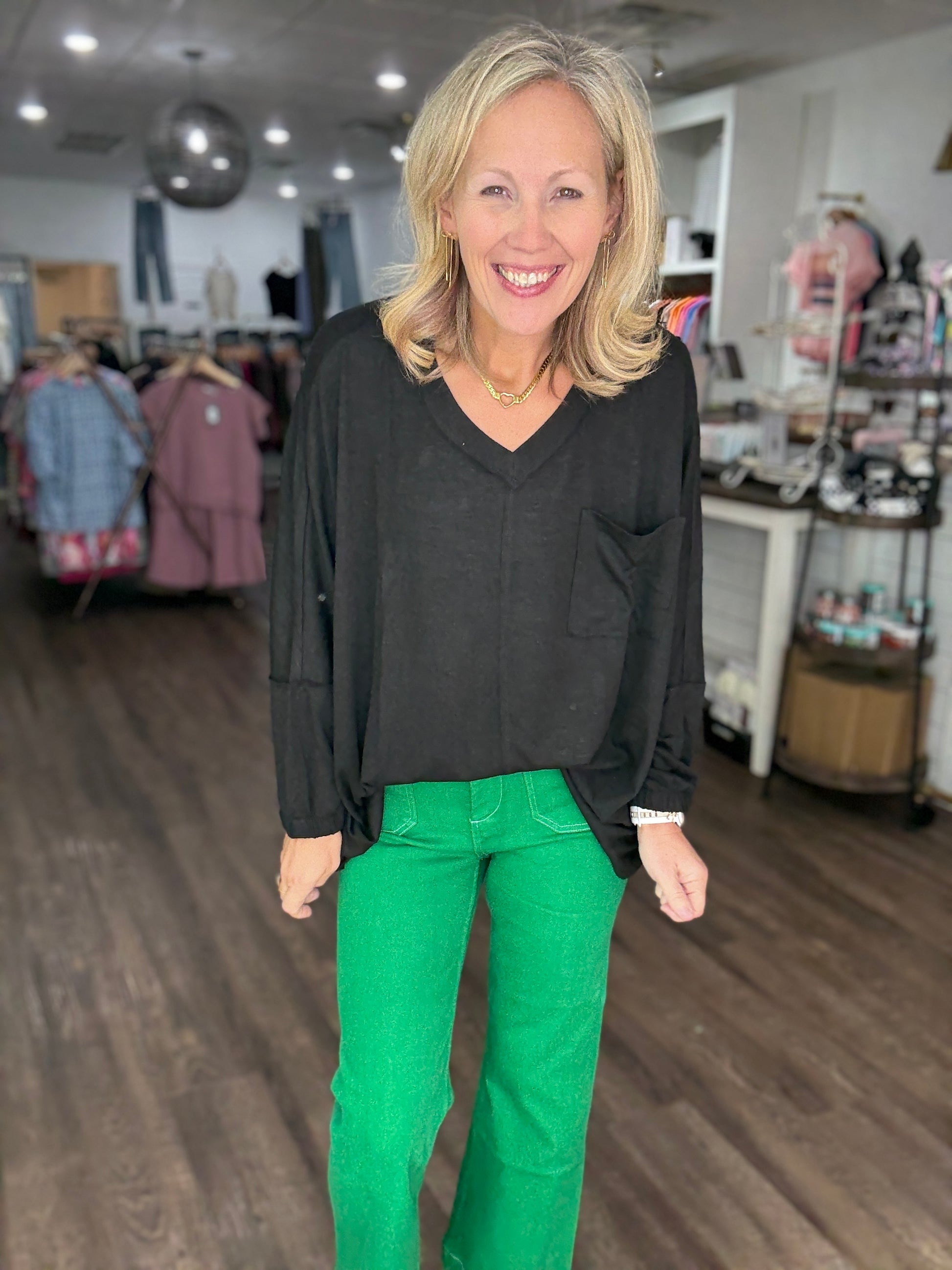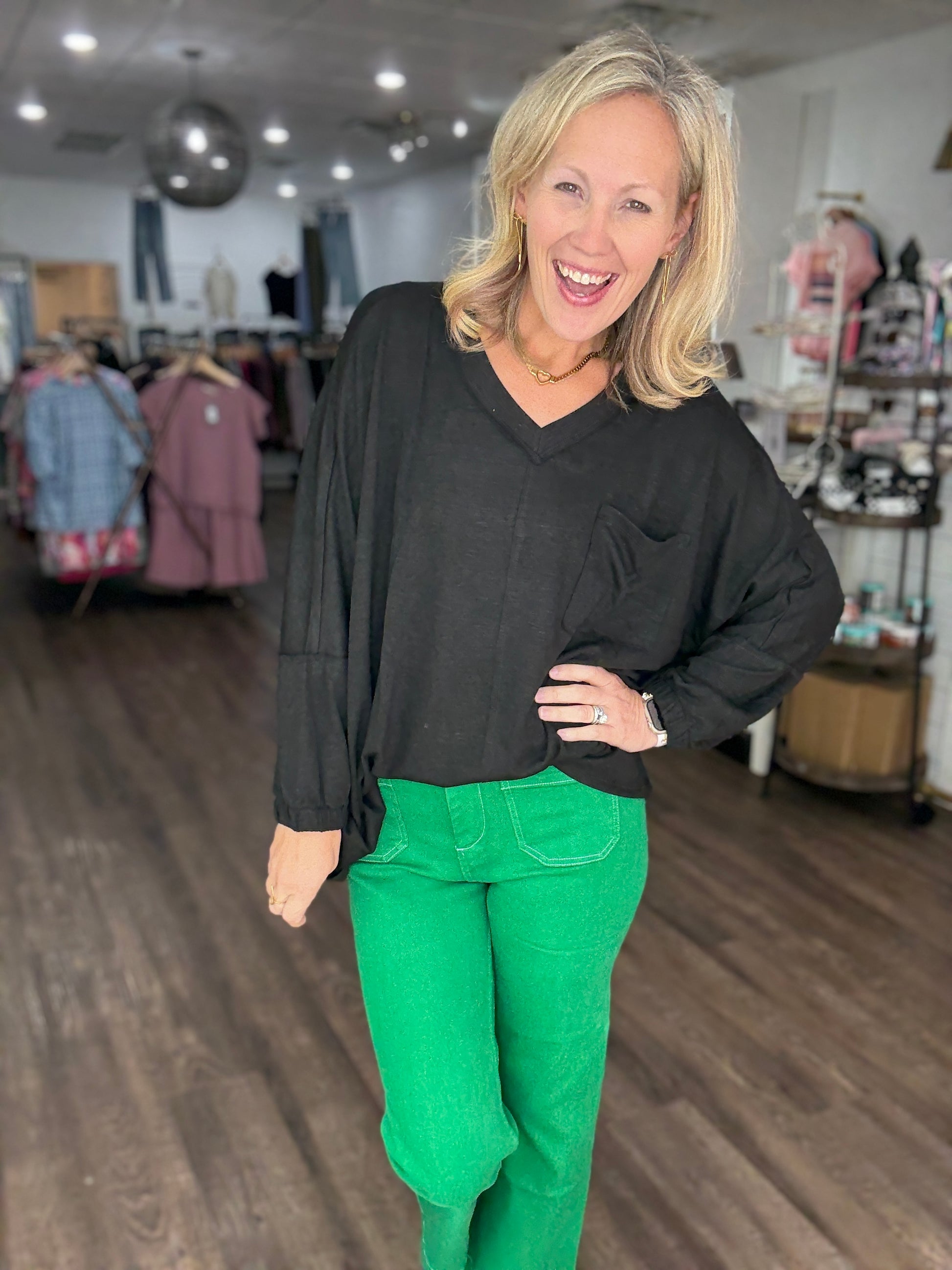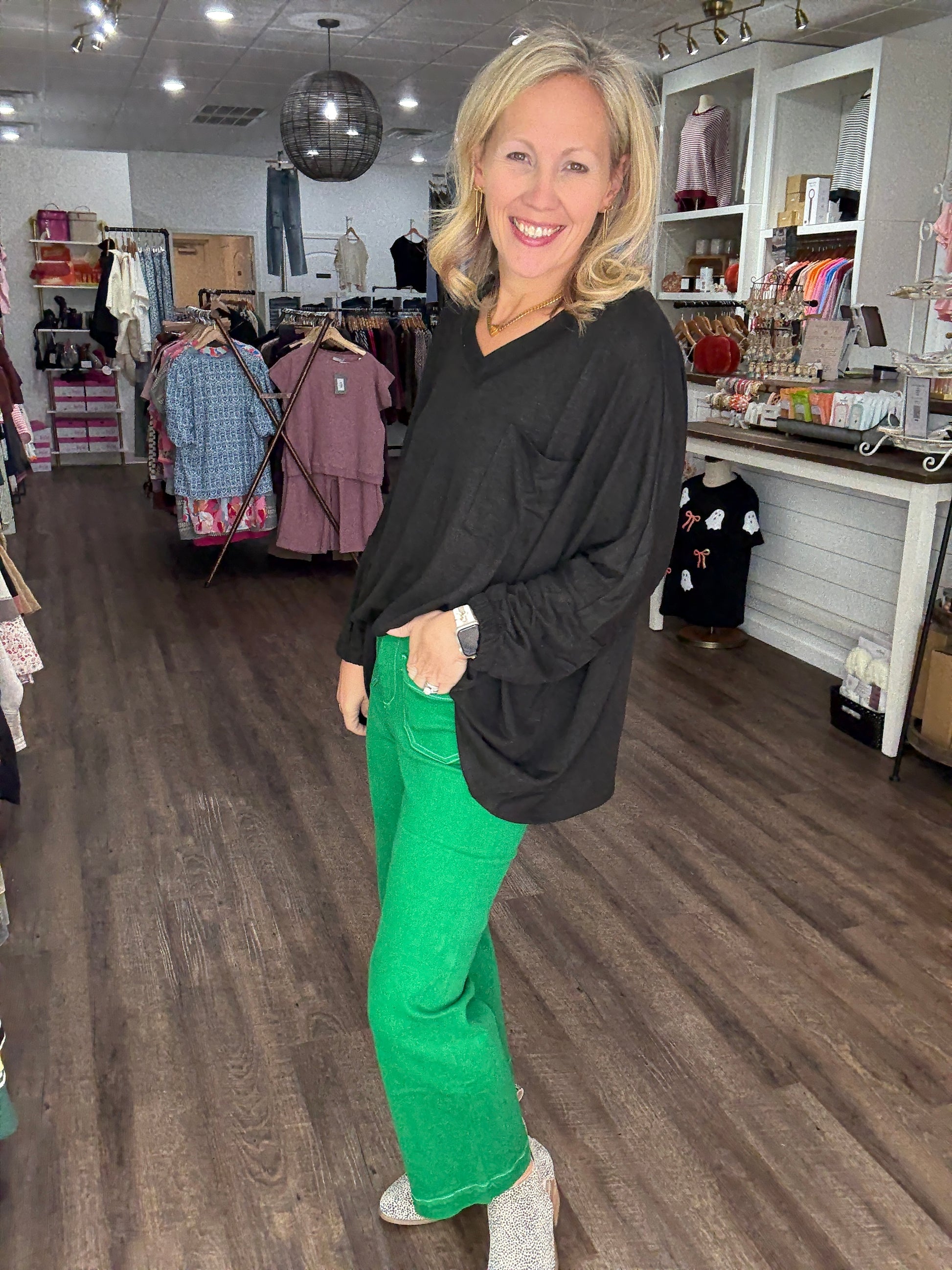 Meet your new statement staple — The Clover Street Crop Denim in that perfect Kelly Green everyone’s been asking for! These beauties have the look of polished dress pants with the comfort and structure of your favorite denim. Made with a soft cotton blend and just the right amount of stretch, they move with you and keep their shape all day.
