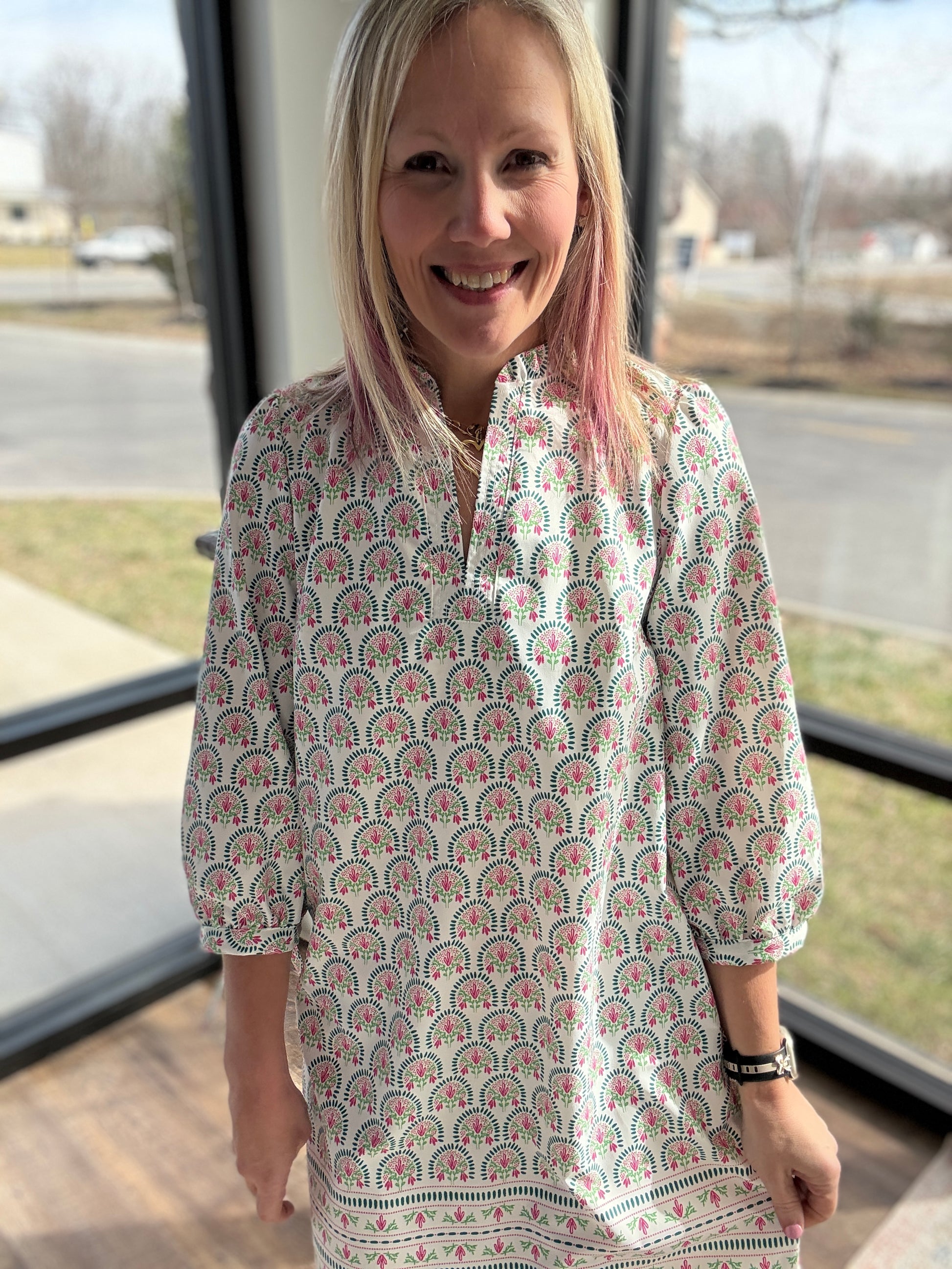 The Lainey Dress is the perfect mix of sweet details and effortless style. Designed with a soft ruffle V-neckline and a comfortable straight fit, it’s one of those easy pieces you can throw on and instantly feel put together.