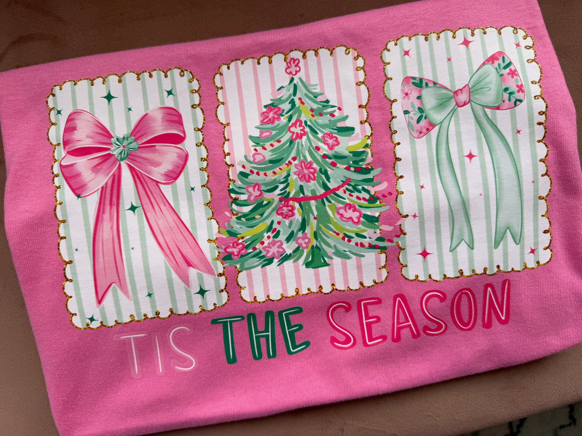 Bring on the girly pop Christmas vibes with the Tis the Season Tee! This festive favorite features a bold hot pink backdrop paired with two adorable bows and a whimsical Christmas tree for the perfect mix of fun and feminine. Soft, comfy, and made for celebrating all season long, this tee adds instant cheer to any outfit. Pair it with denim, leggings, or your coziest shacket for the cutest holiday look.