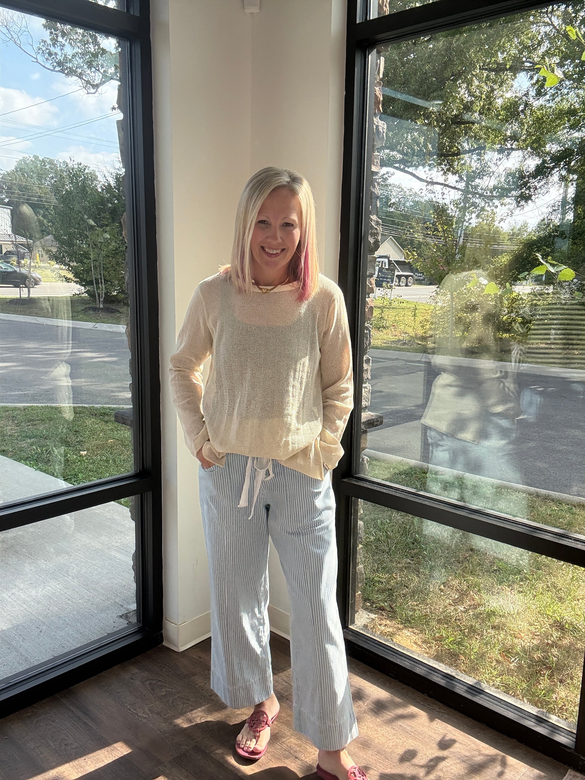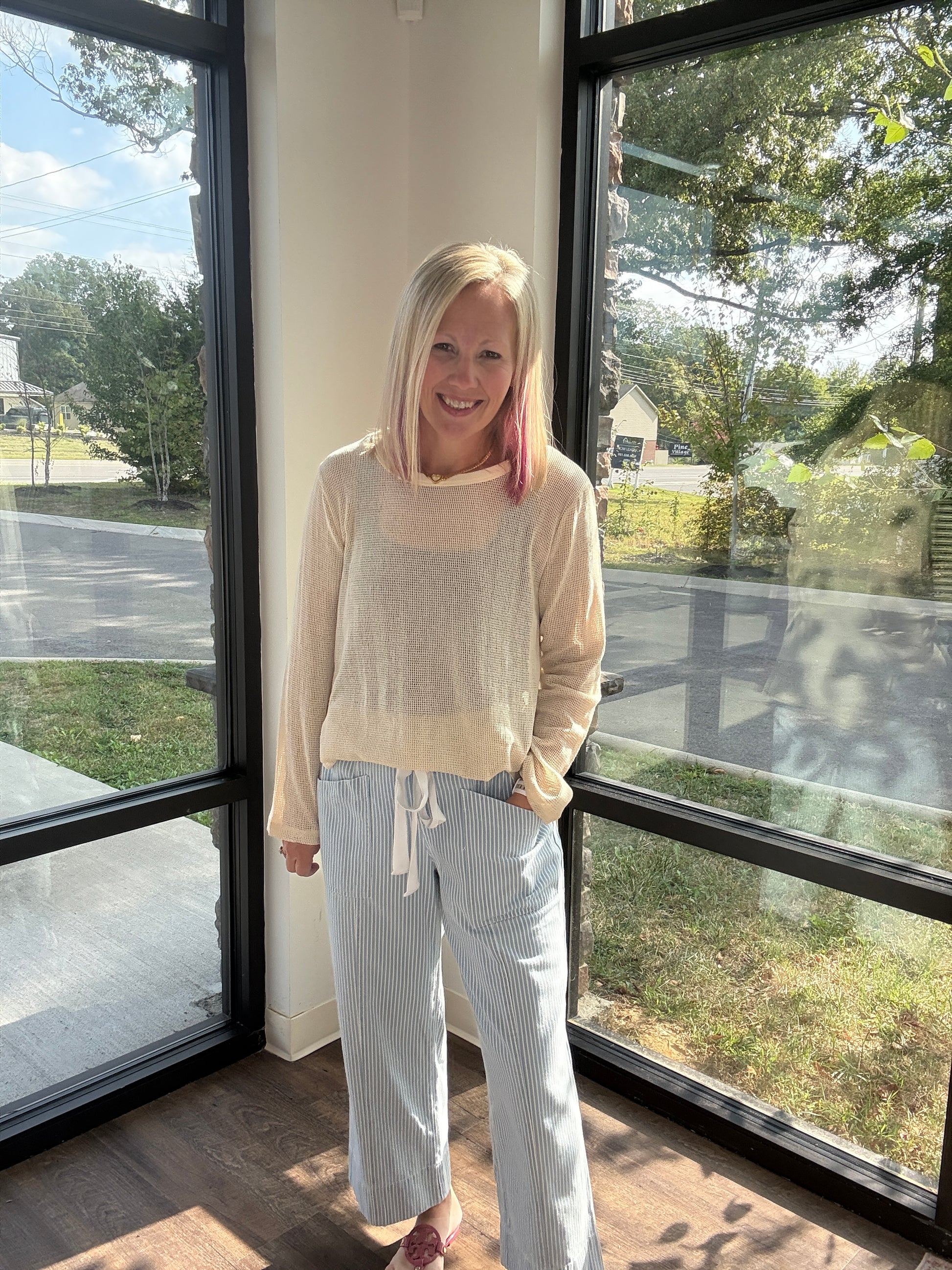 Slip into effortless style with the Weekender Stripe Pant—your new go-to for laid-back days and chic nights out. Woven striped fabric shapes these wide-leg bottoms, while a high waist with an elastic band keeps the fit comfy and flattering. The contrast drawstring detail adds a pop of fun, and front slant pockets + seam detailing elevate the look. Finishing at a breezy cropped length, these pants are as versatile as they are stylish. Pair with tanks, knits, or your favorite graphic tee—these stripes are ready for anything the week throws your way.